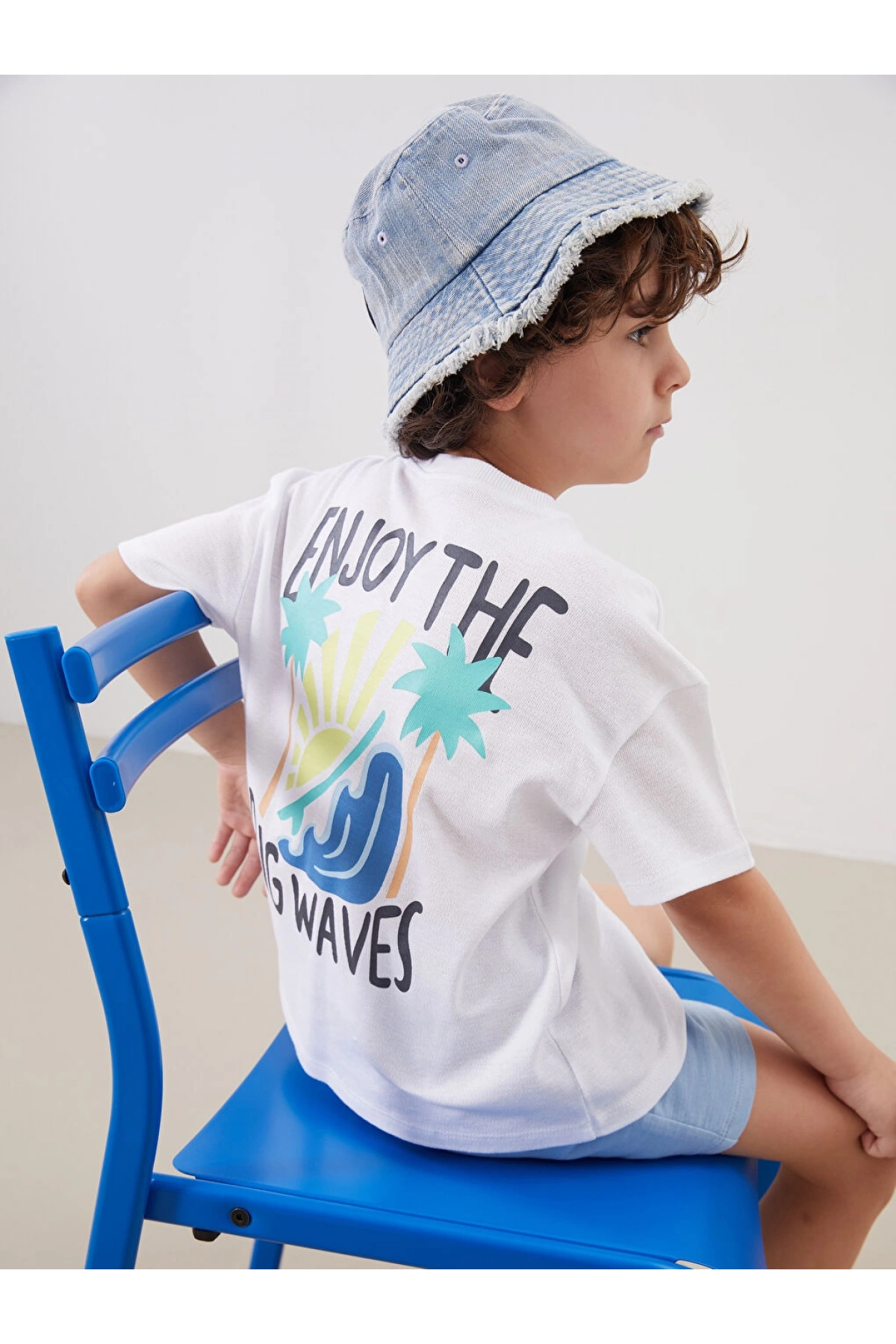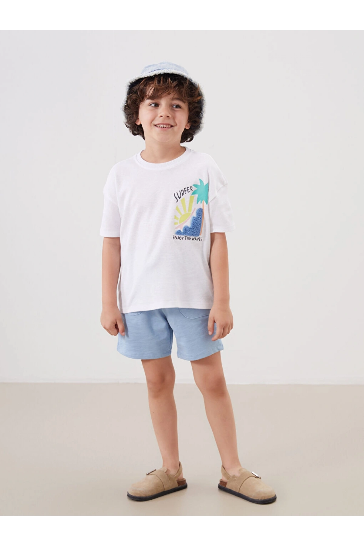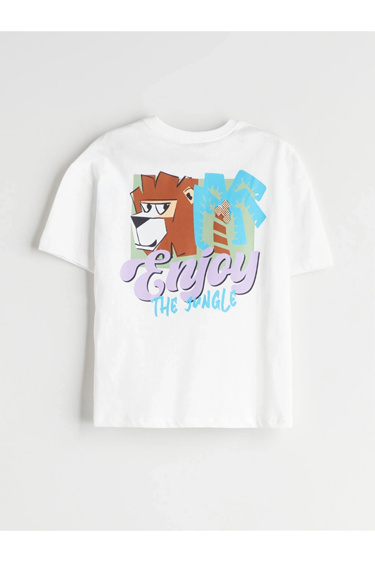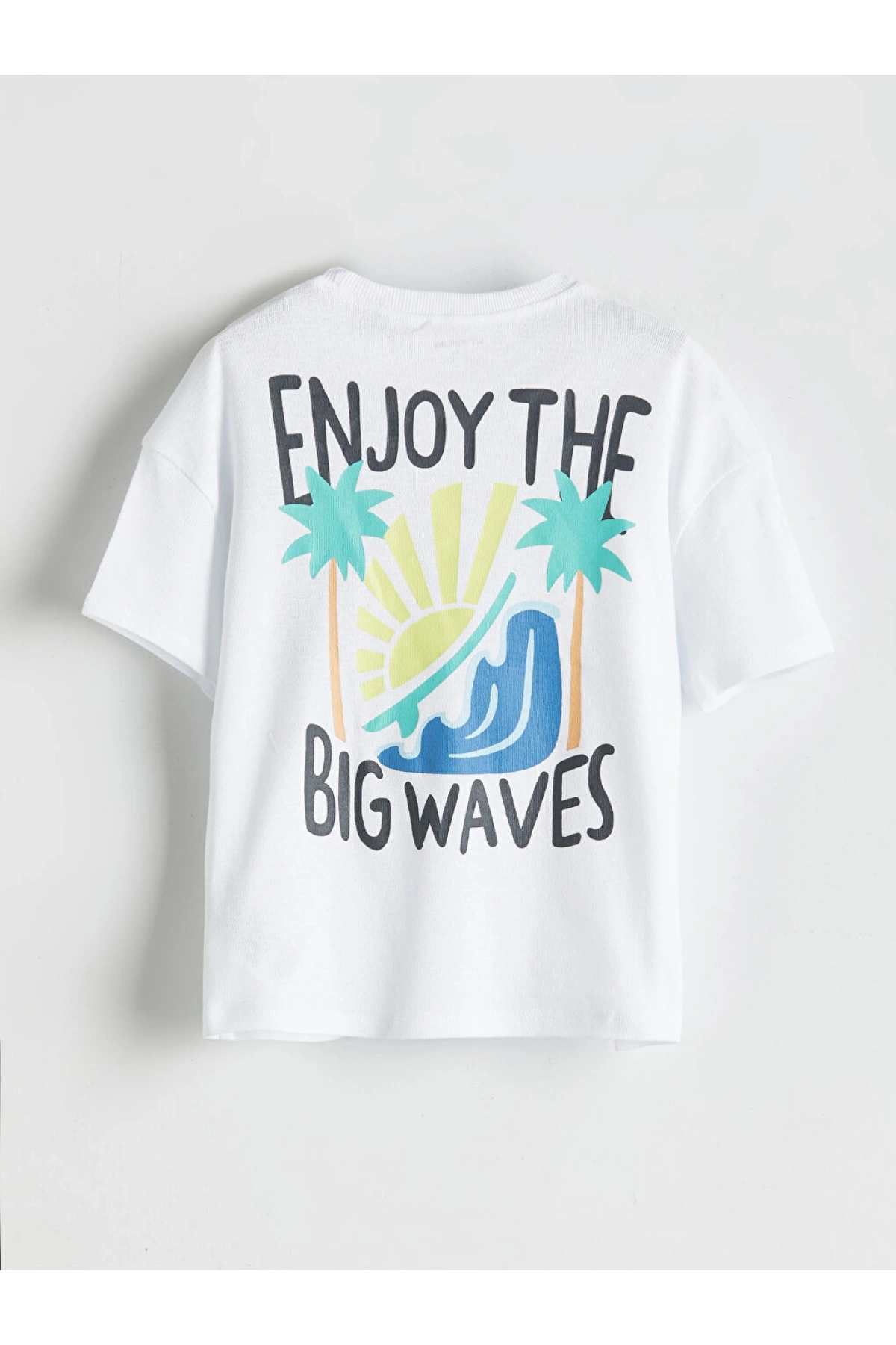 LCW Kids Beyaz Bisiklet Yaka Baskılı Erkek Çocuk Tişört