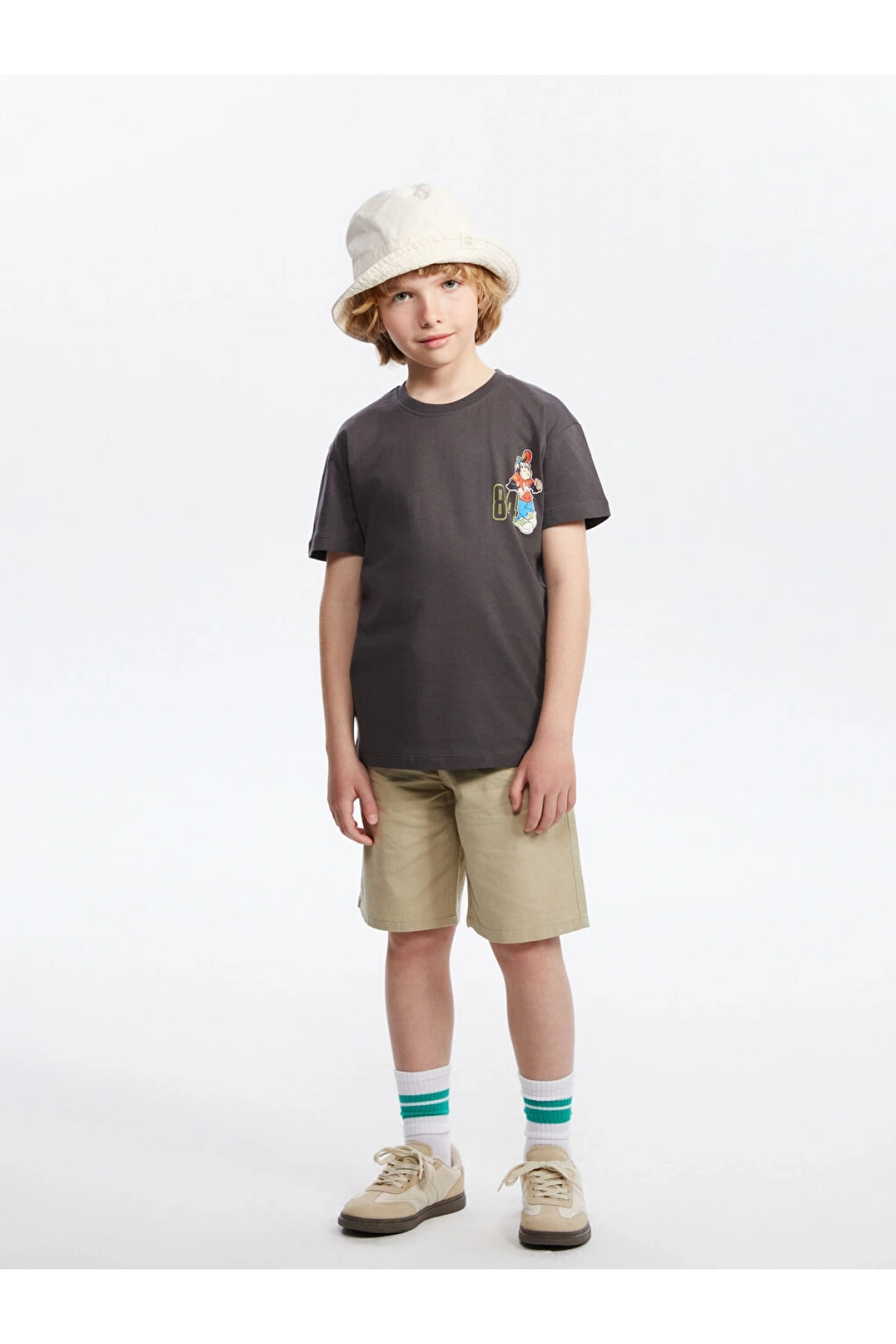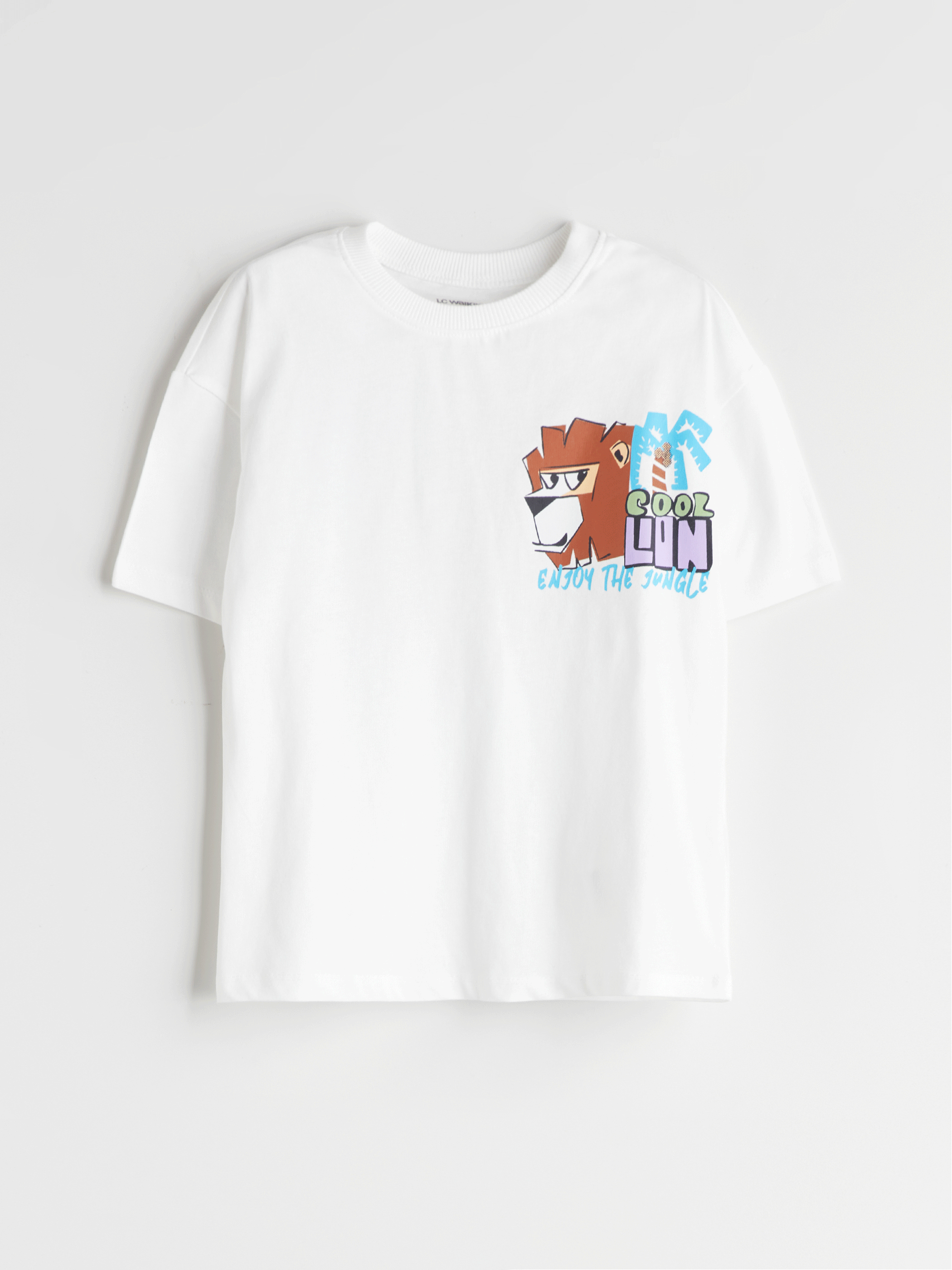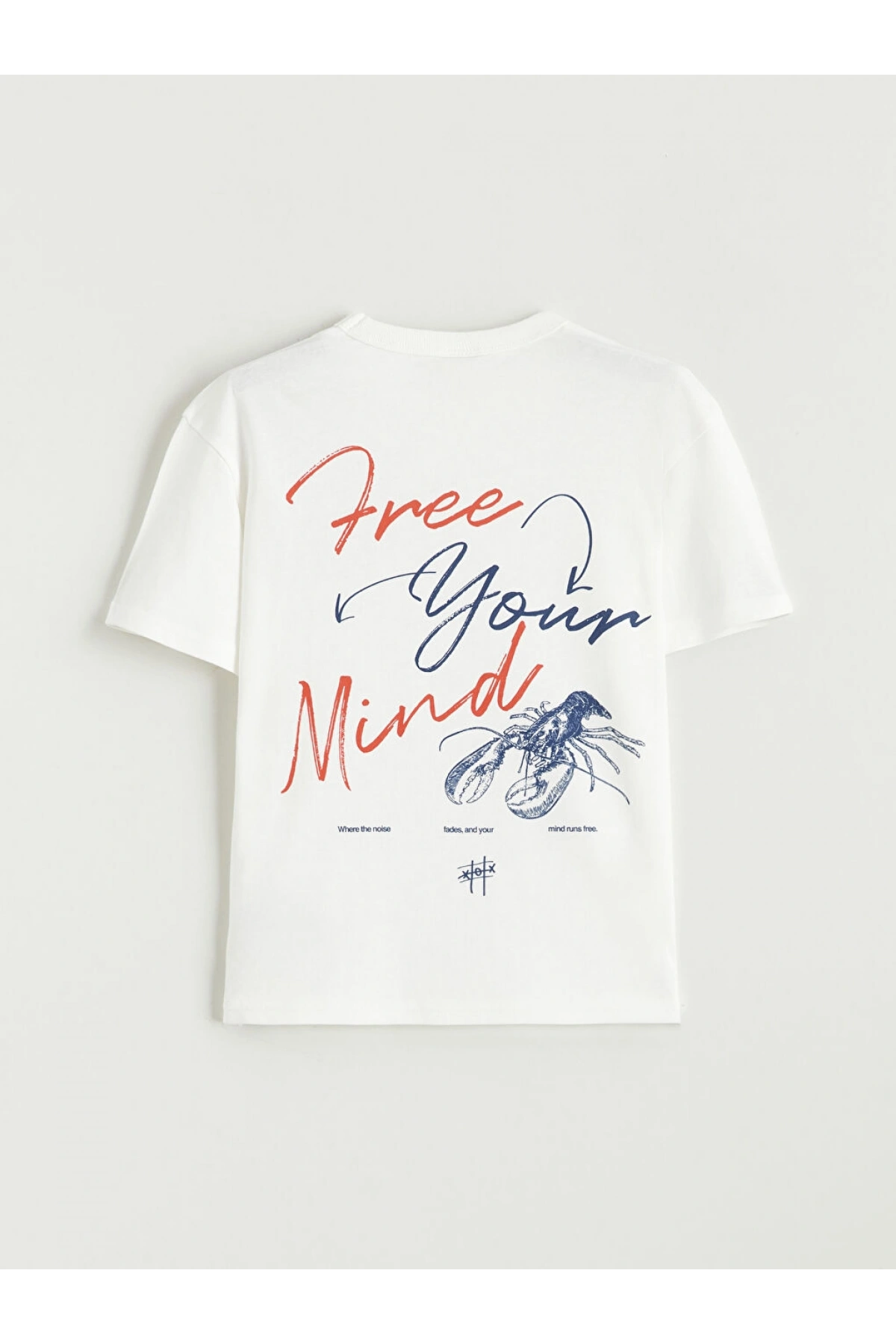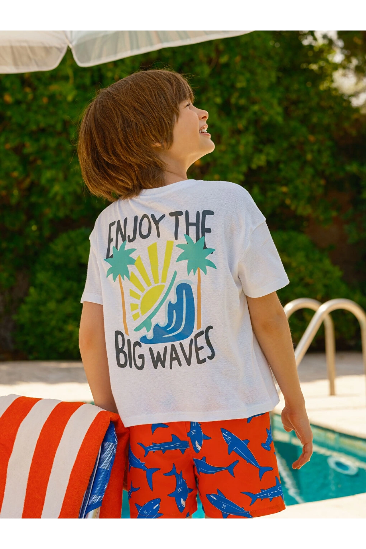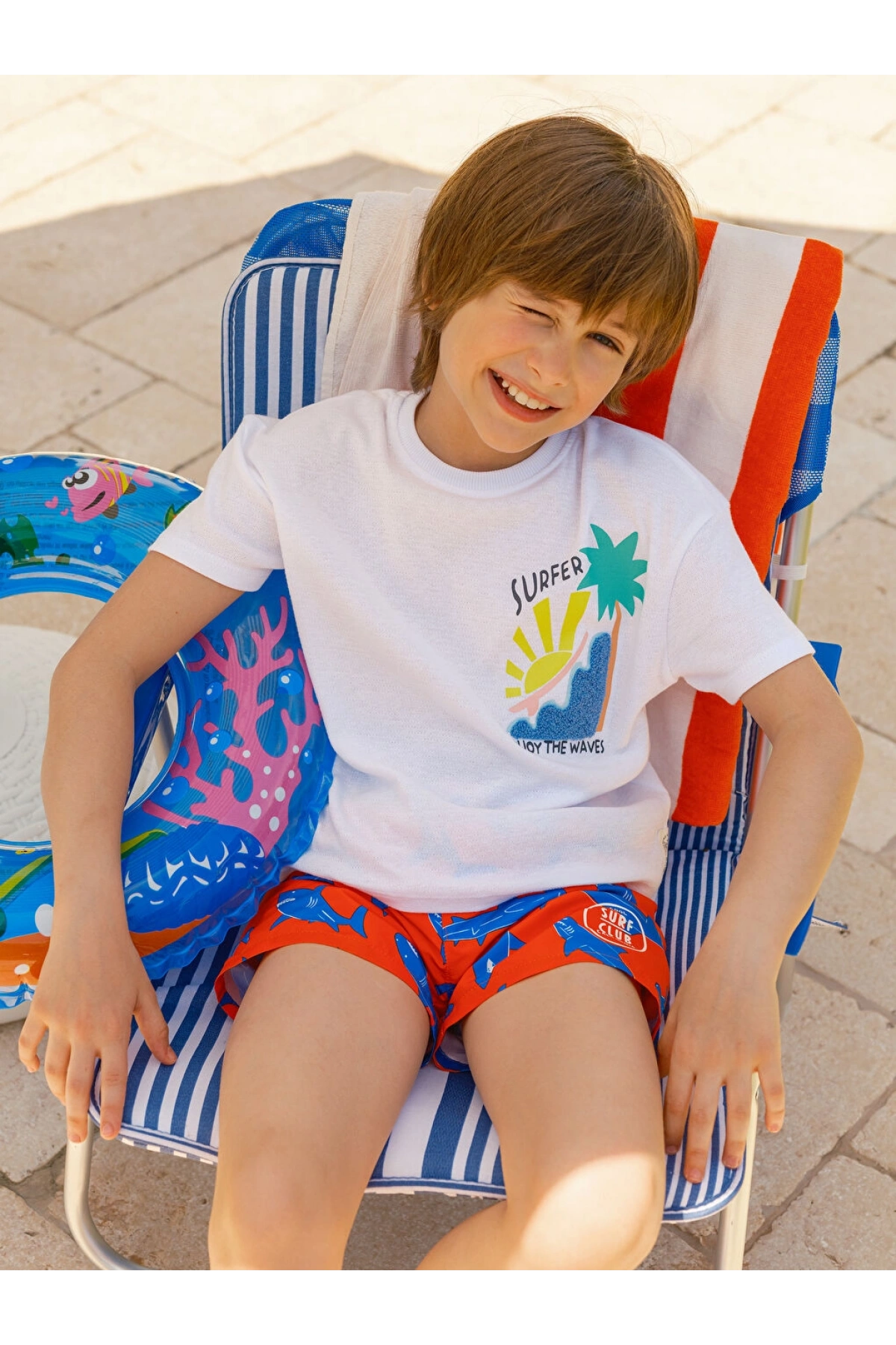 LCW Kids Beyaz Bisiklet Yaka Baskılı Erkek Çocuk Tişört