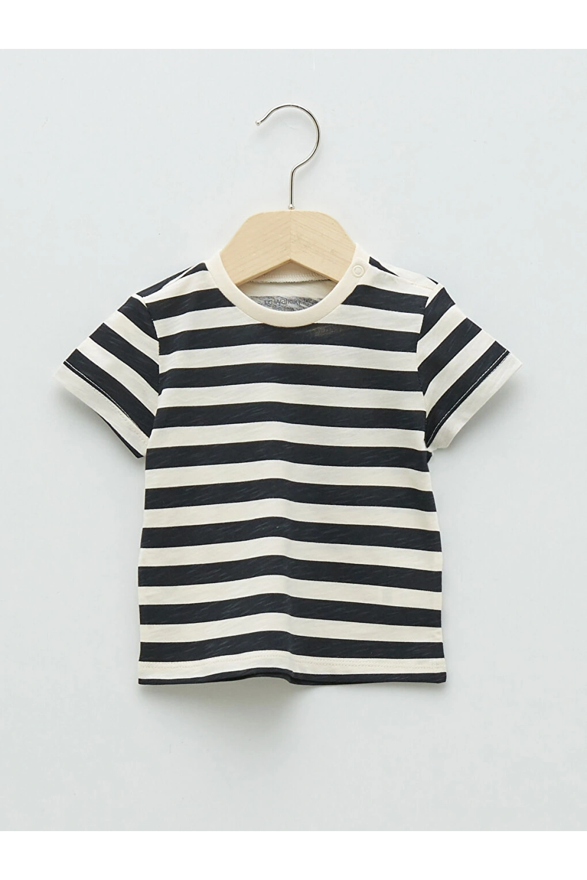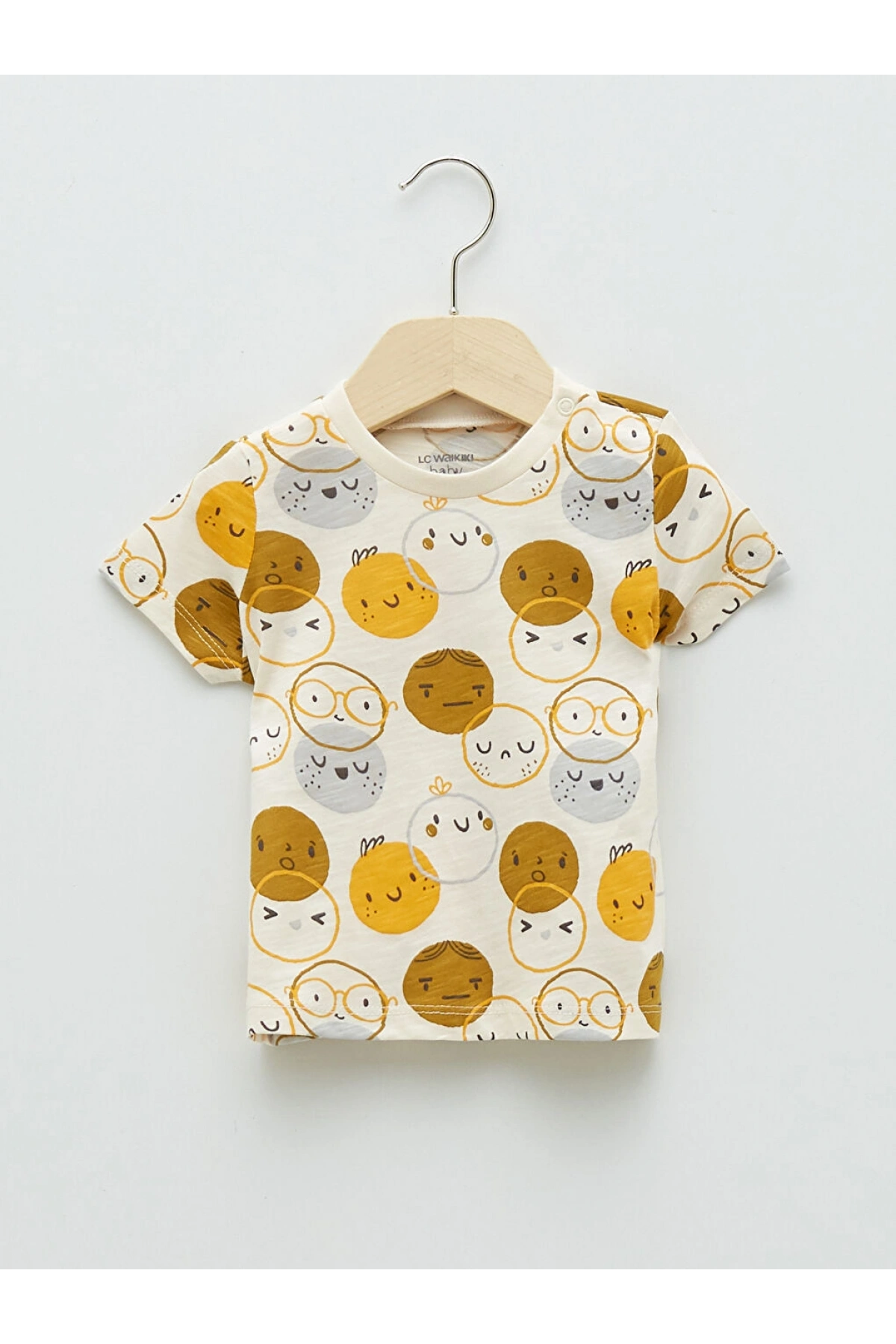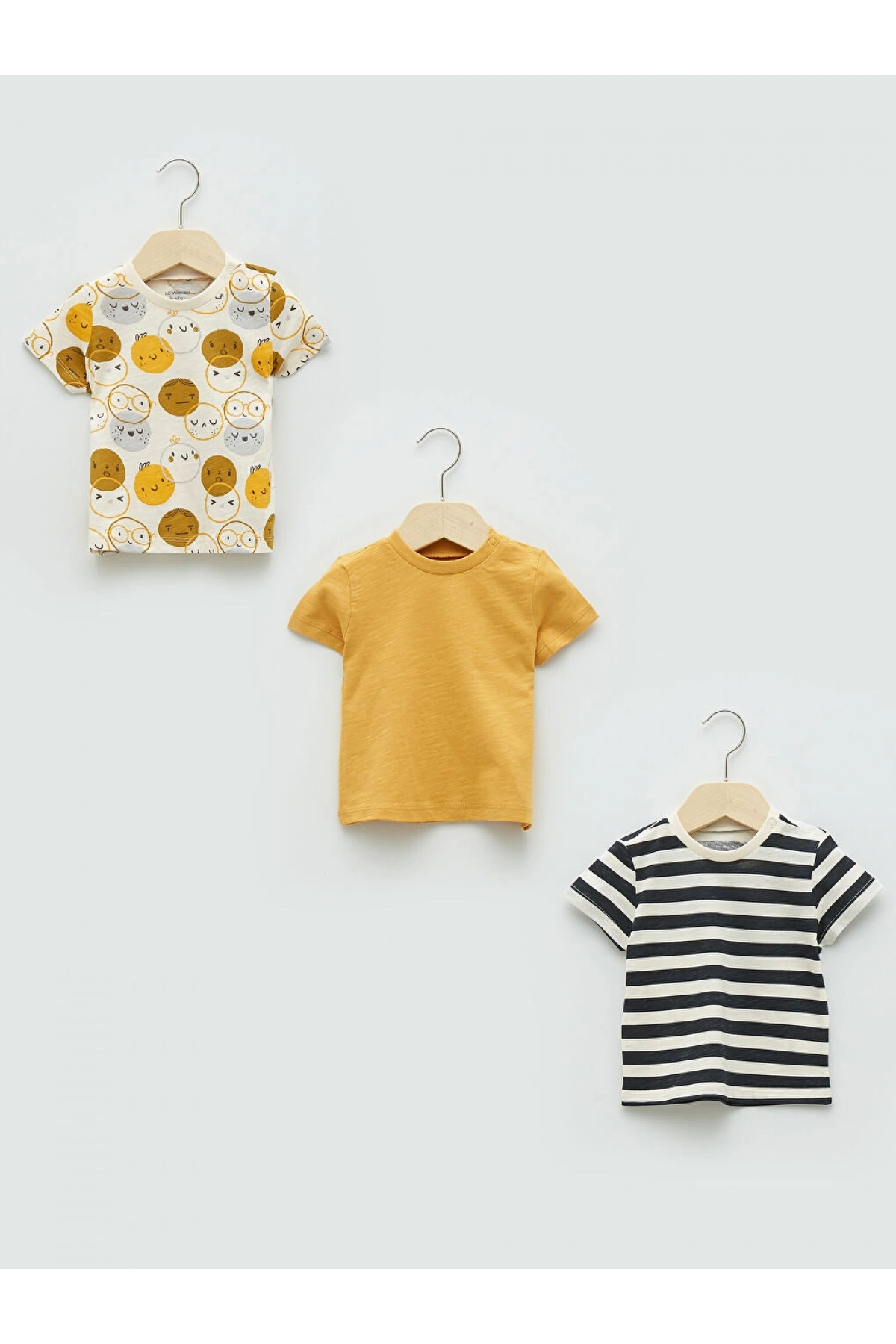 LCW baby Ekru Bisiklet Yaka Kısa Kollu Erkek Bebek Tişört 3'lü