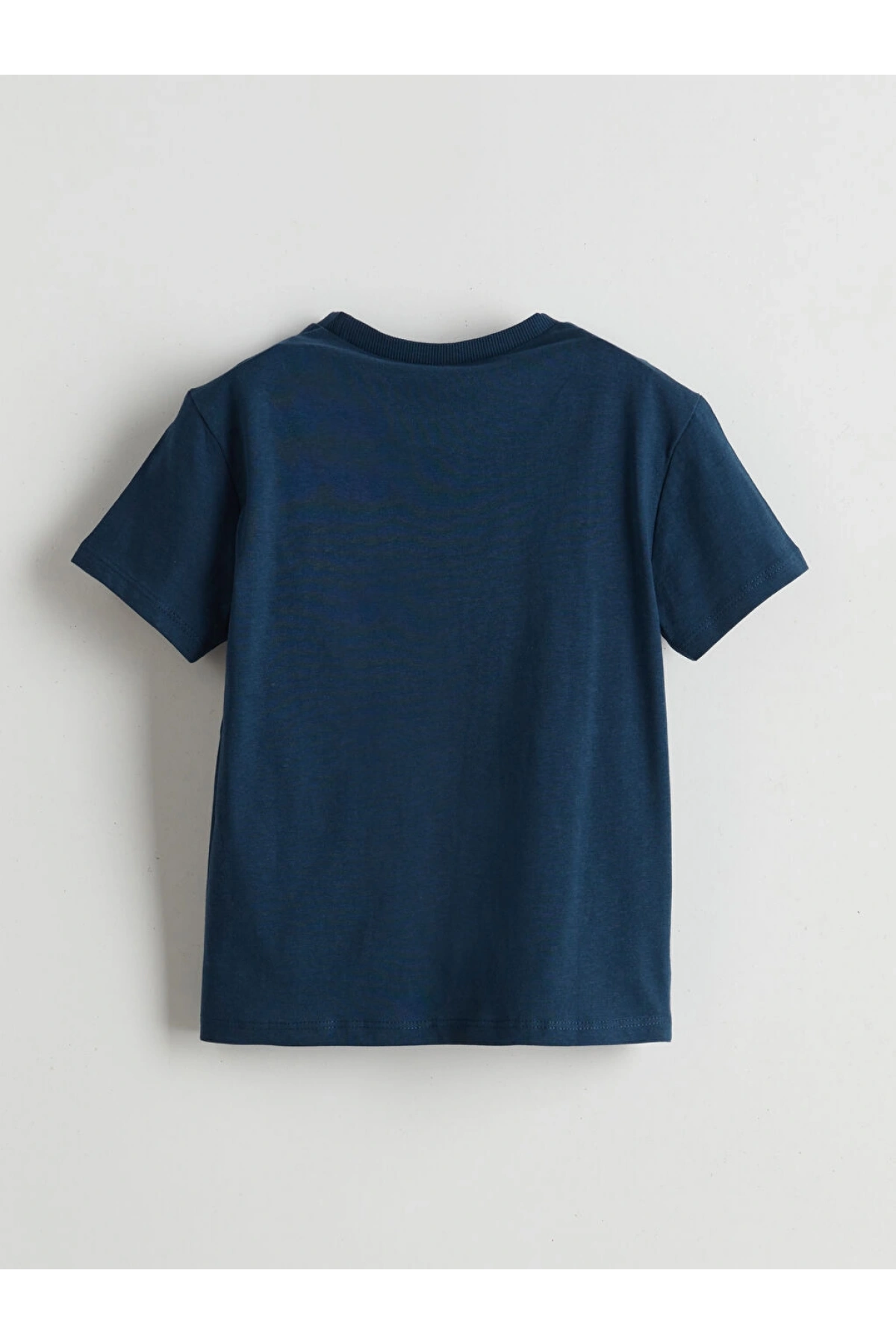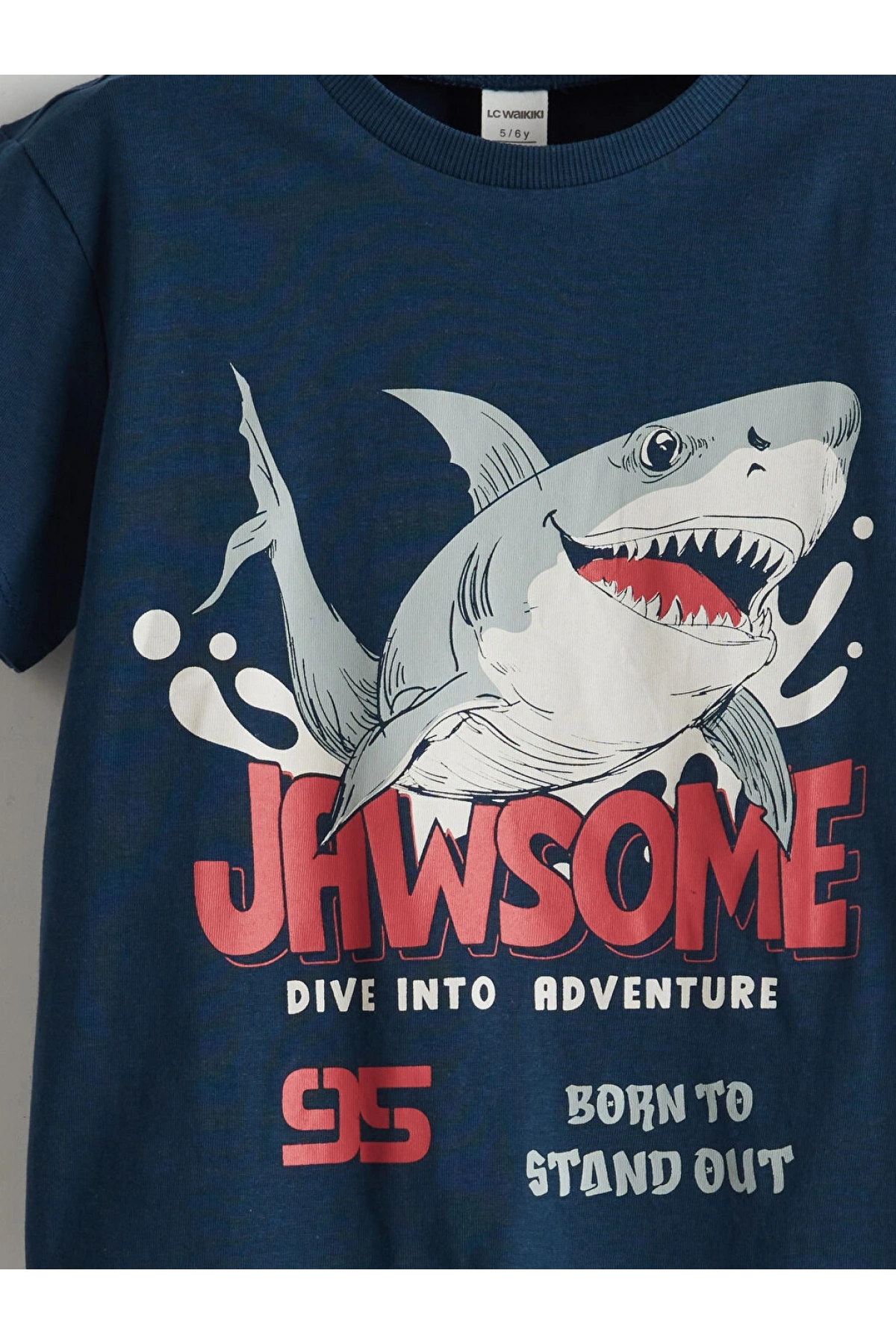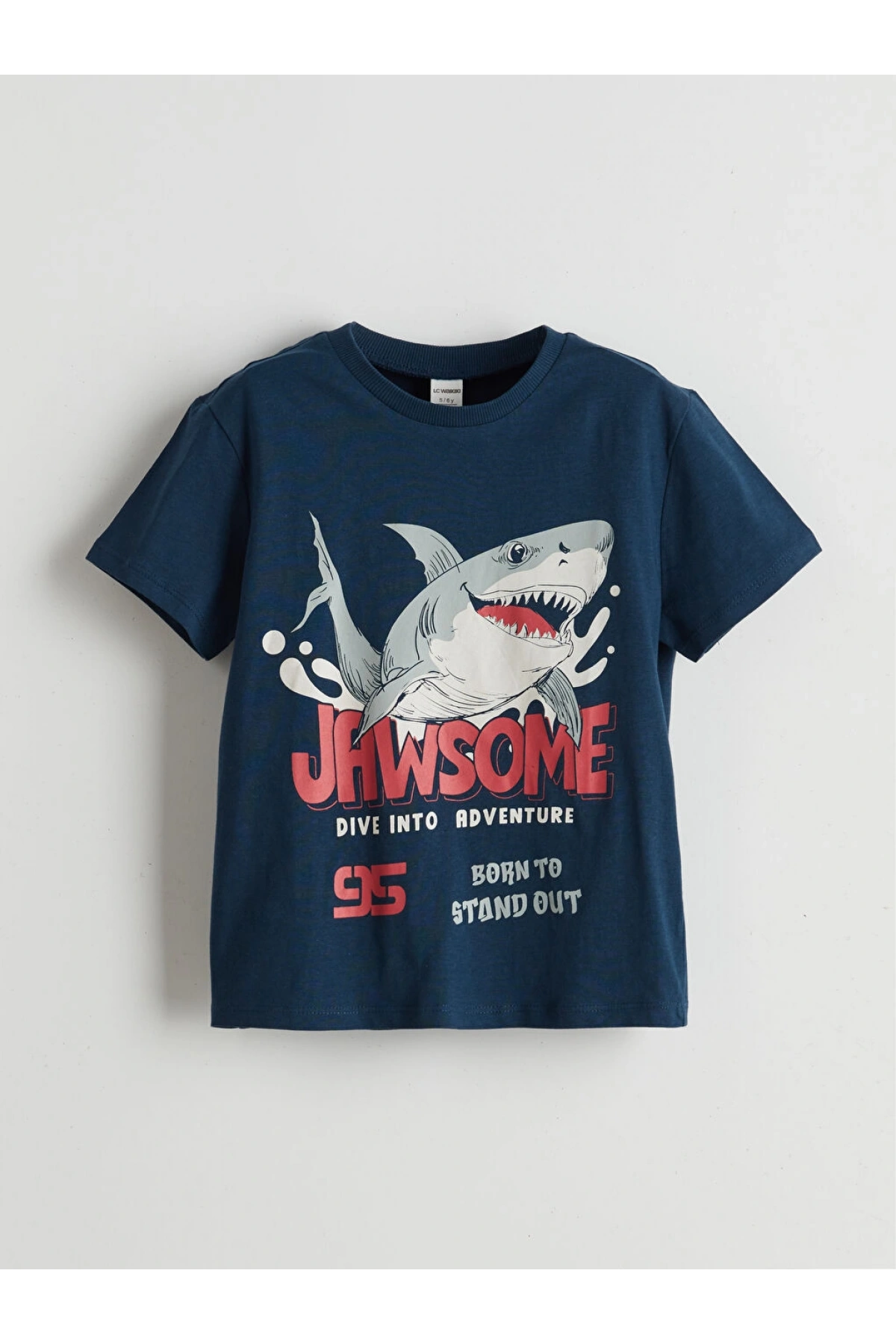LCW Kids Indigo Bisiklet Yaka Jaws Baskılı Penye Erkek Çocuk Tişört