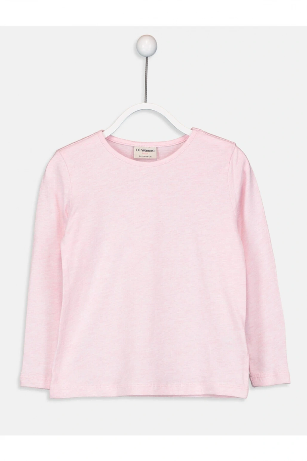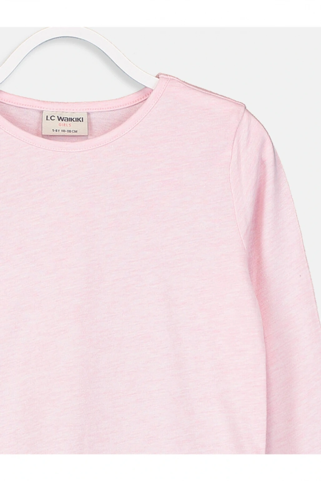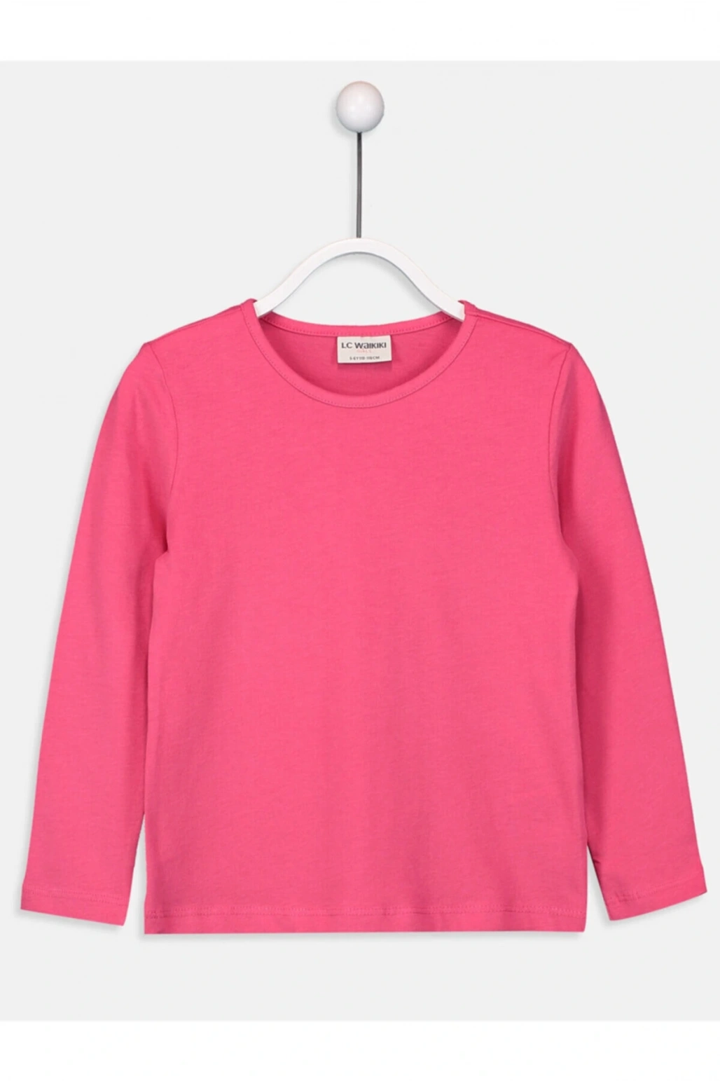 LCW Kids Pembe Bisiklet Yaka Basic Uzun Kollu Kız Çocuk Tişört
