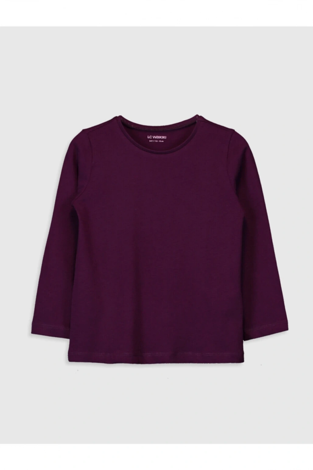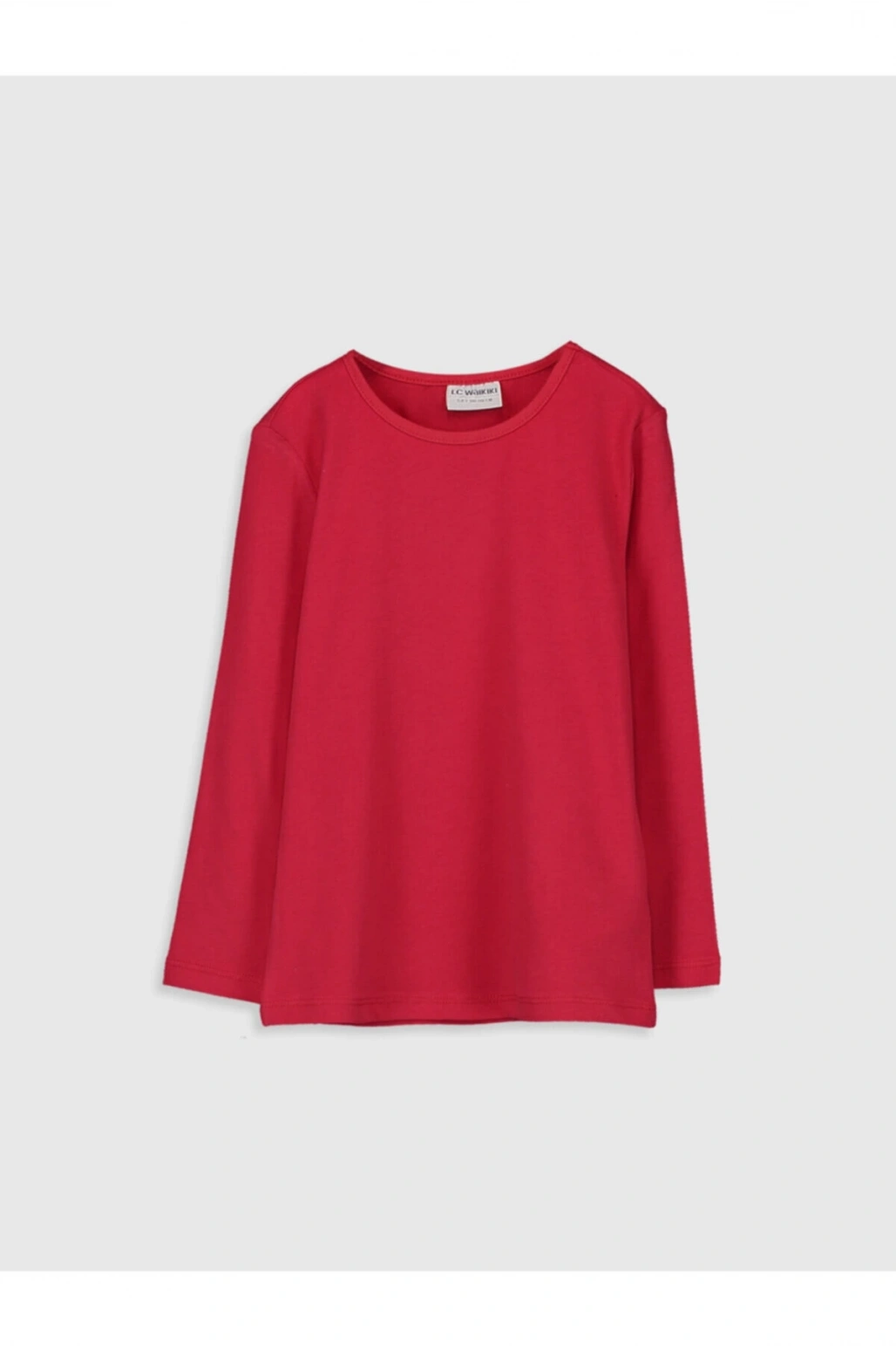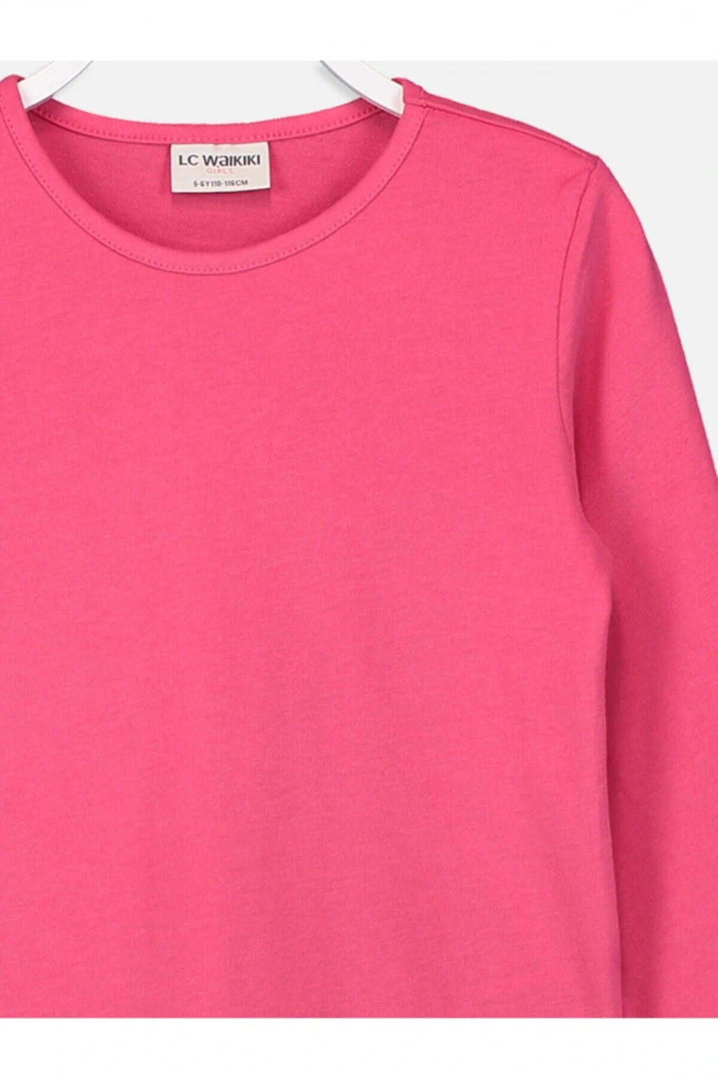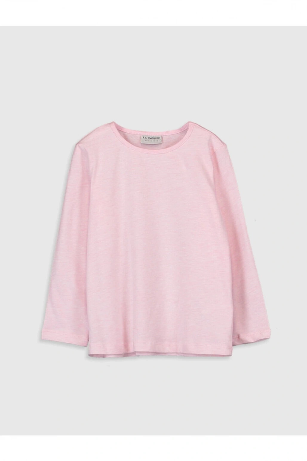 LCW Kids Pembe Bisiklet Yaka Basic Uzun Kollu Kız Çocuk Tişört