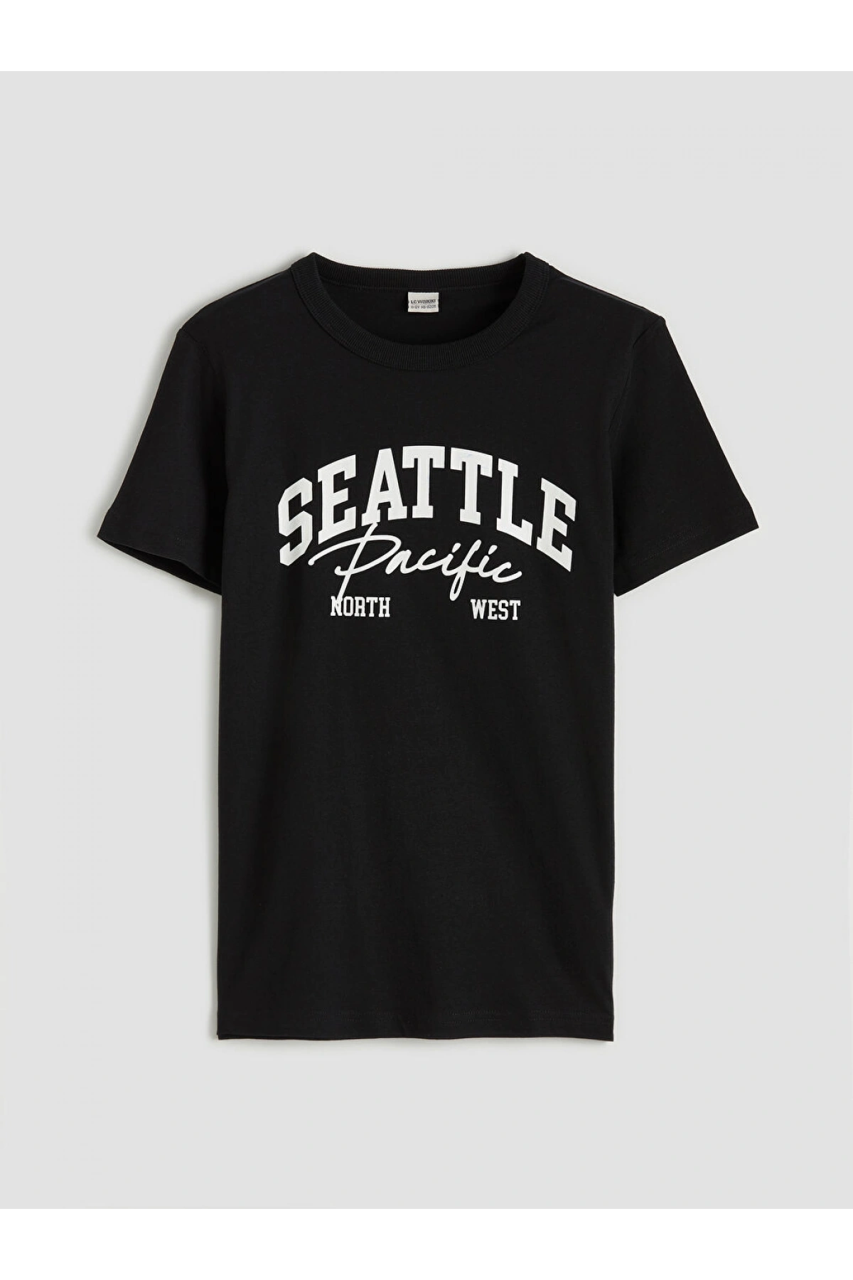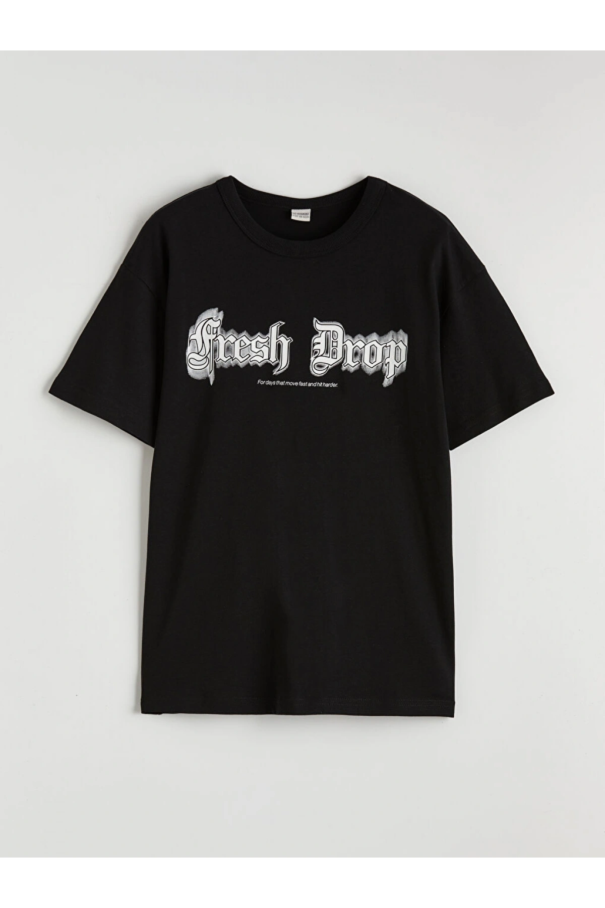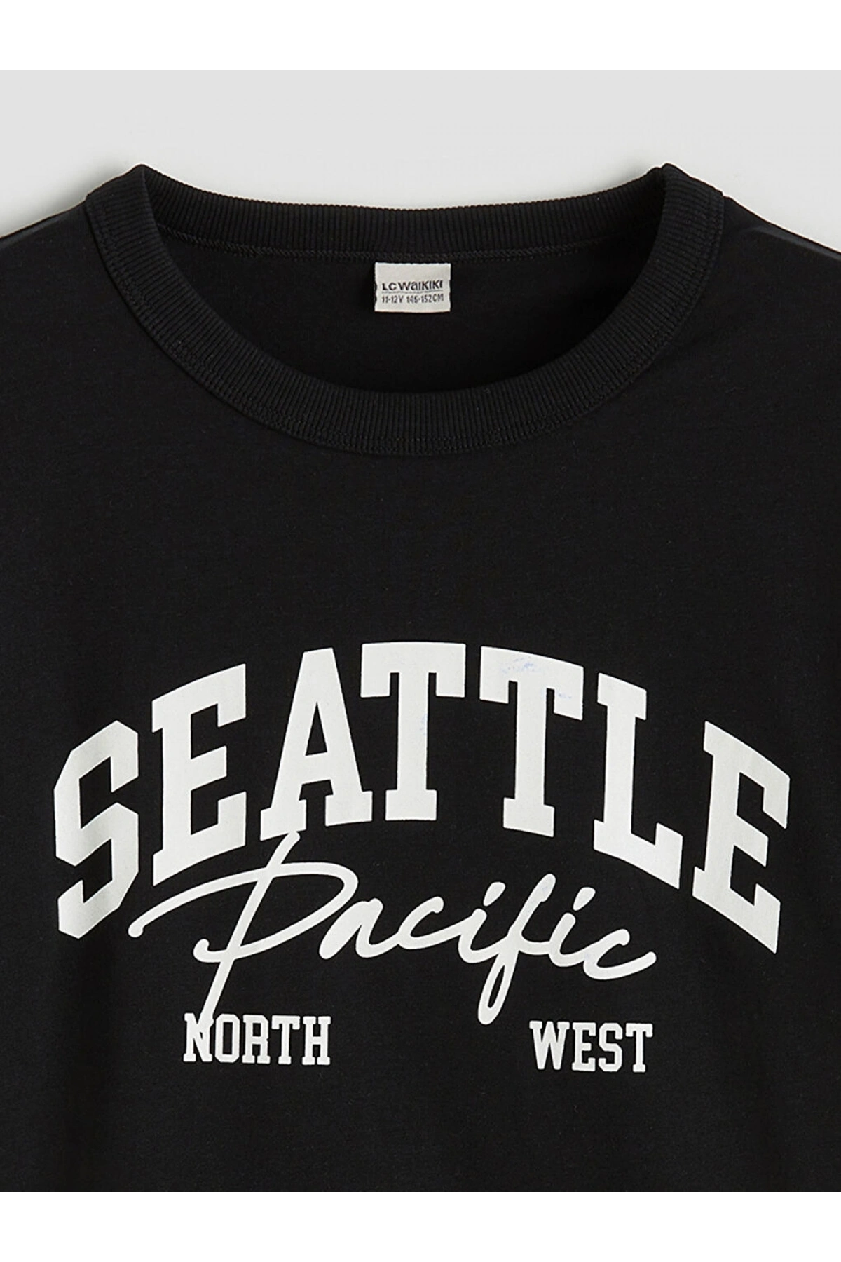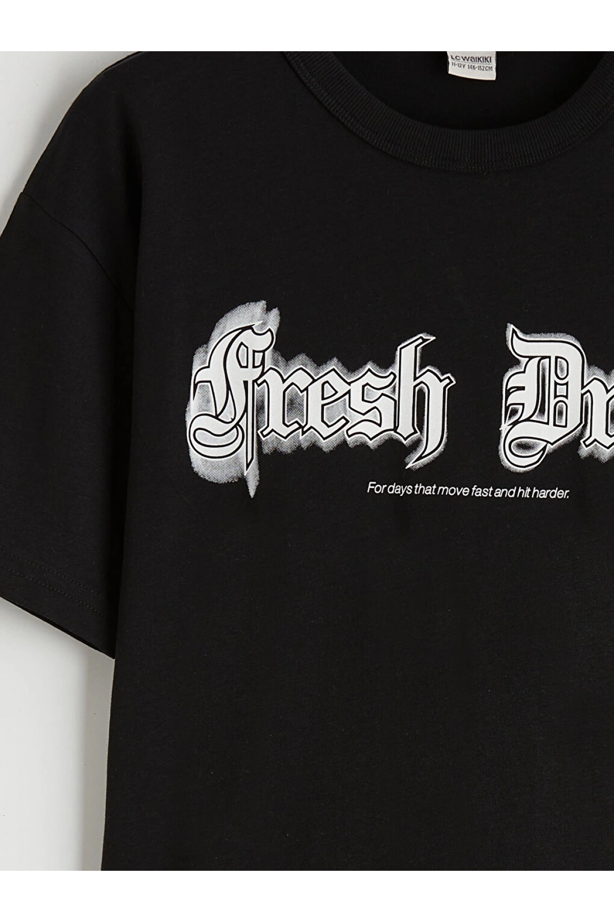 LCW Kids Siyah Bisiklet Yaka Baskılı Erkek Çocuk Tişört