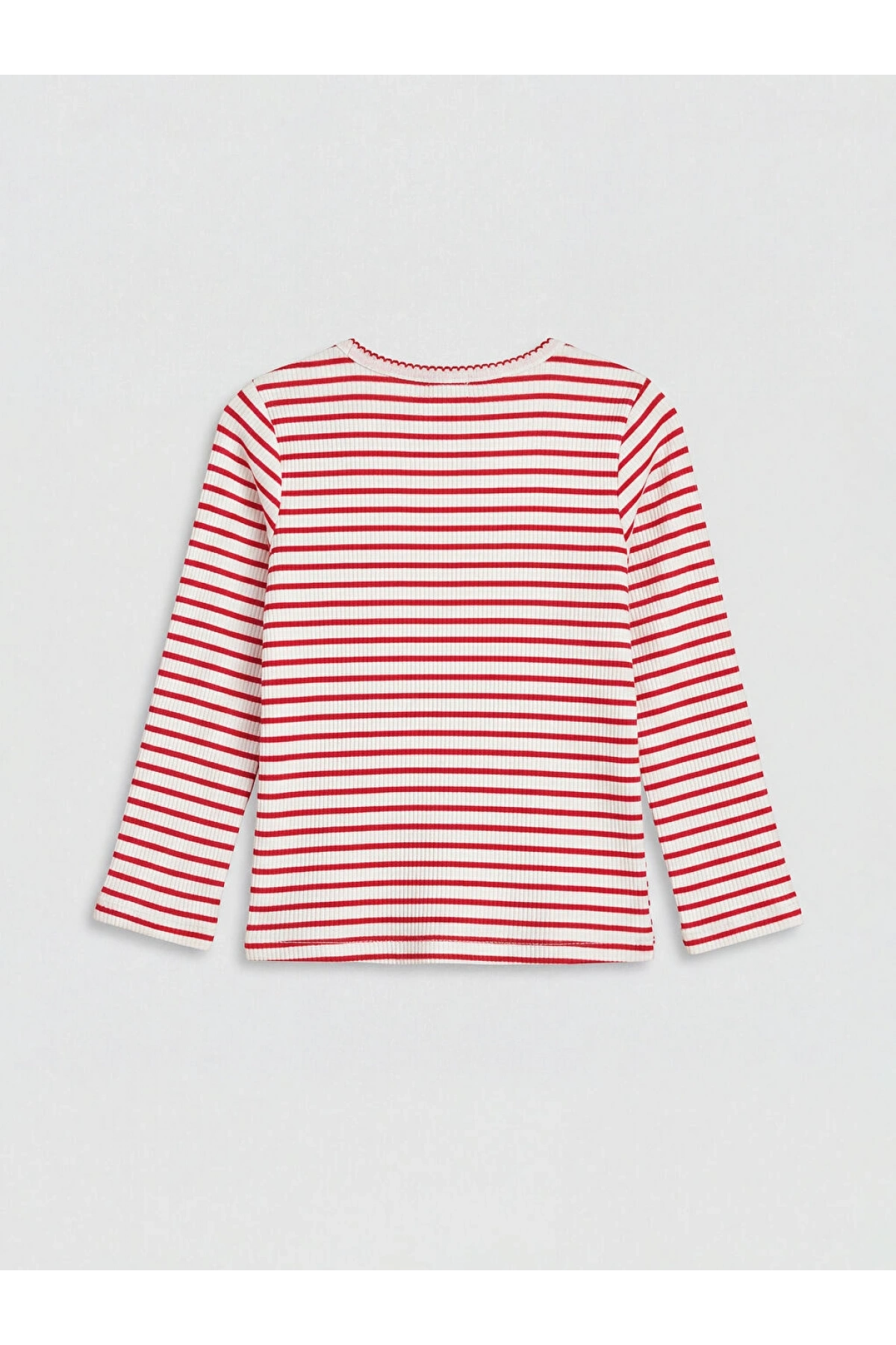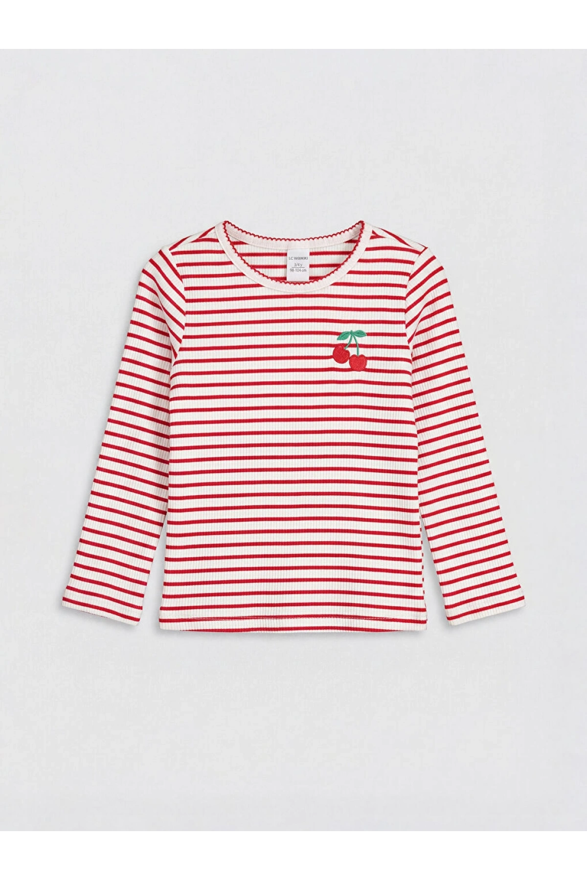 LC Waikiki Kırmızı Bisiklet Yaka Çizgili Kız Çocuk Triko Tişört