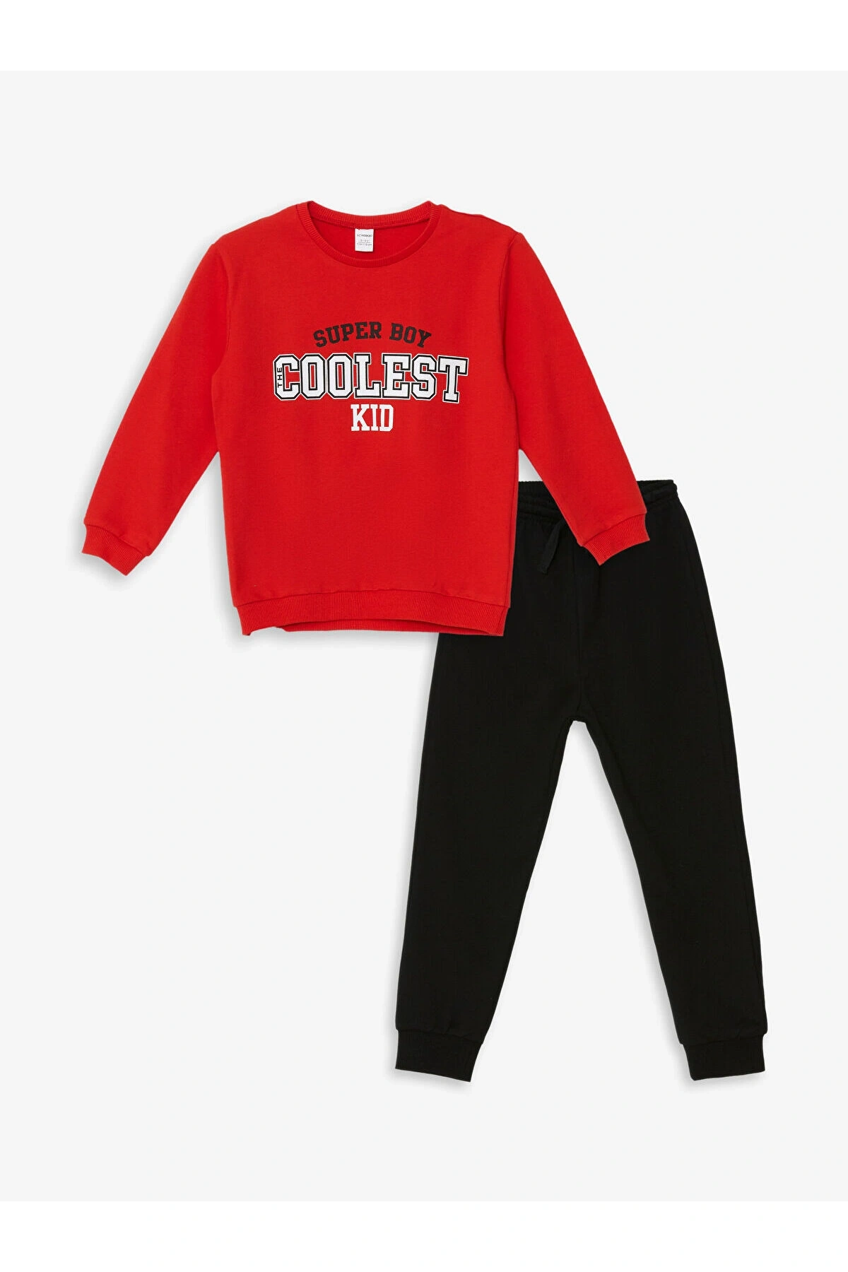 Bisiklet Yaka Uzun Baskılı Erkek Bebek Sweatshirt ve Pantolon 2'li Takım