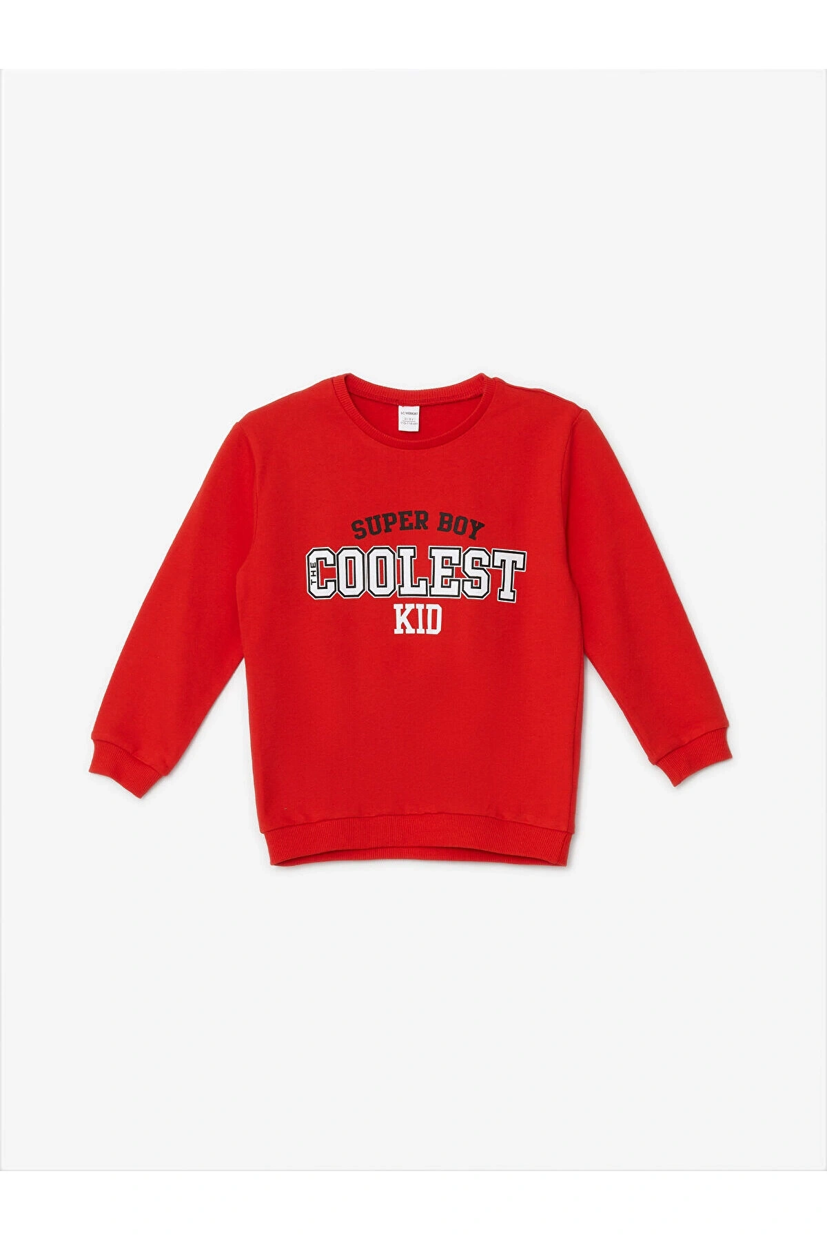Bisiklet Yaka Uzun Kollu Baskılı Erkek Bebek Sweatshirt ve Pantolon 2'li Takım