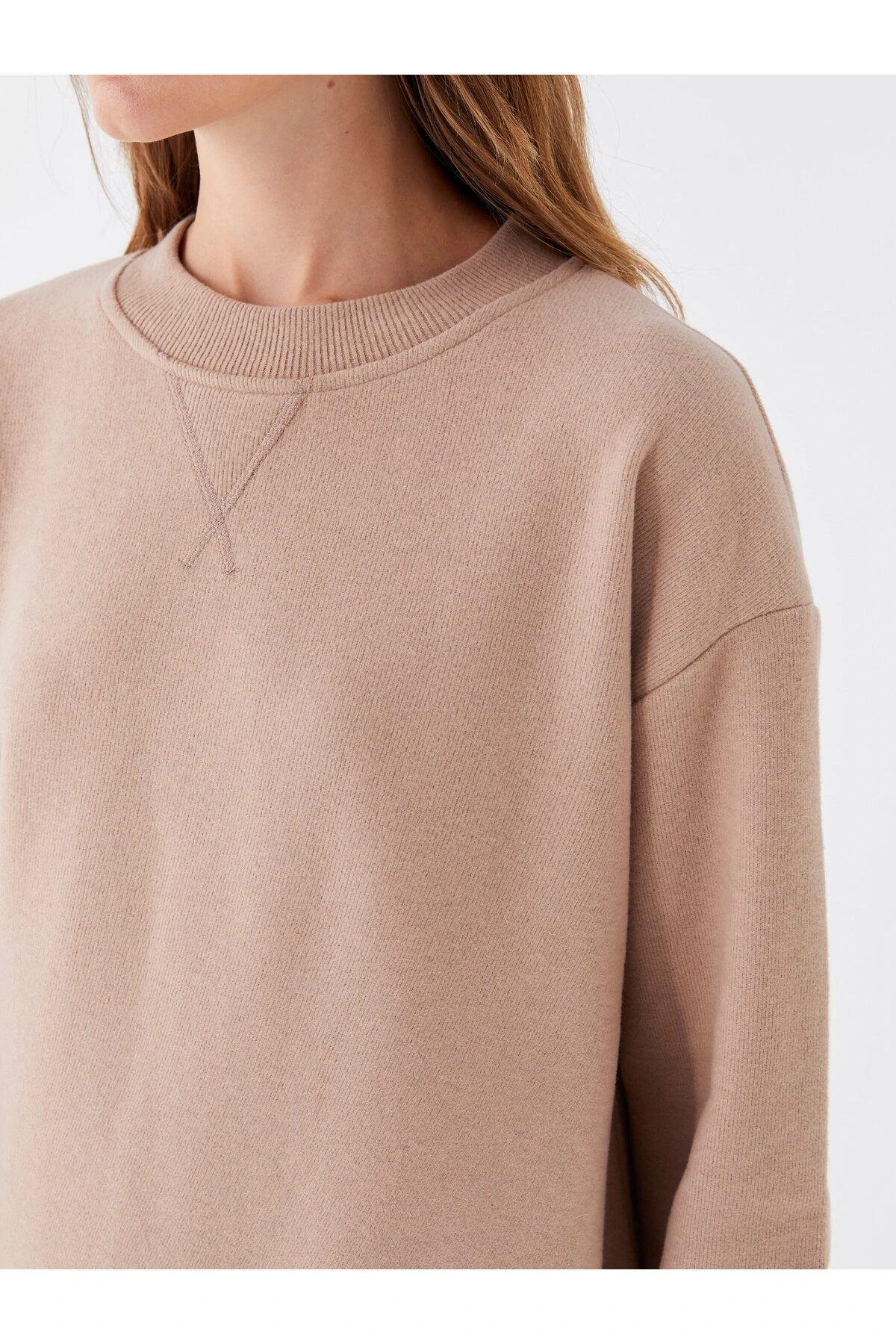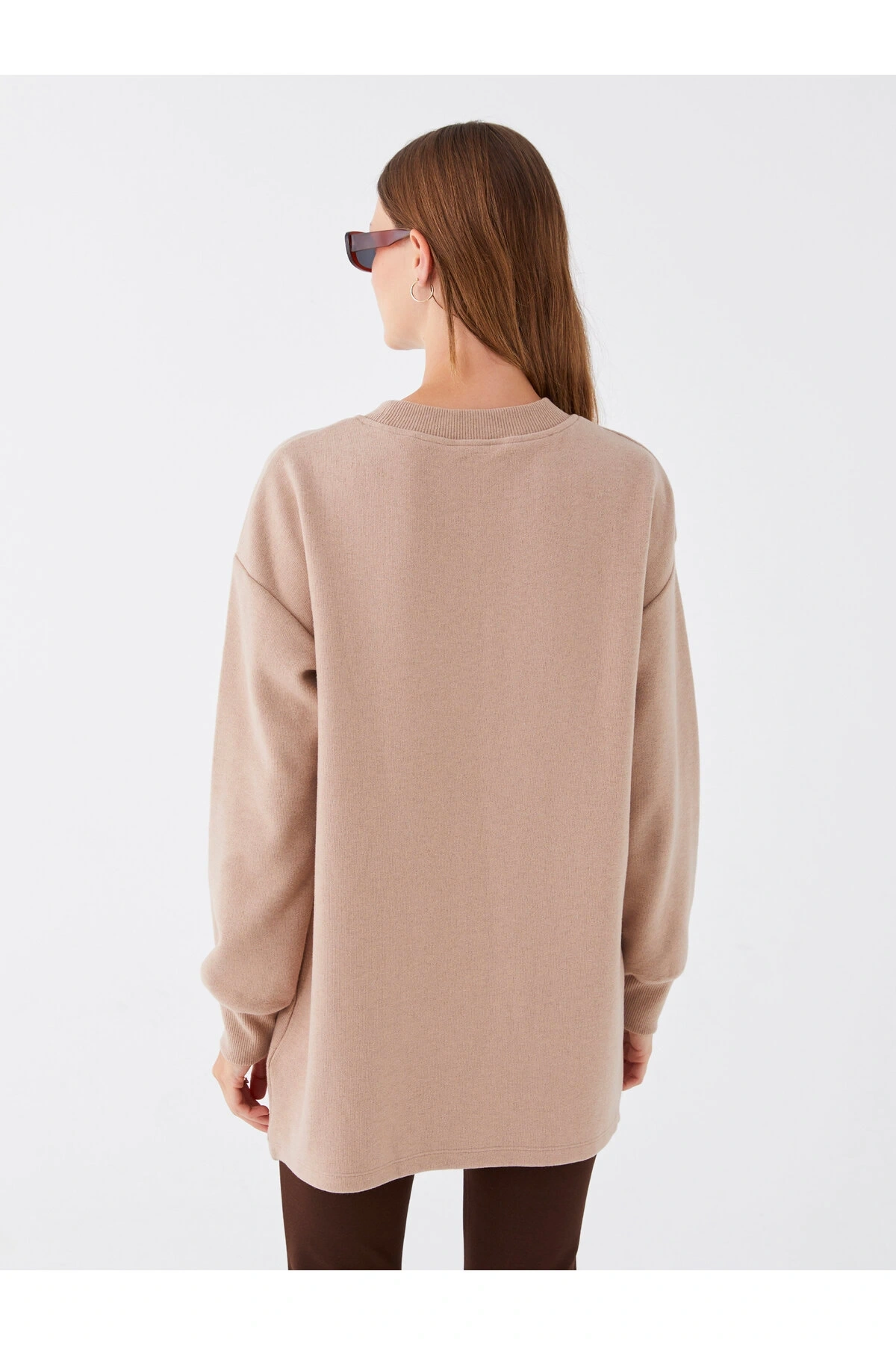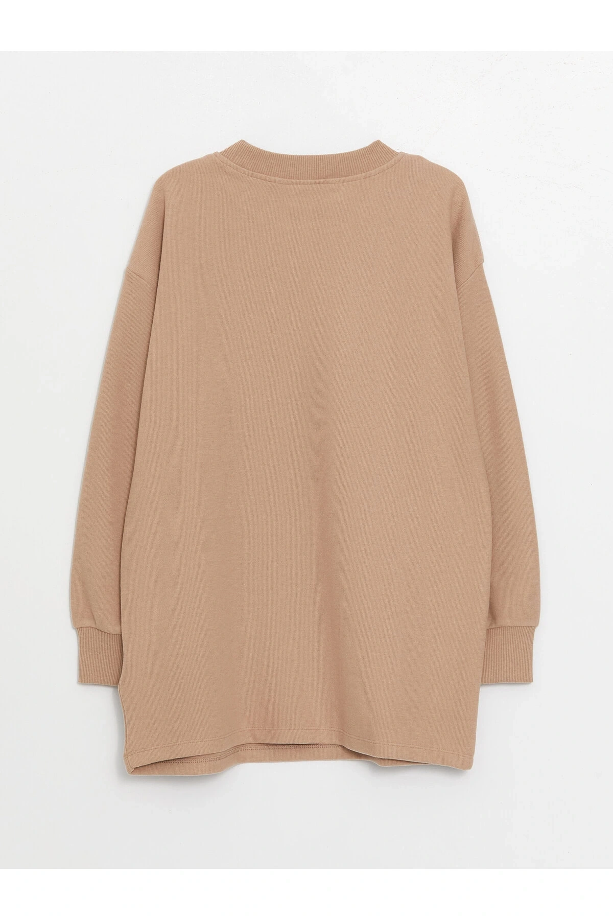 Bisiklet Yaka Baskılı Uzun Kollu Oversize Kadın Sweatshirt Tunik