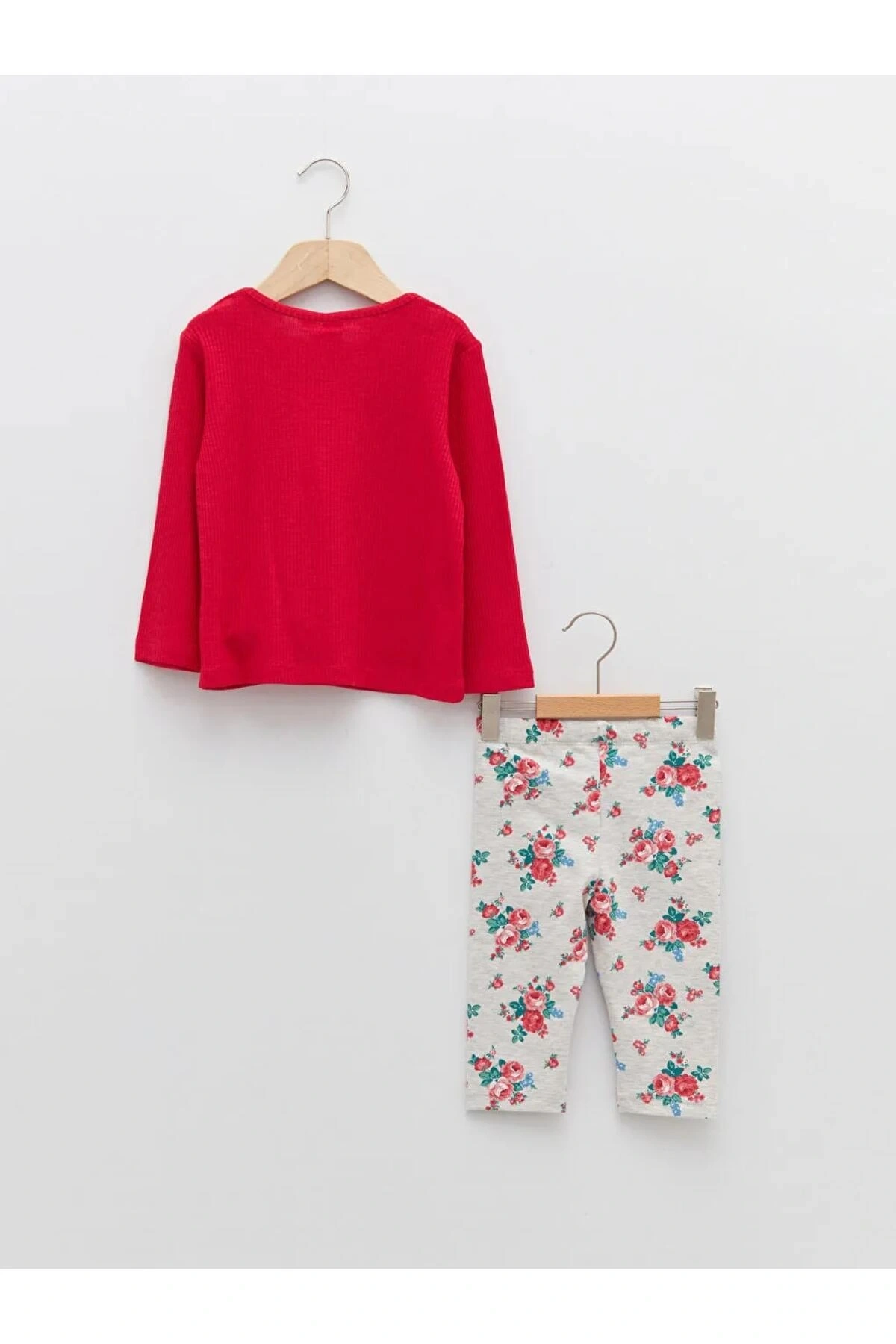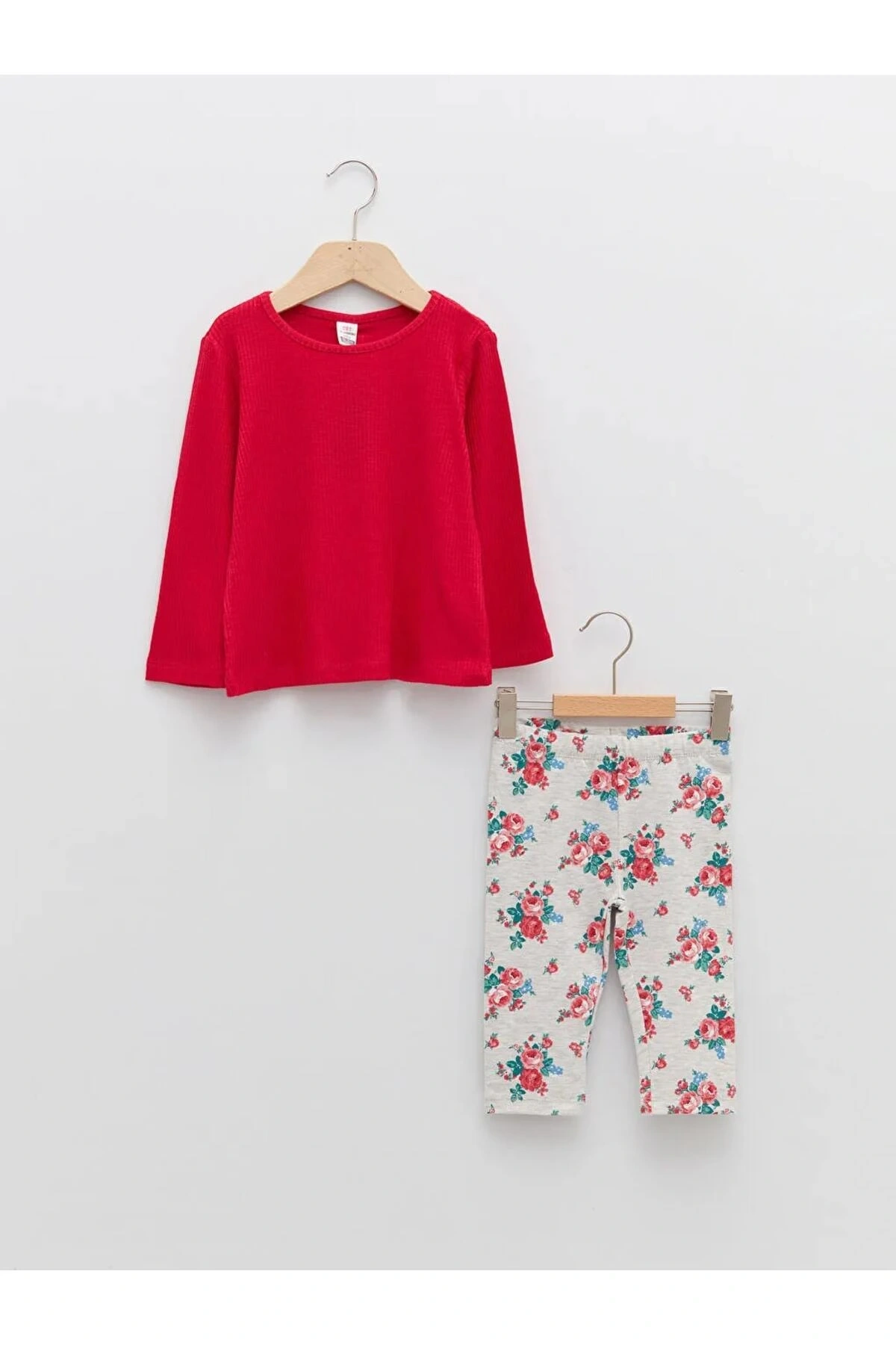 LCW baby Pembe Bisiklet Yaka Uzun Kollu Kız Bebek Tişört ve Tayt 2'li Takım