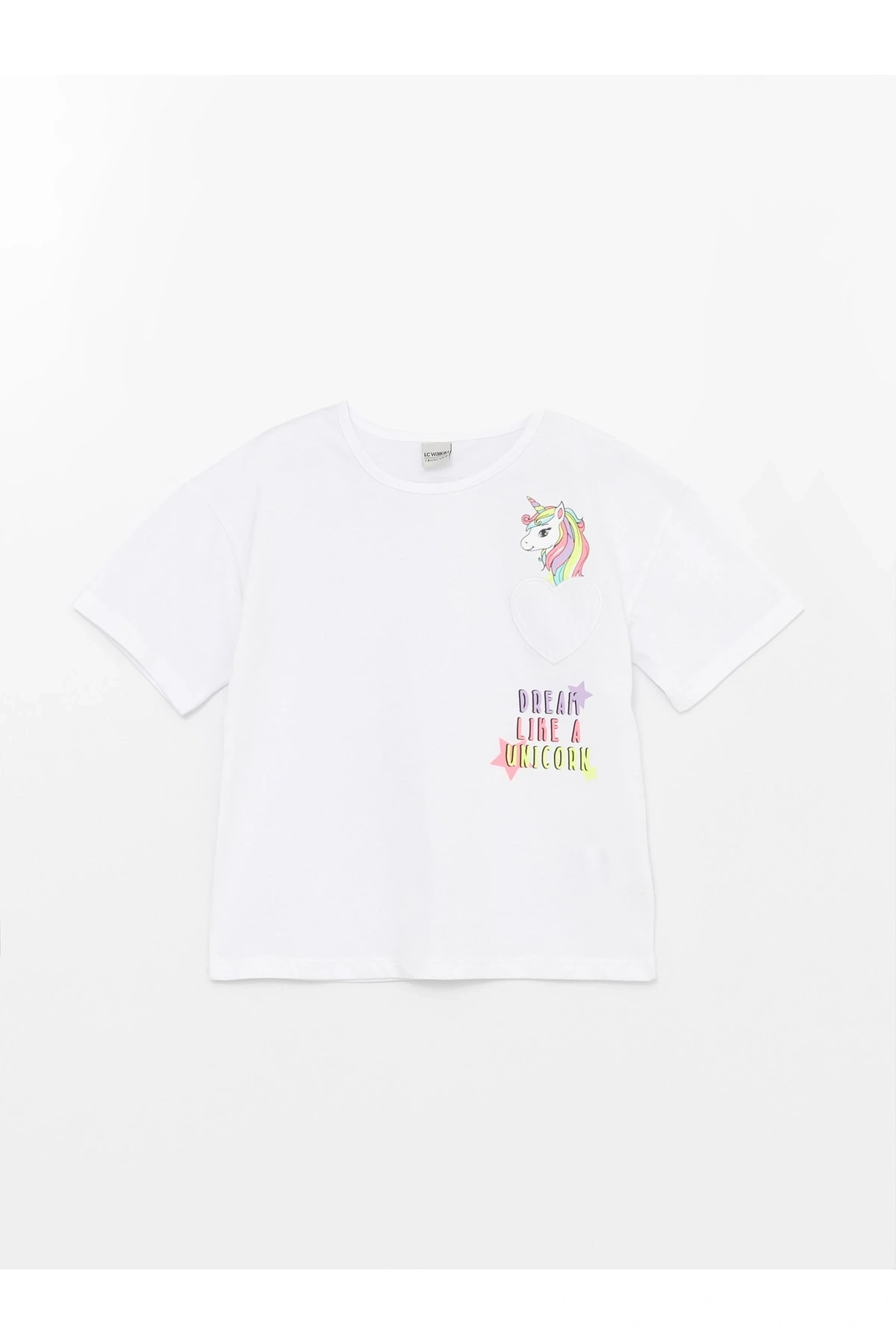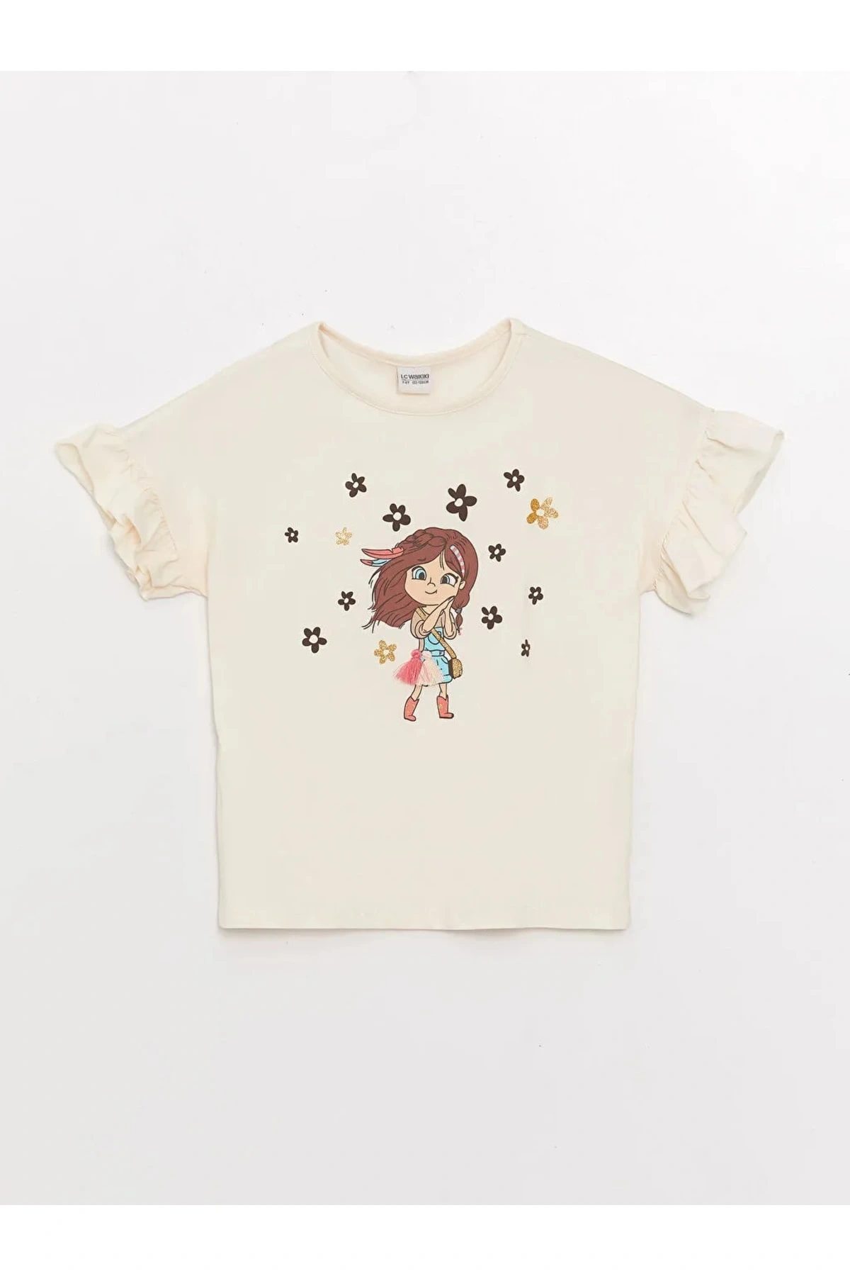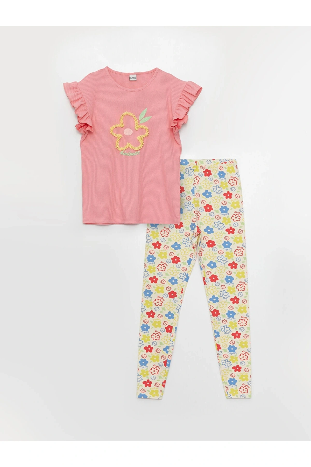 Lcw Kids Bisiklet Yaka Baskılı Kısa Kollu Kız Çocuk Tişört Ve Şort