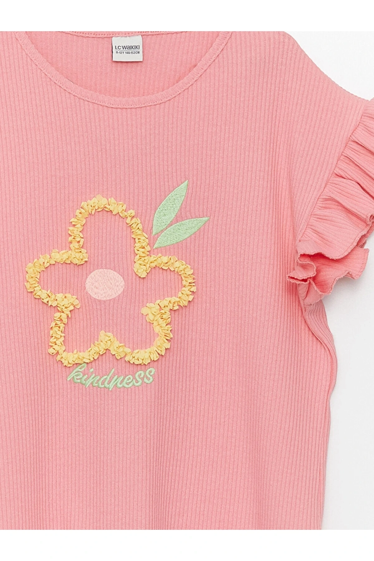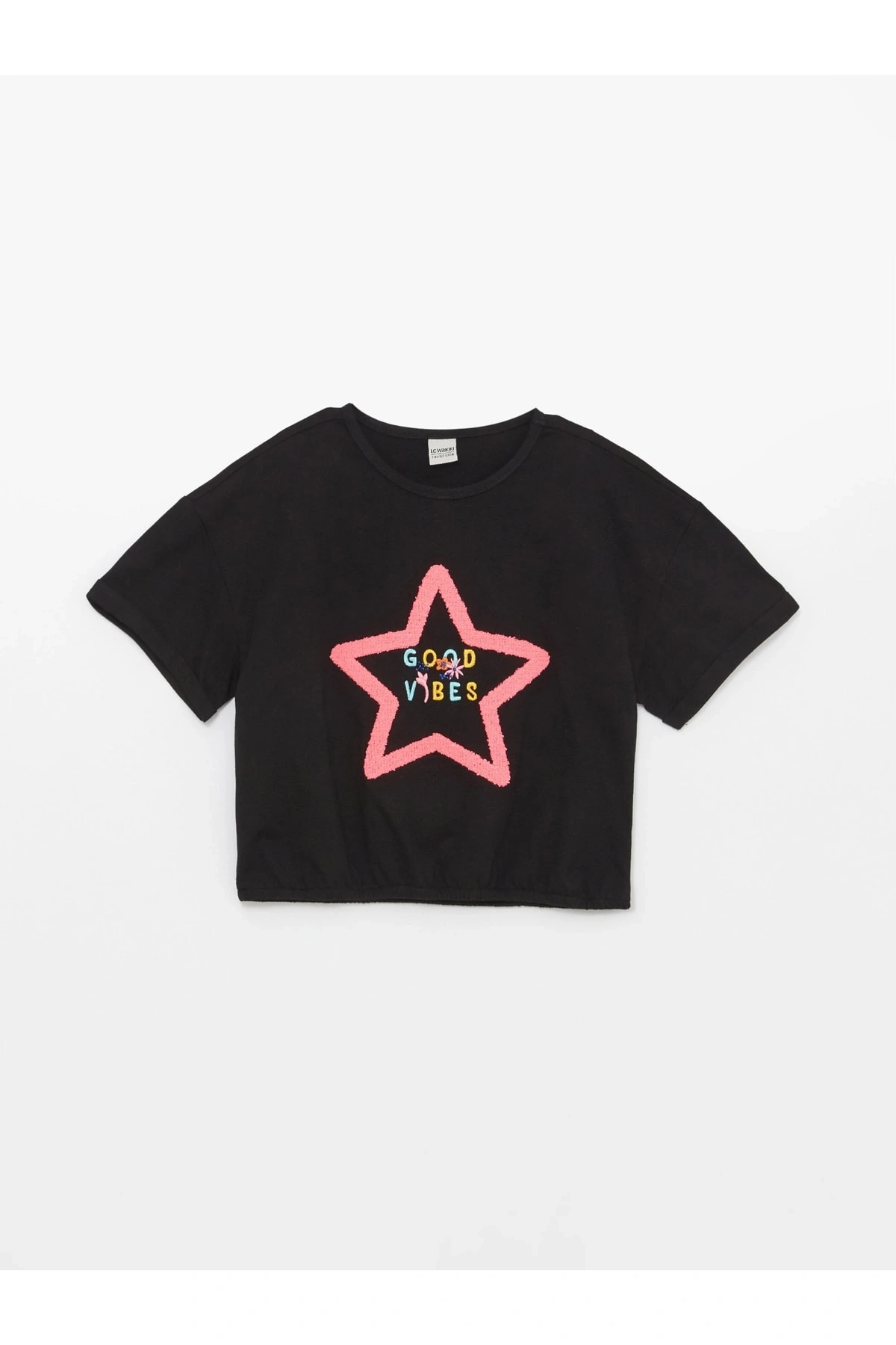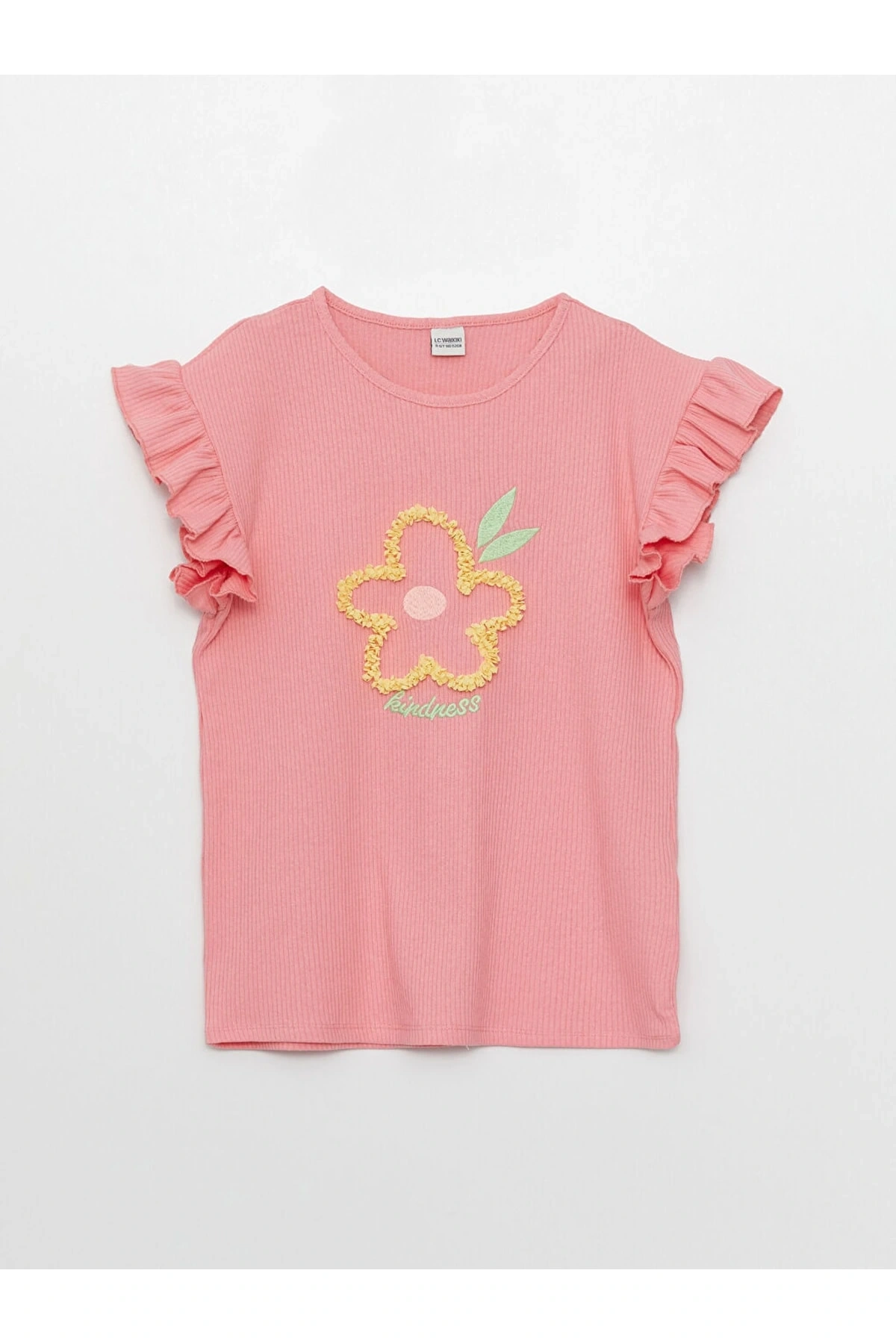 Lcw Kids Bisiklet Yaka Baskılı Kısa Kollu Kız Çocuk Tişört Ve Şort