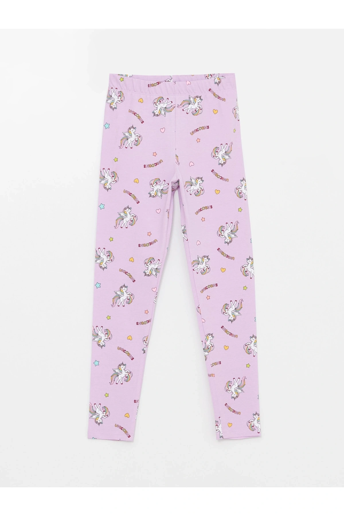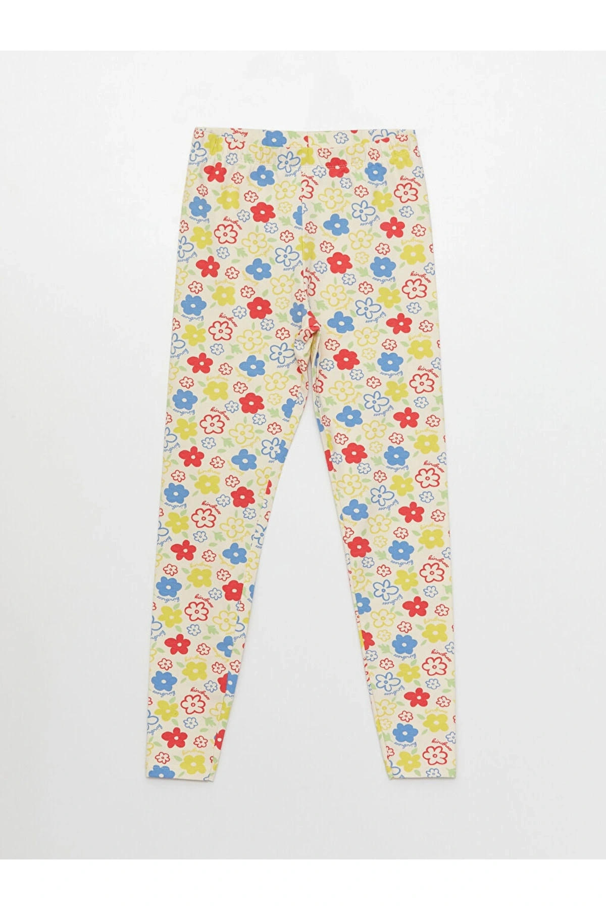 LCW Kids Ekru Bisiklet Yaka Baskılı Uzun Kollu Kız Çocuk Sweatshirt ve Tayt