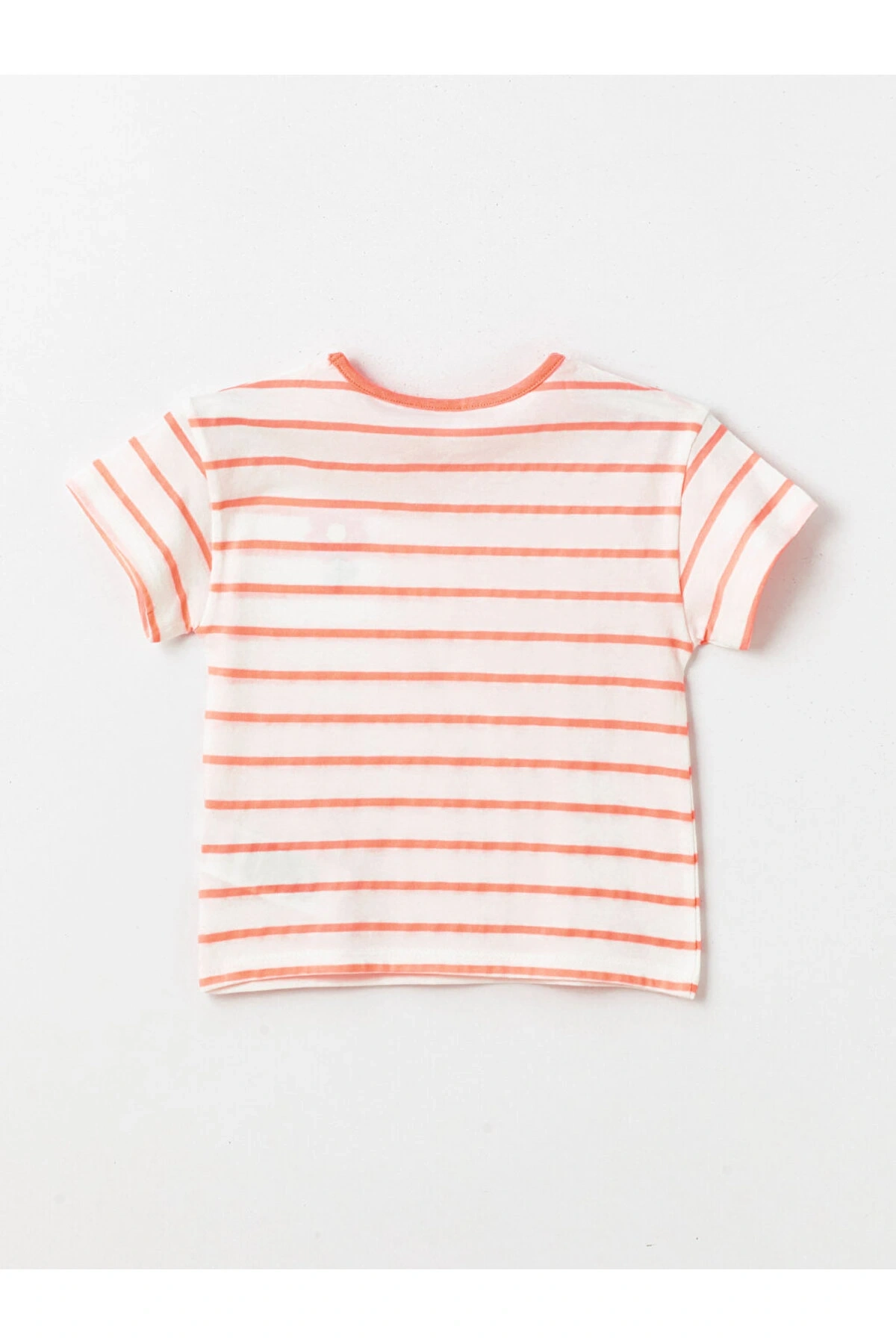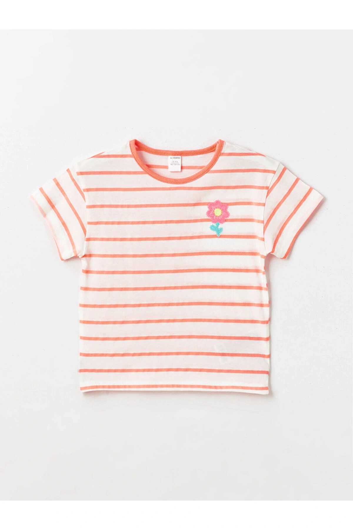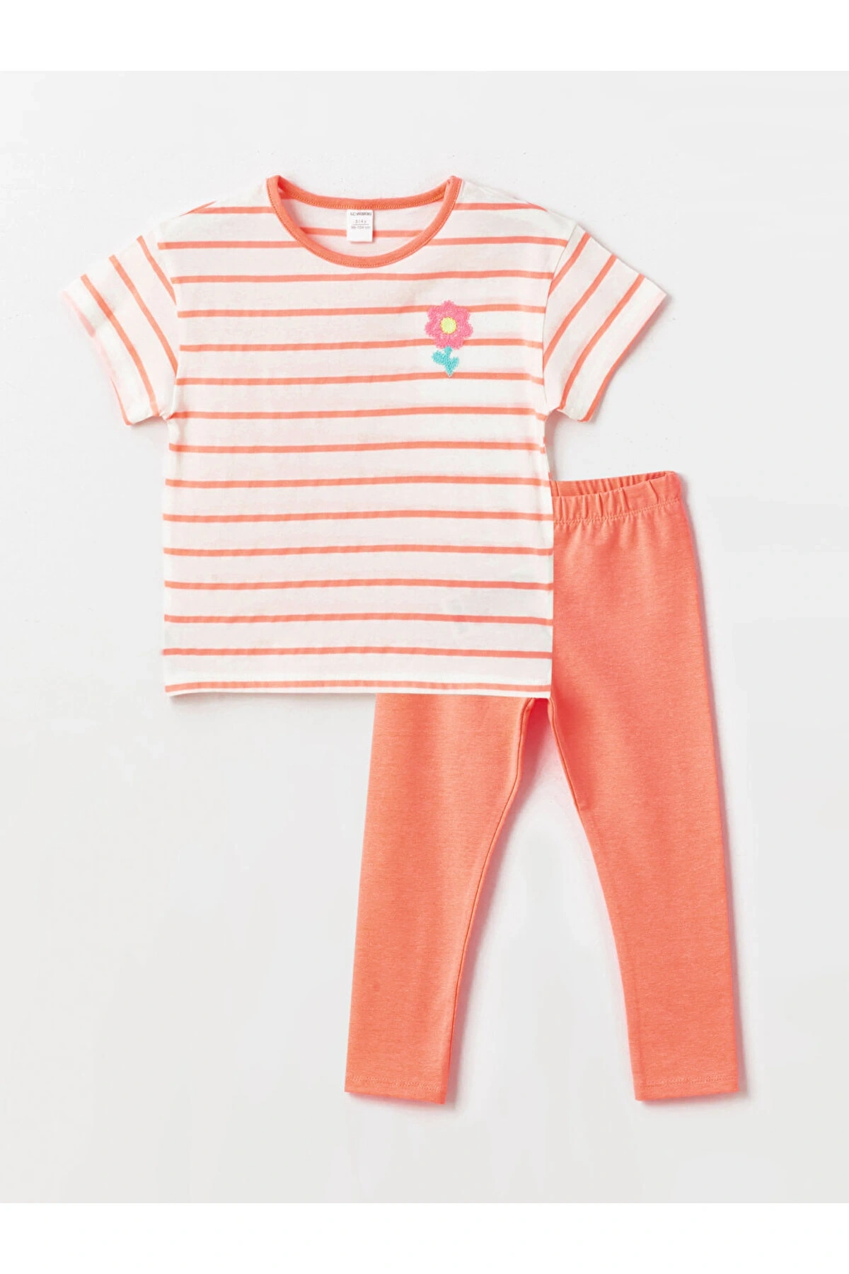 LCW baby Bisiklet Yaka Kısa Kollu Çizgili Kız Bebek Tişört ve Tayt 2'li Takım