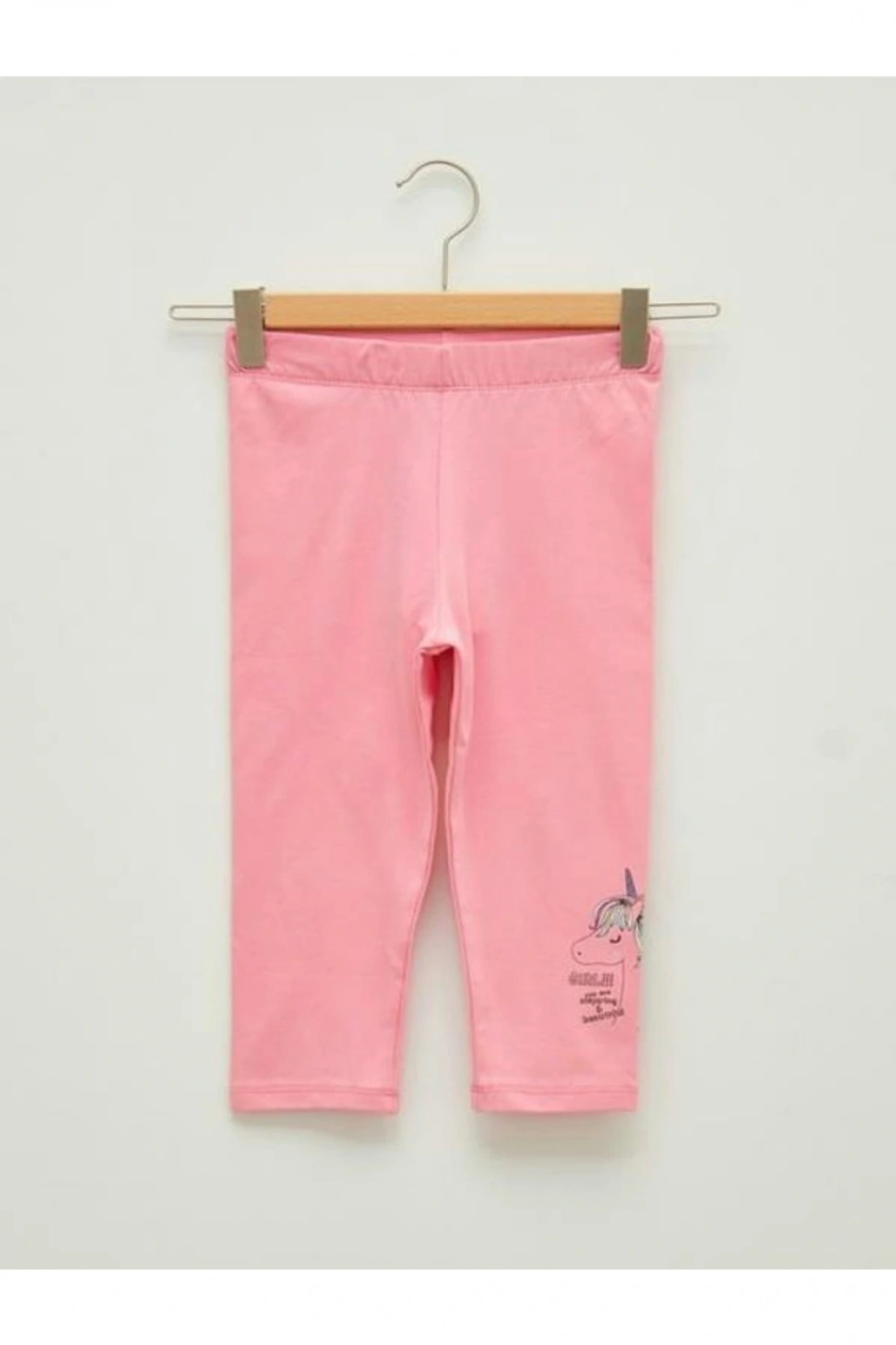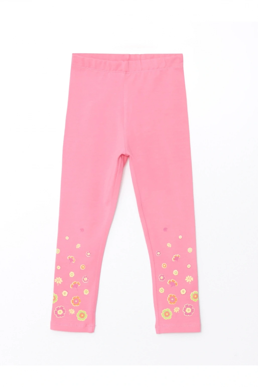 Beli Lastikli Baskılı Pamuklu Kız Çocuk Tayt (S1)