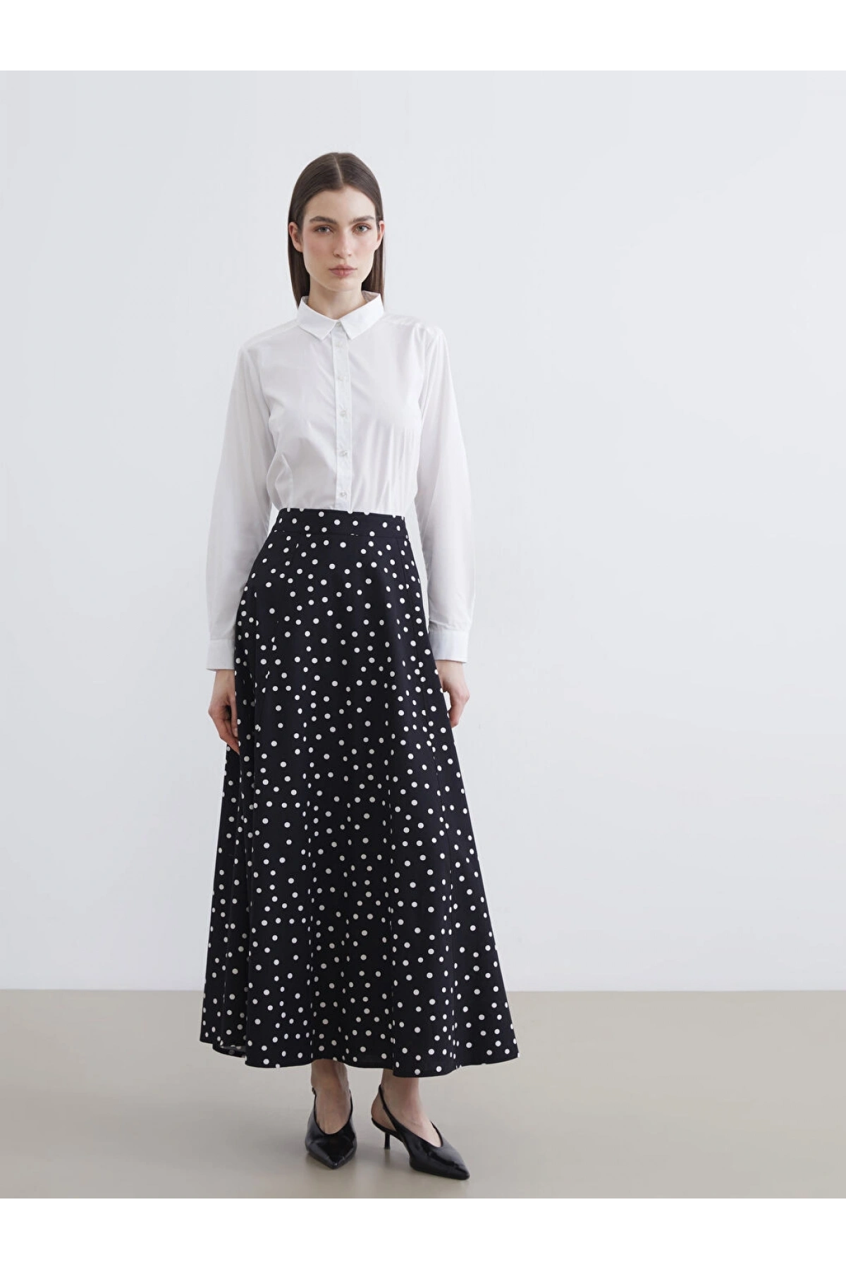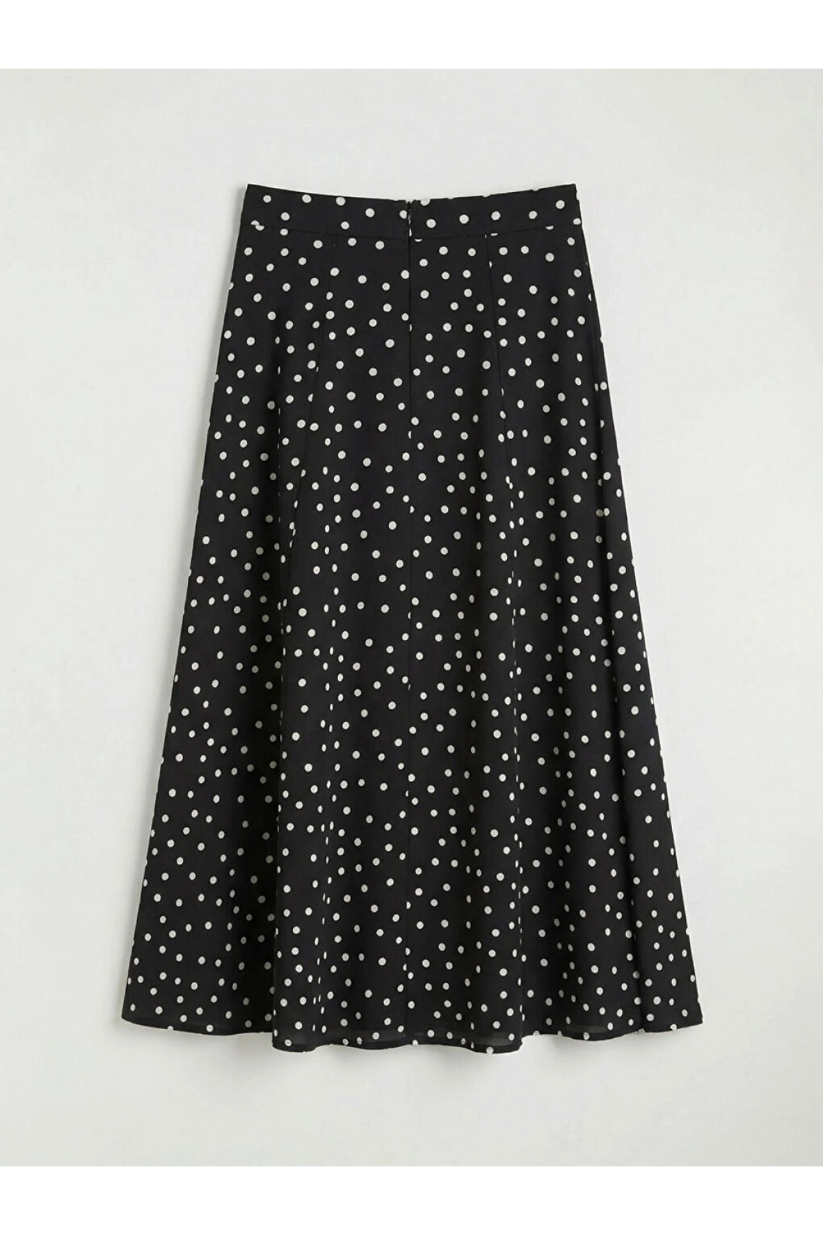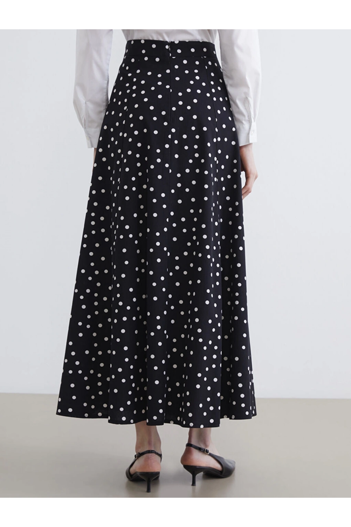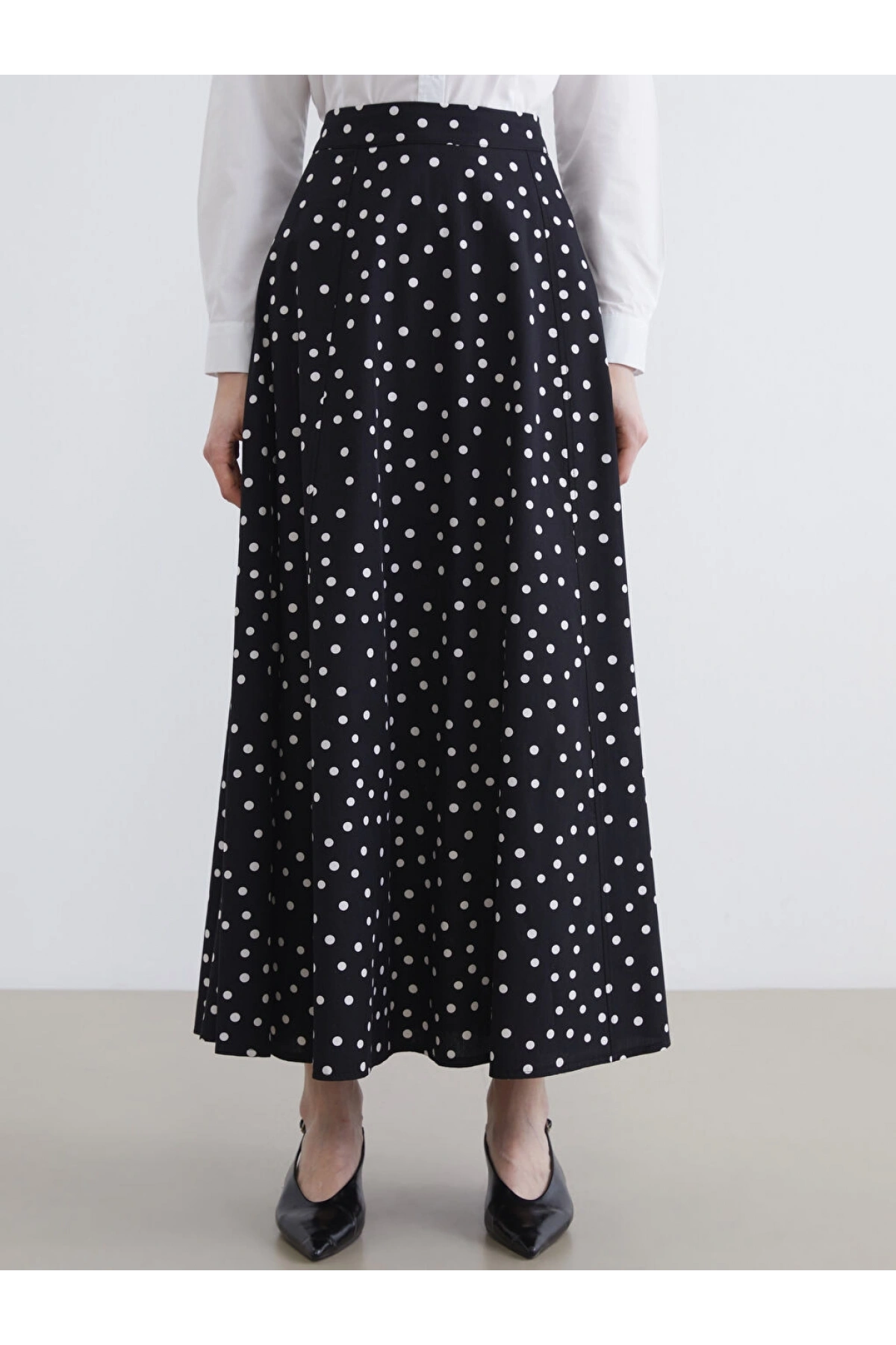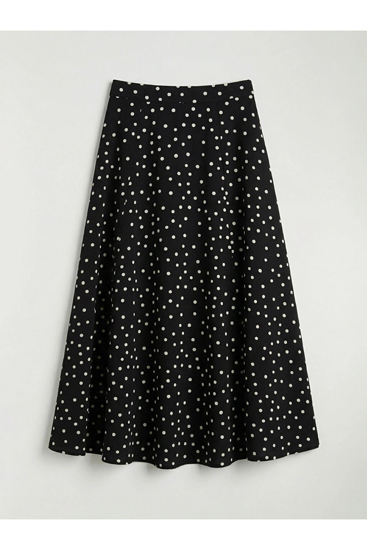 LCW Modest Siyah Beli Fermuarlı Puantiyeli Kloş Etek