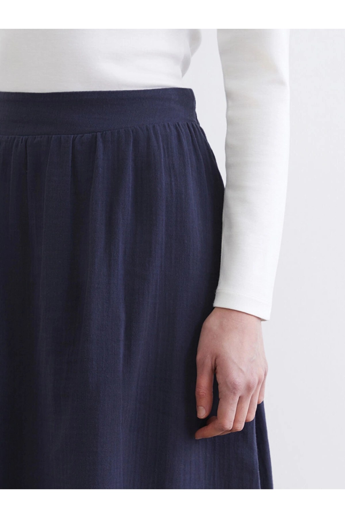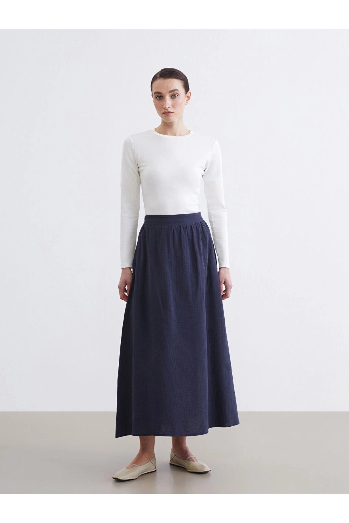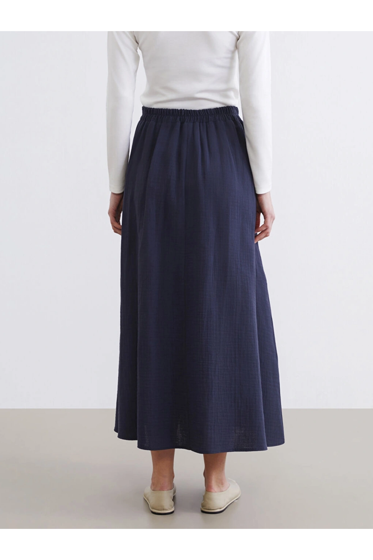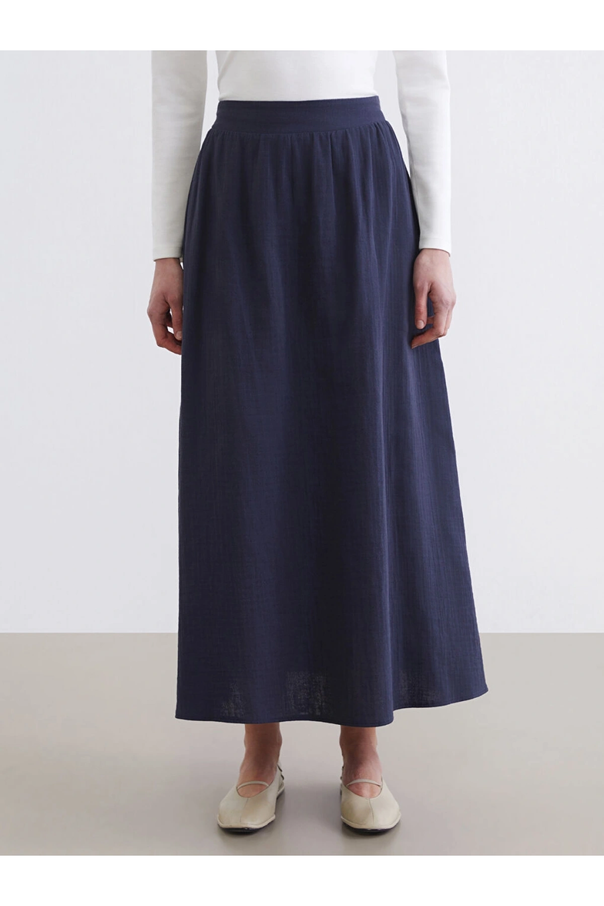 LCW Modest Lacivert Beli Lastikli Dokulu Kloş Etek