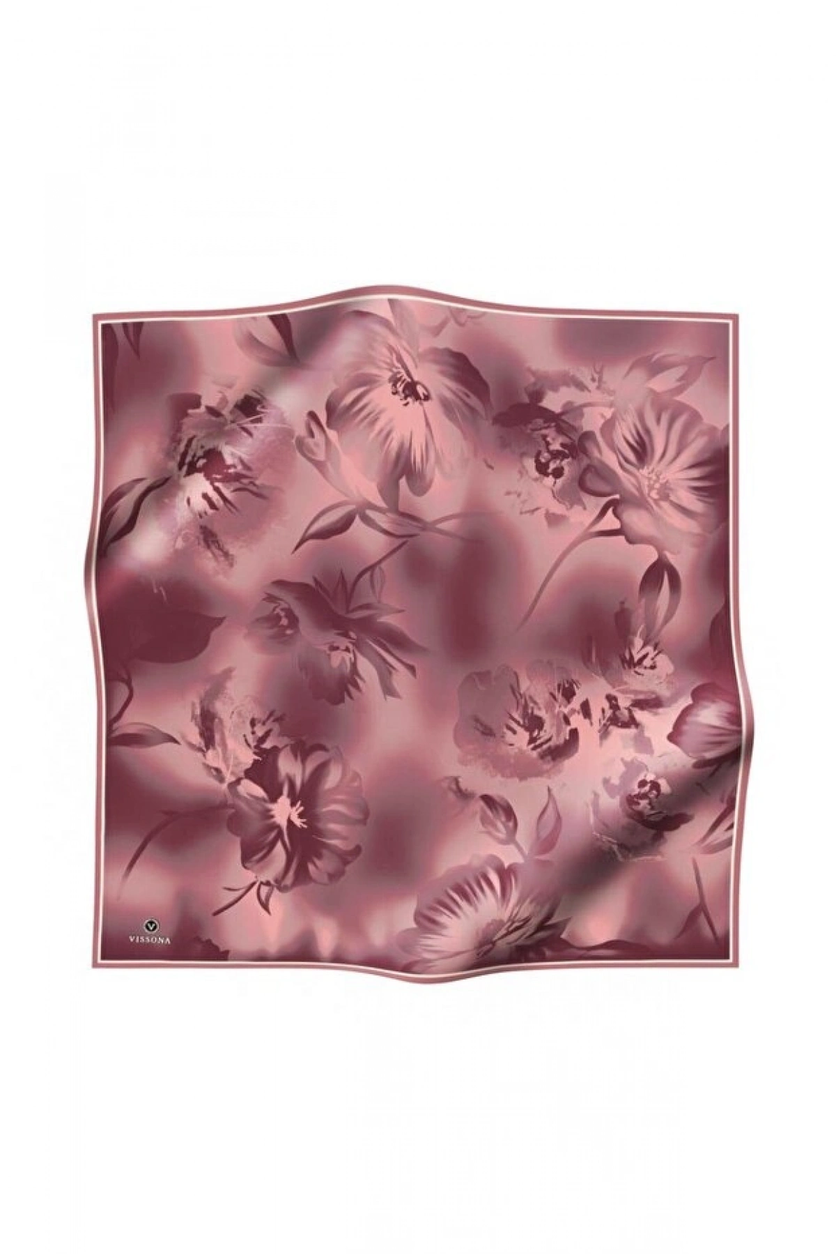 Vissona 100% Twill İpek Çiçek Desenli Pudra Renkli 90x90 Dikim Şekli : El Dikişi Eşarp