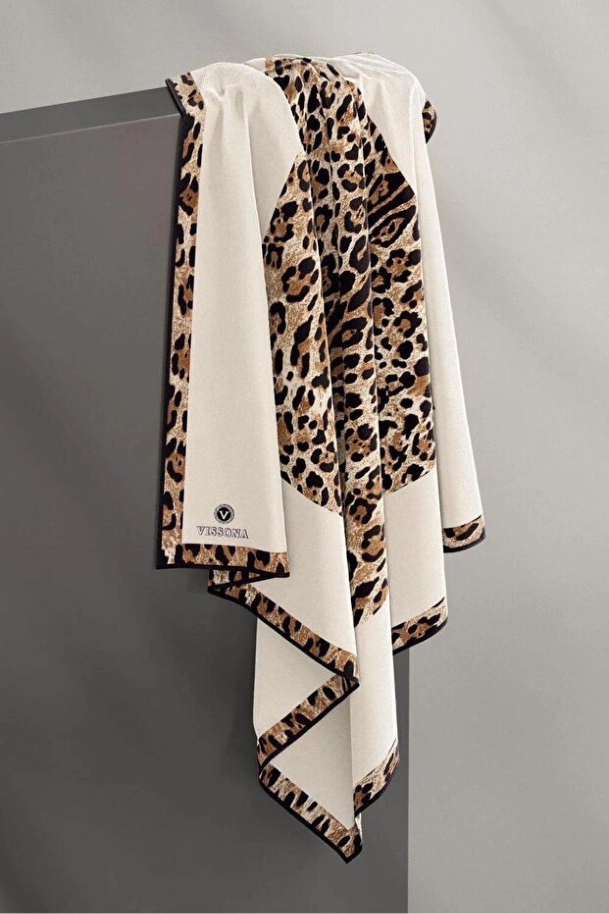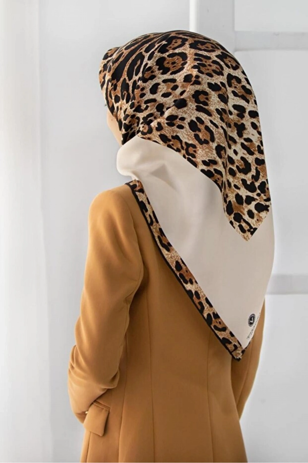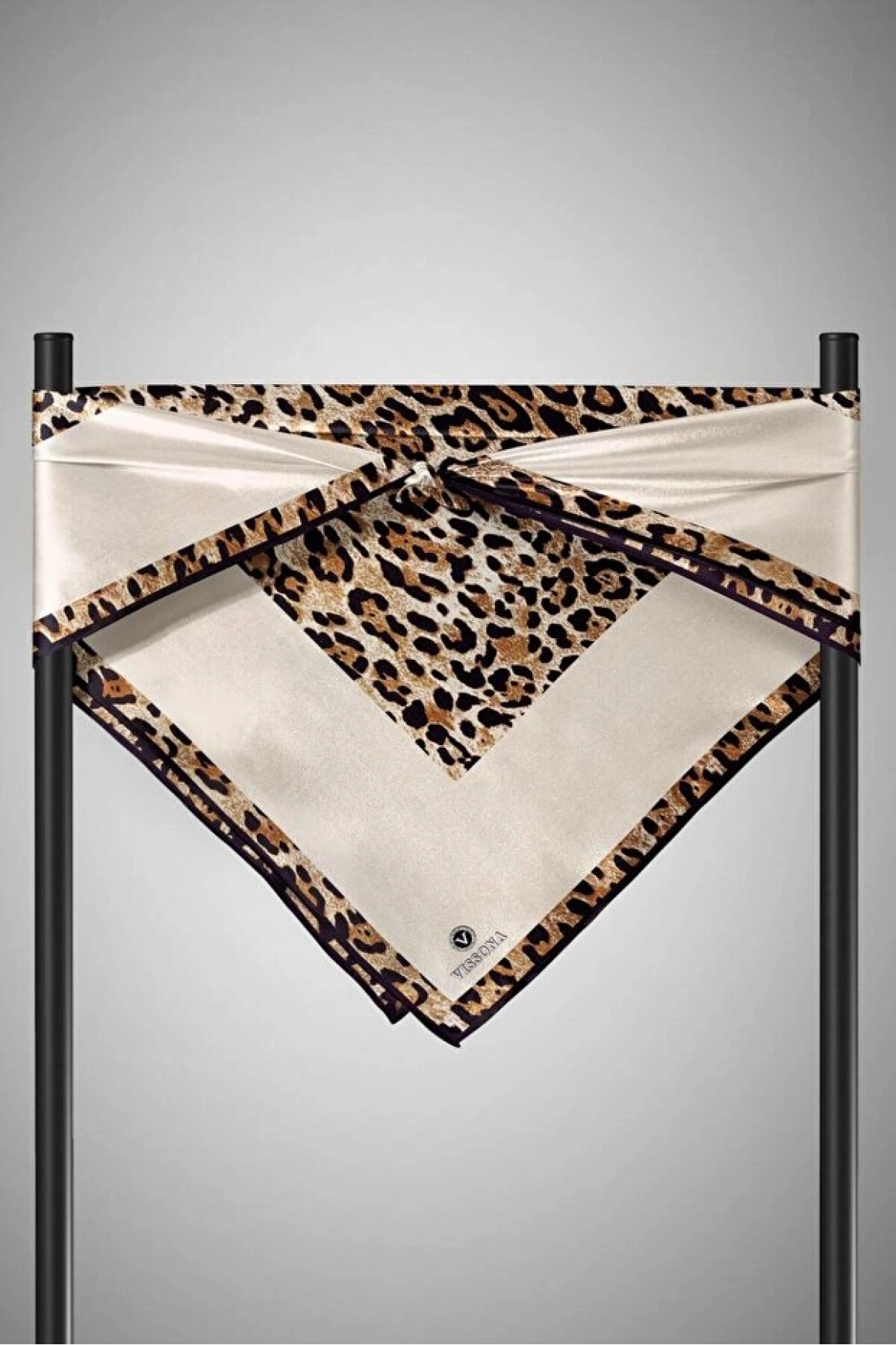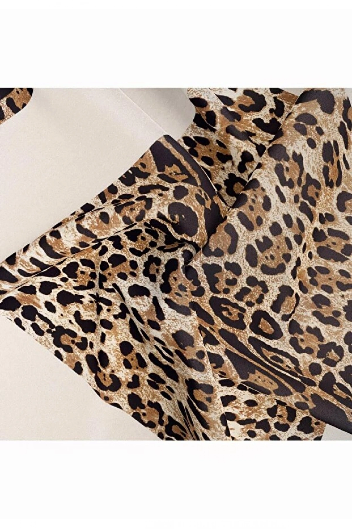 Vissona %100 Twill İpek Leopar Desenli Krem Renkli 90x90 Eşarp Dikim Şekli : El Dikişi
