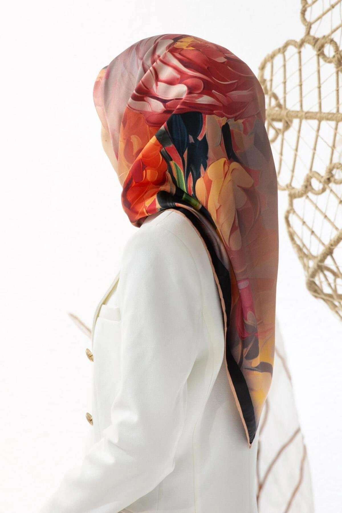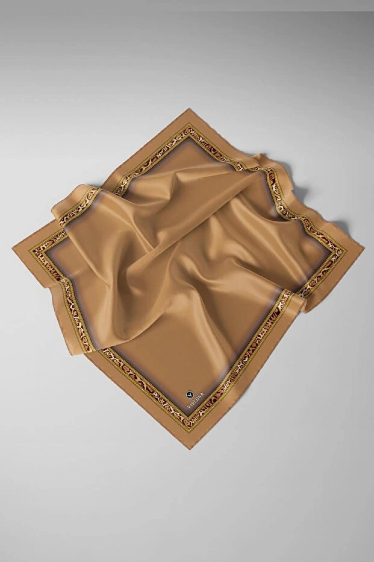 Vissona %100 Twill İpek Degrade Desenli Taş Renkli 90x90 Eşarp Dikim Şekli : El Dikişi