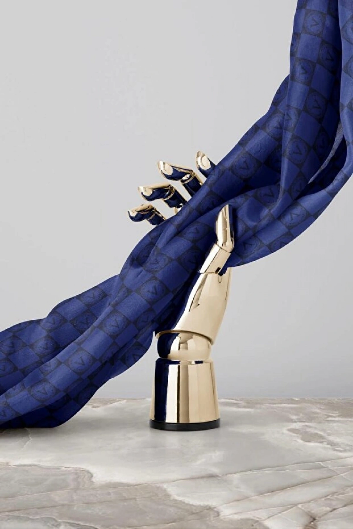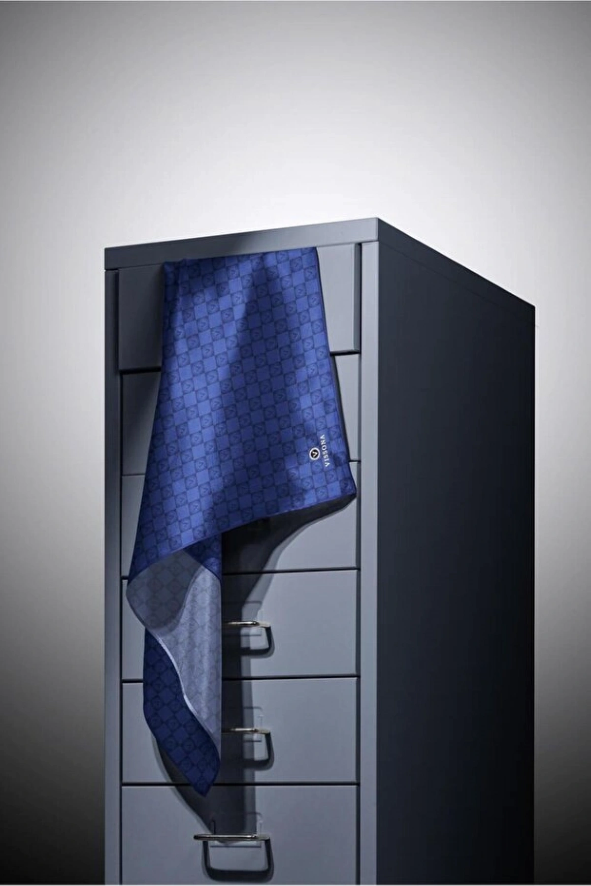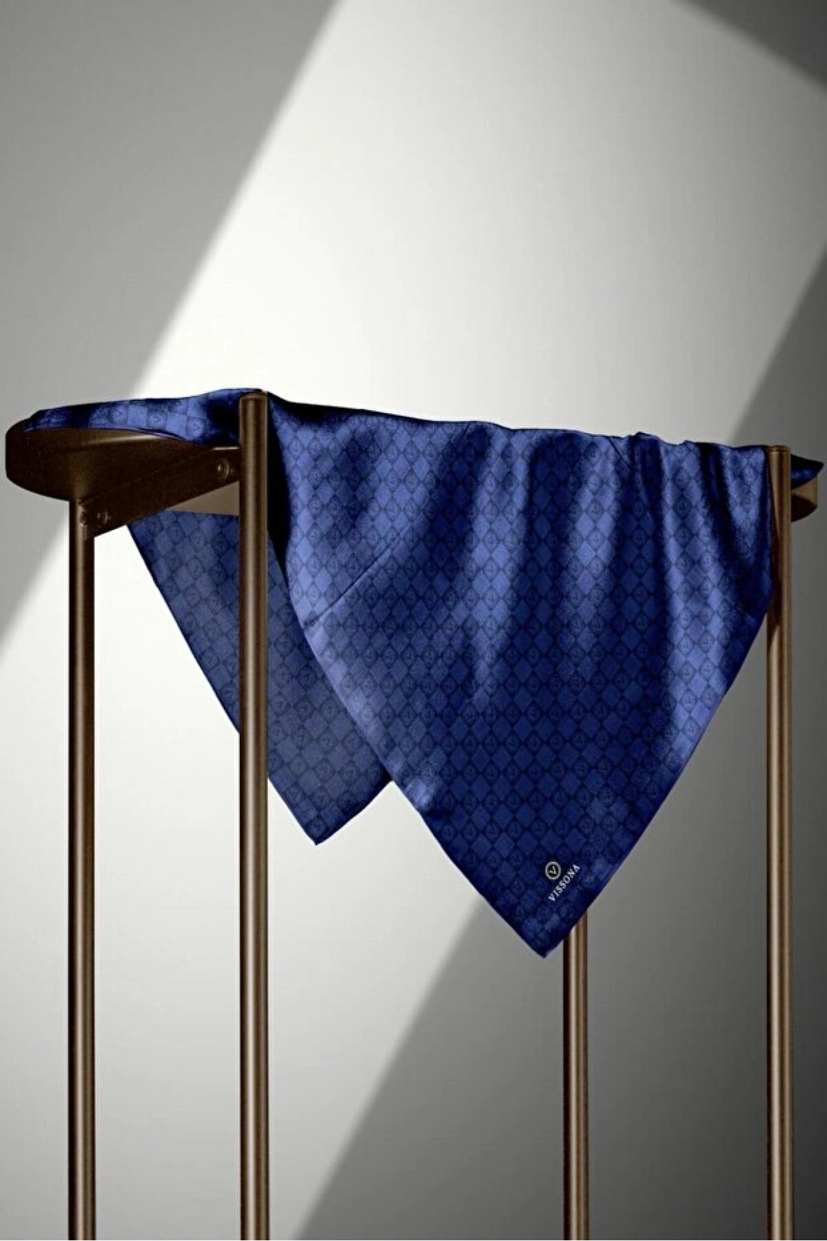 Vissona %100 Twill İpek Monogram Desenli Saks Renkli 90x90 Eşarp Dikim Şekli : El Dikişi