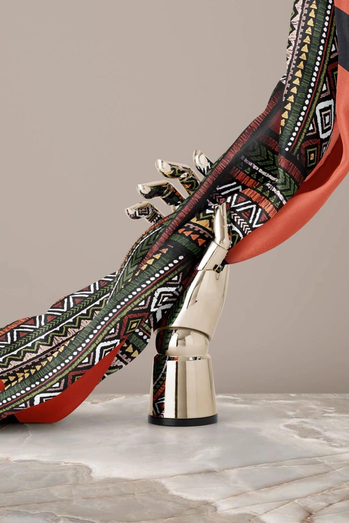 Vissona %100 Twill İpek Etnik Desenli Taba - Haki Renkli 90x90 Eşarp Dikim Şekli : El Dikişi