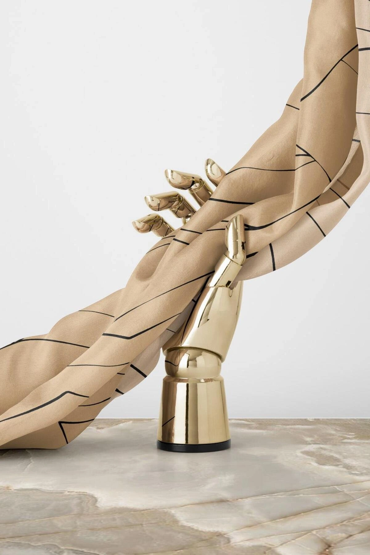 Vissona %100 Twill İpek Çizgi Desenli Bej - Siyah Renkli 90x90 Eşarp Dikim Şekli : El Dikişi