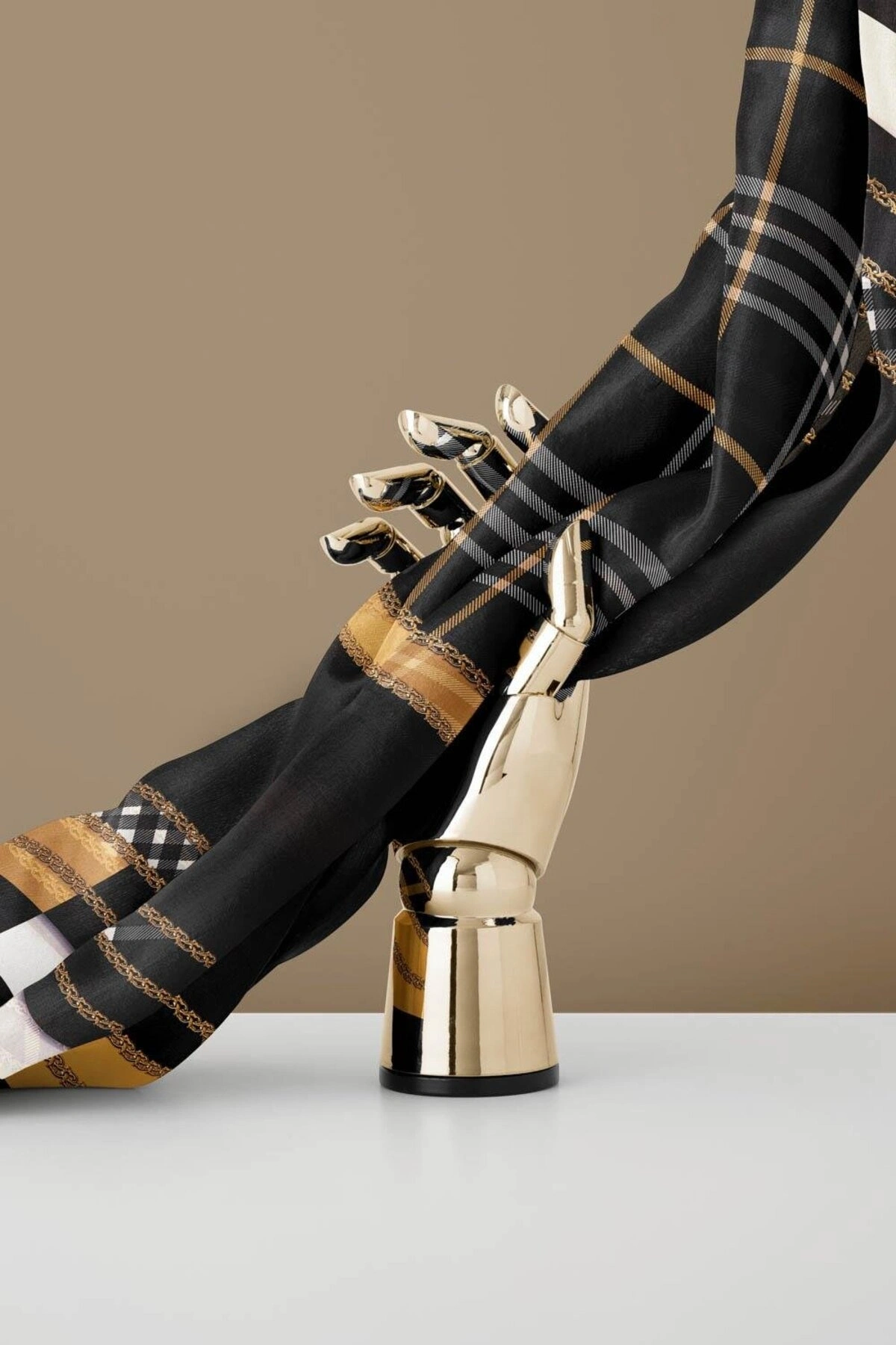 Vissona %100 Twill İpek Ekose Desenli Gold Renkli 90x90 Eşarp Dikim Şekli : El Dikişi