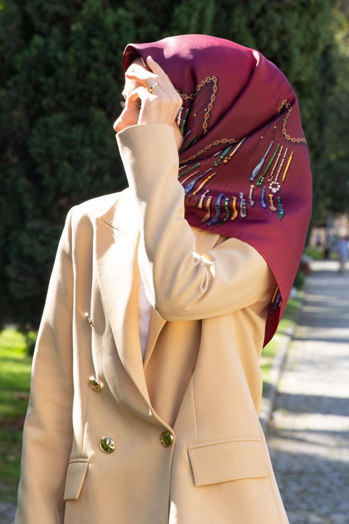 Vissona Tivil İpek Eşarp Koyu Kırmızı Zincir Desen