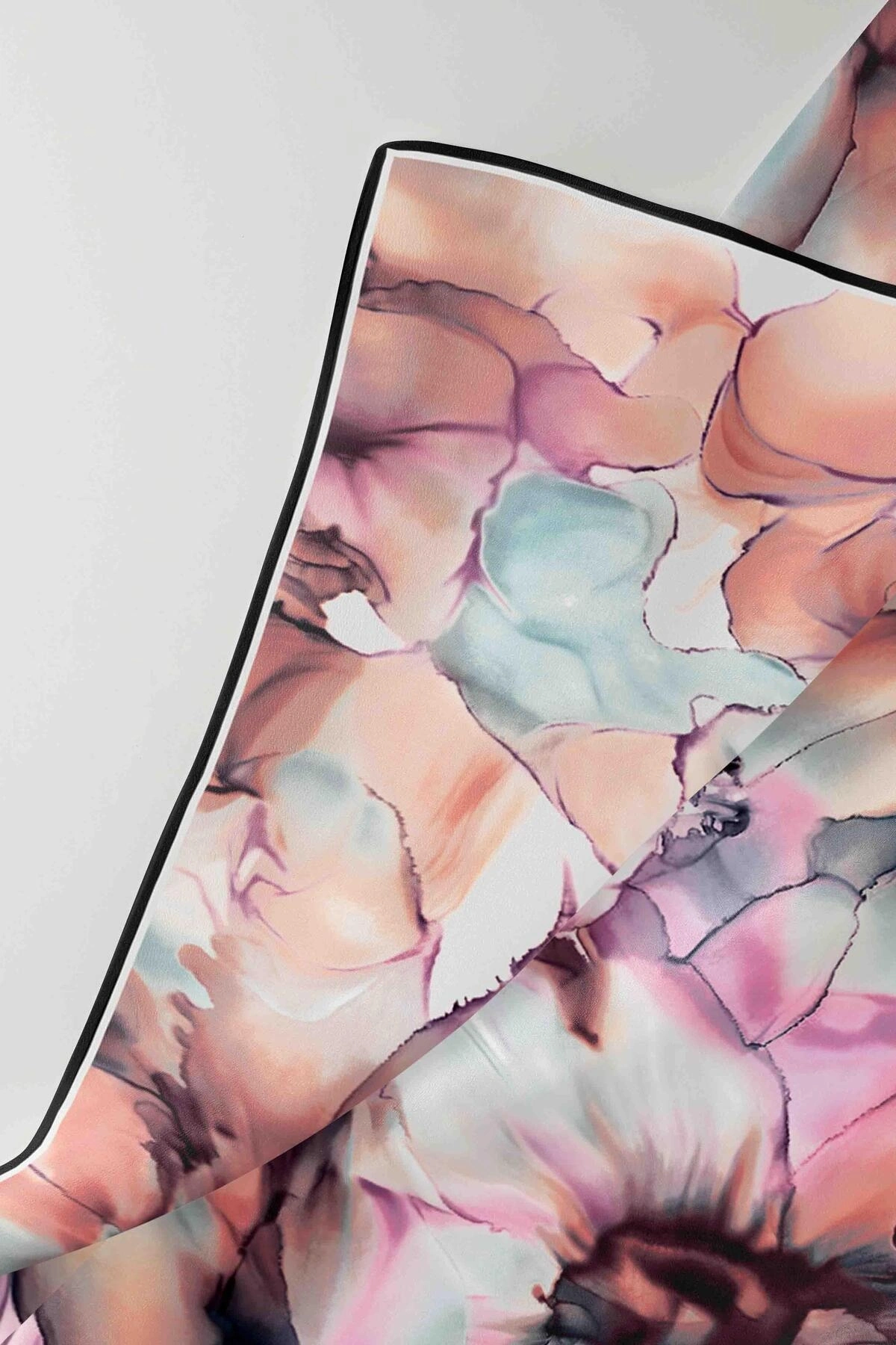 Vissona %100 Twill İpek Dumanlı Çiçek Desenli Somon Renkli 90x90 Eşarp Kenar Dikiş Şekli El Dikişli