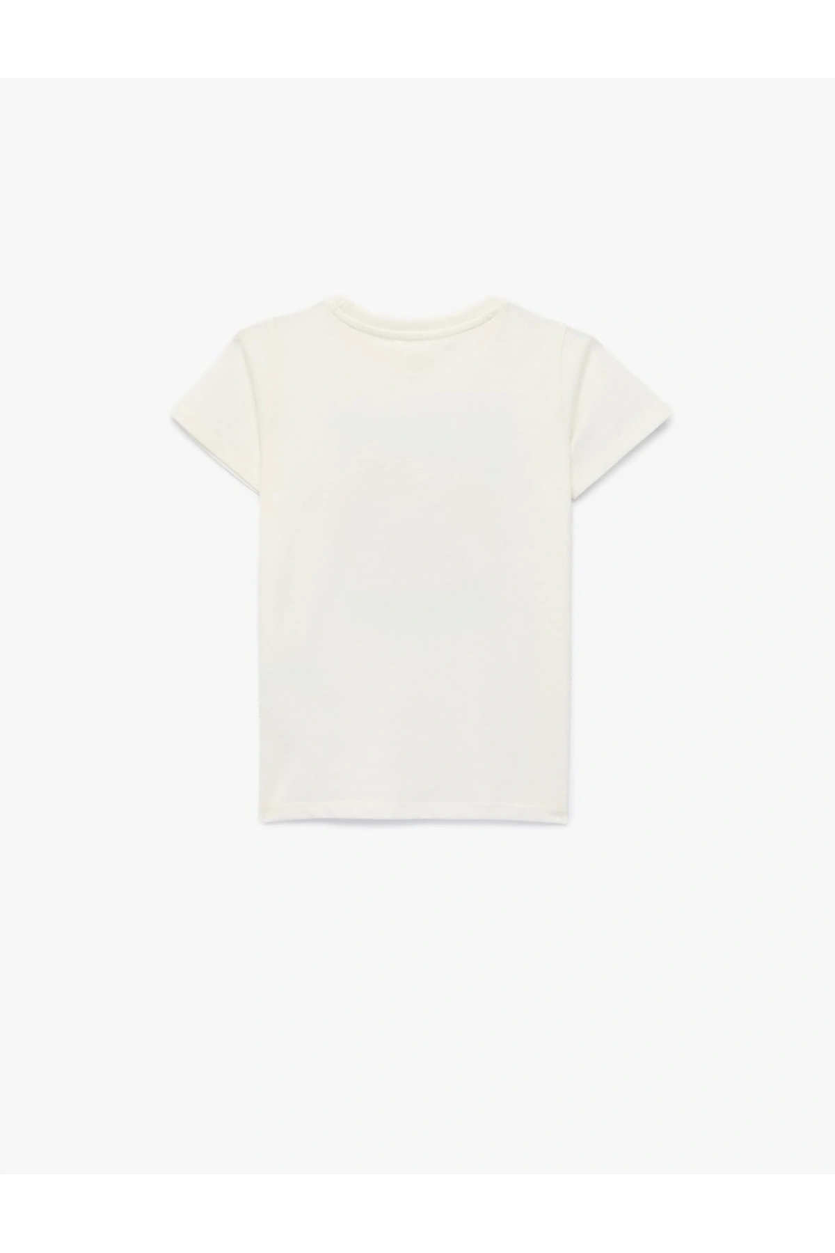 LCW Kids Beyaz Bisiklet Yaka Baskılı Kız Çocuk Tişört