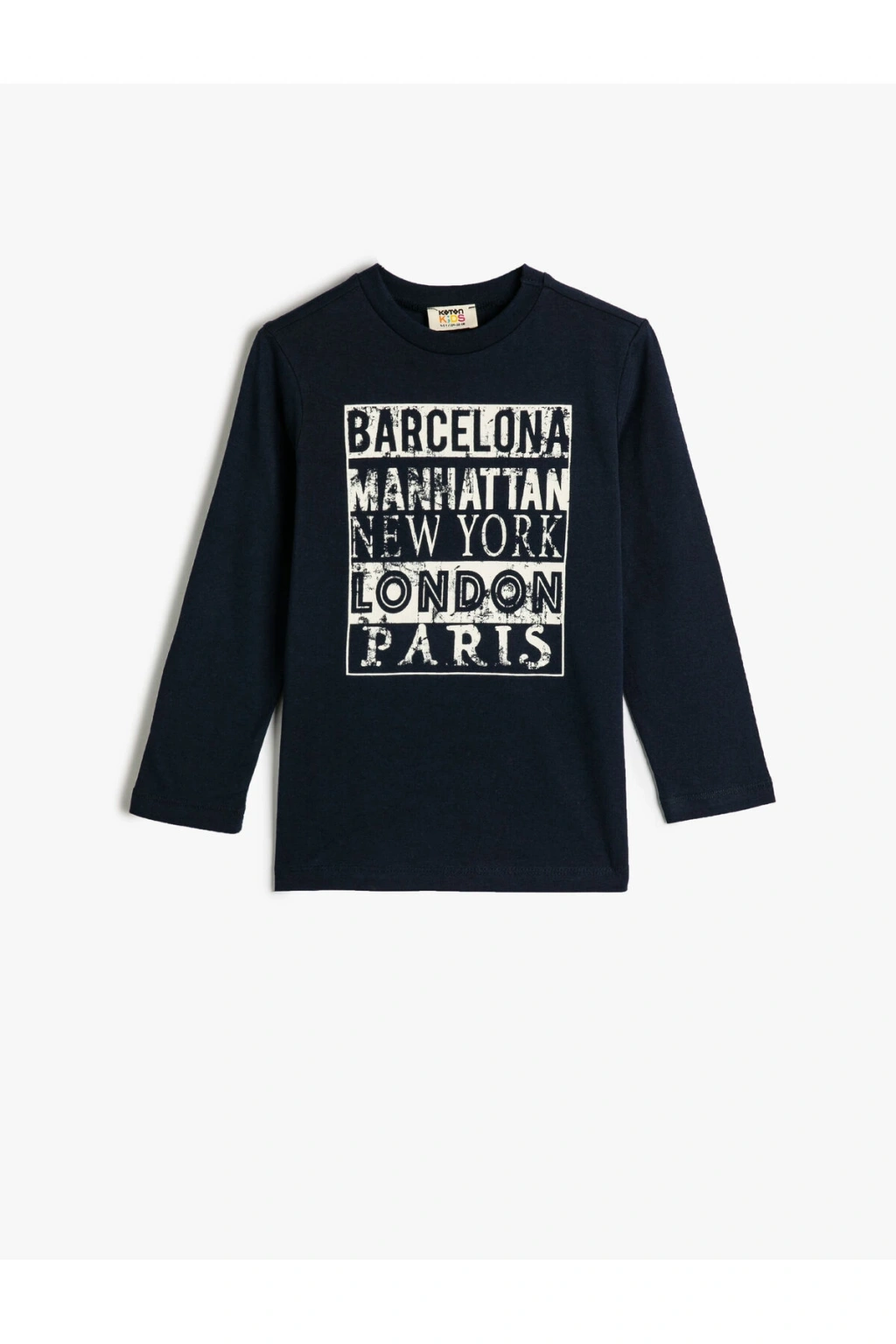 Koton erkek çocuk tişört modelleri şıklığı konforla bir araya getirerek keyifleri ikiye katlıyor.; Uzun kollu, bisiklet yaka, slogan baskılı, pamuklu tişört ile çocuklar şık ve rahat kombinler oluştururken çok eğlenecek! | Model Boy: 1 | Model Kalça: 1 | Model Üst: 1 | Model Bel: S | Model Göğüs: 1 | Model Jean: 32/34