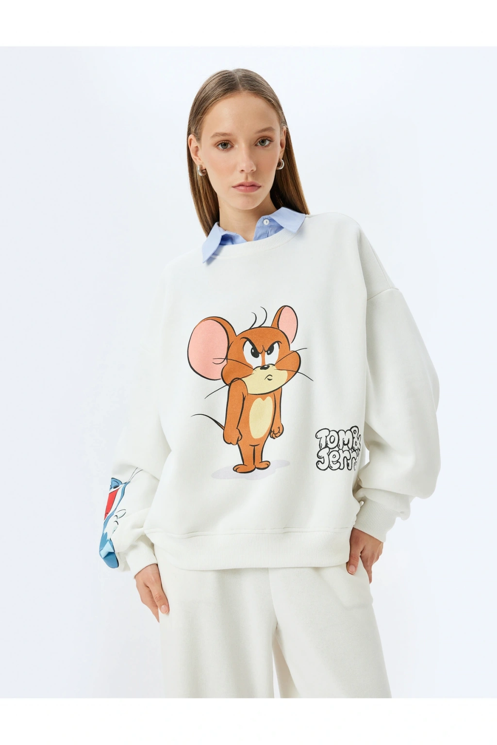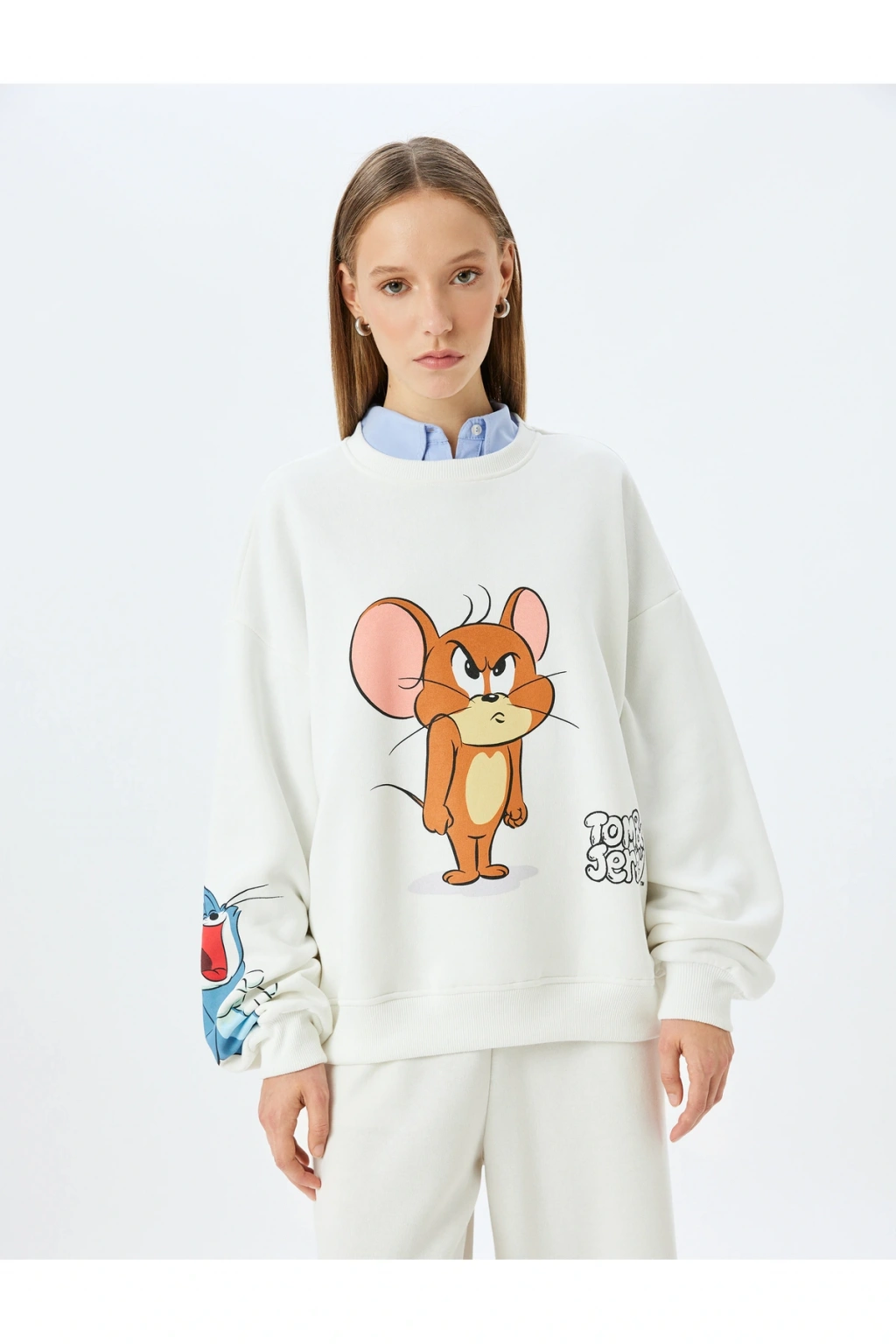 Sevilen karakterler sweatshirtlerde! Tom ve Jerry lisanslı, bisiklet yaka, şardonlu, rahat kalıp sweatshirt ile çok havalı görüneceksiniz.; | Model Boy: 176 | Model Kalça: 88 | Model Üst: 57 | Model Bel: S | Model Göğüs: 77 | Model Jean: 27/32