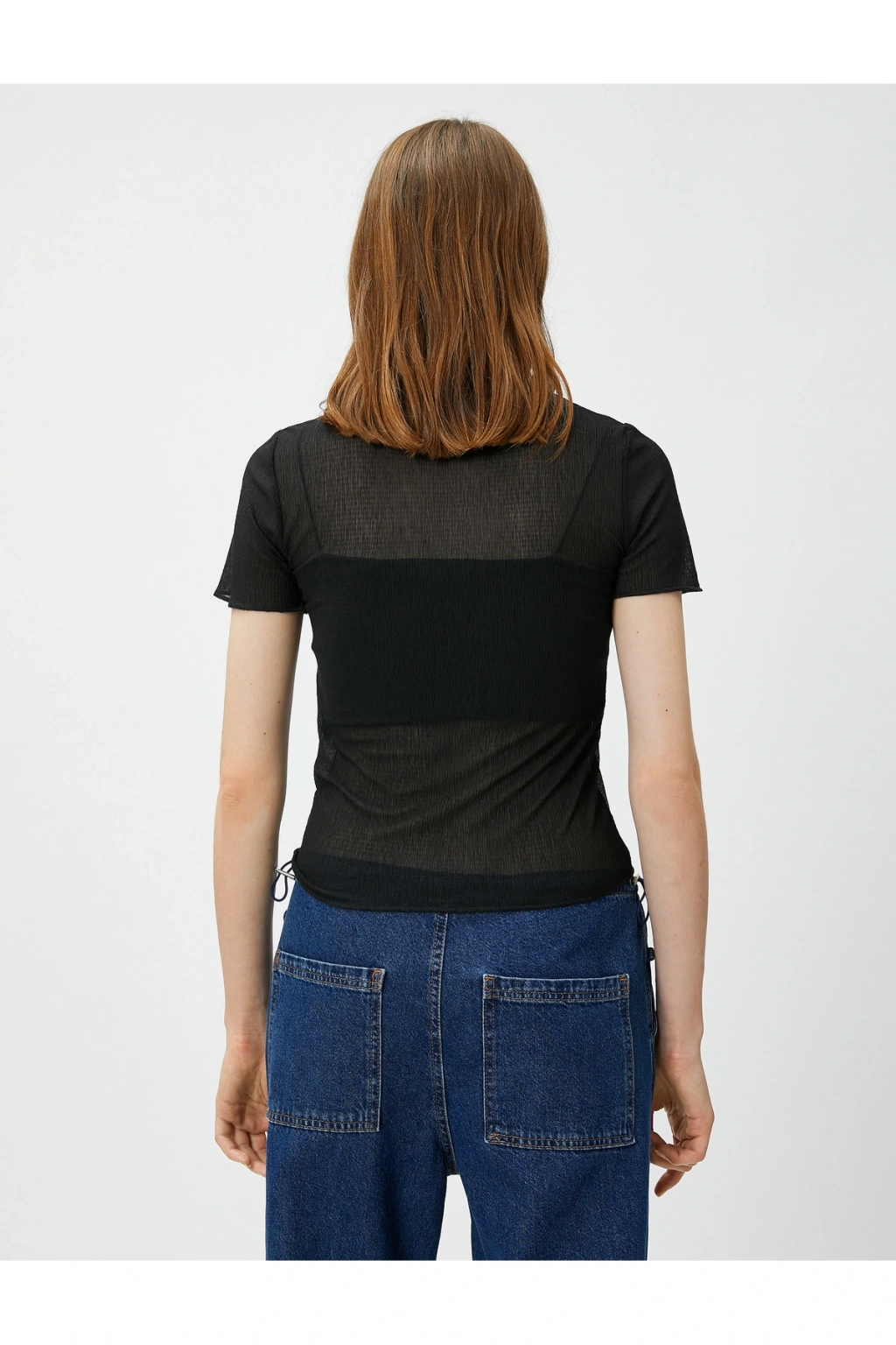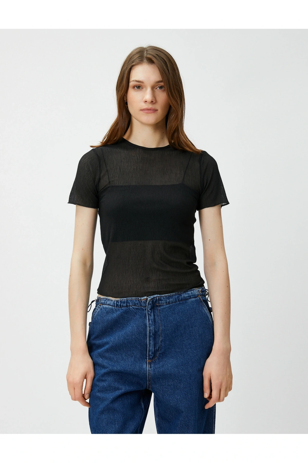 Konfor ve şıklığı bir araya getiren kısa kollu, bisiklet yaka, transparan tişörtü üzerinizden çıkarmak istemeyeceksiniz! | Model Boy: 177 | Model Kalça: 89 | Model Üst: 61 | Model Bel: S | Model Göğüs: 80 | Model Jean: 27/32