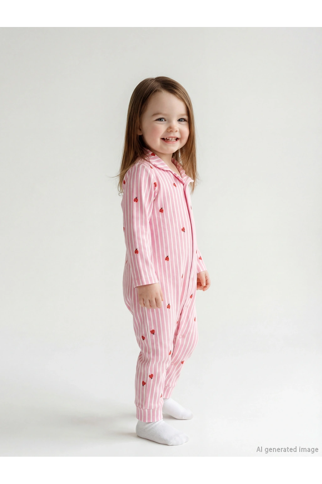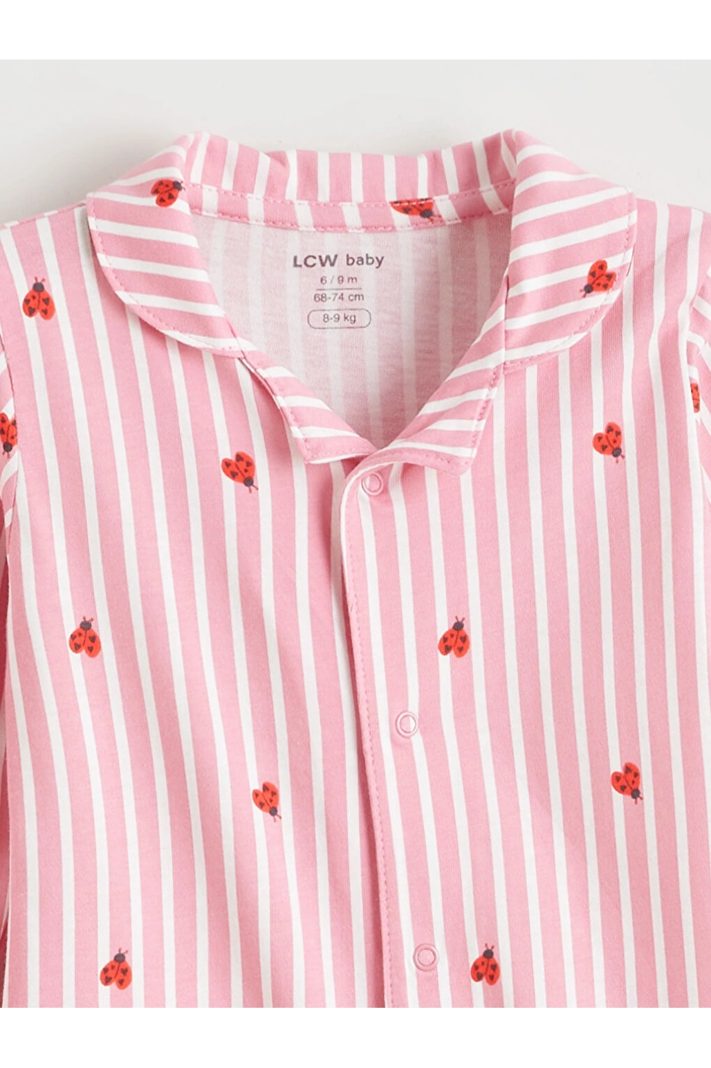 LCW baby Ekru Gömlek Yaka Uğur Böceği Baskılı Kız Bebek Tulum