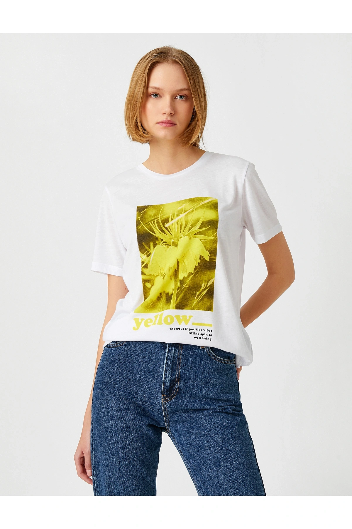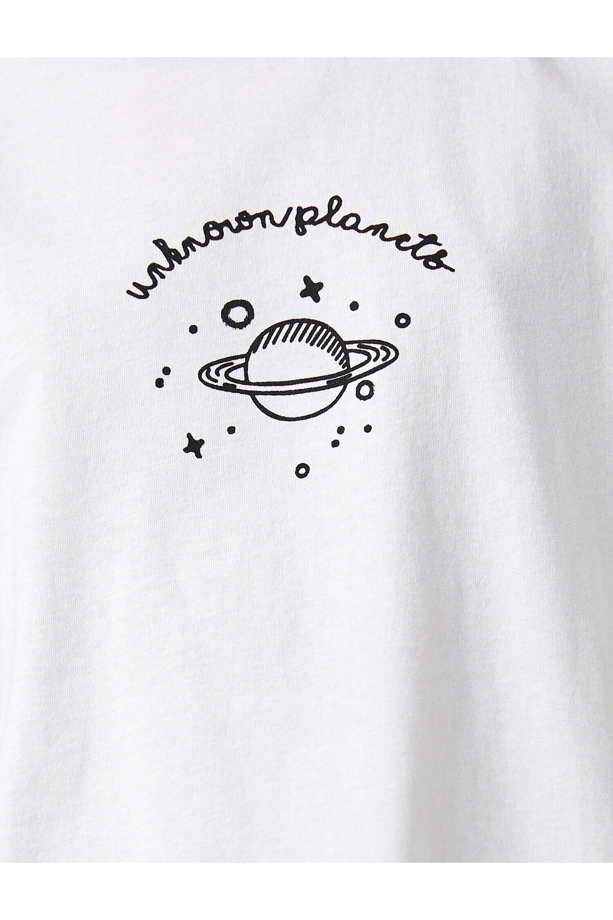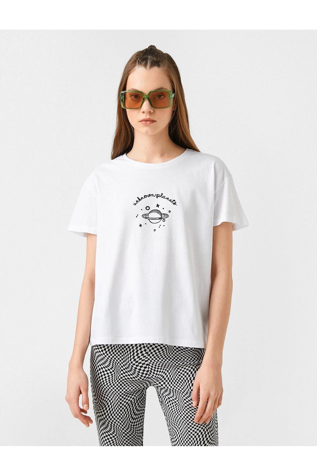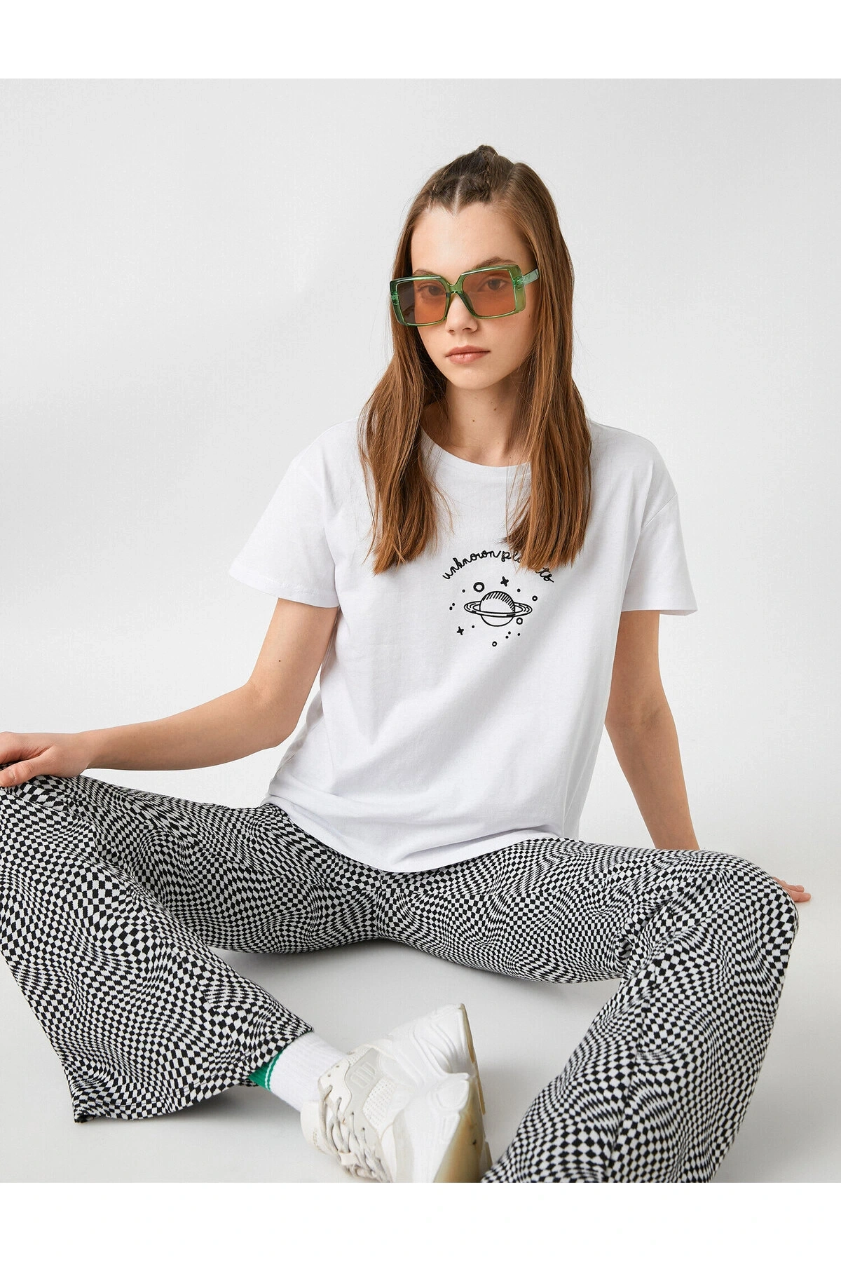 Slogan Baskılı Kısa Kollu Tişört Pamuklu