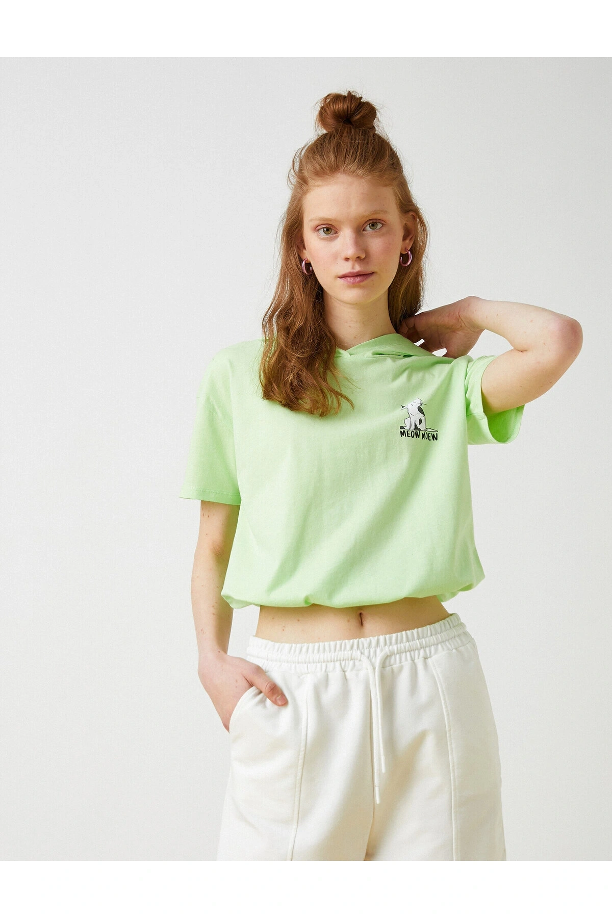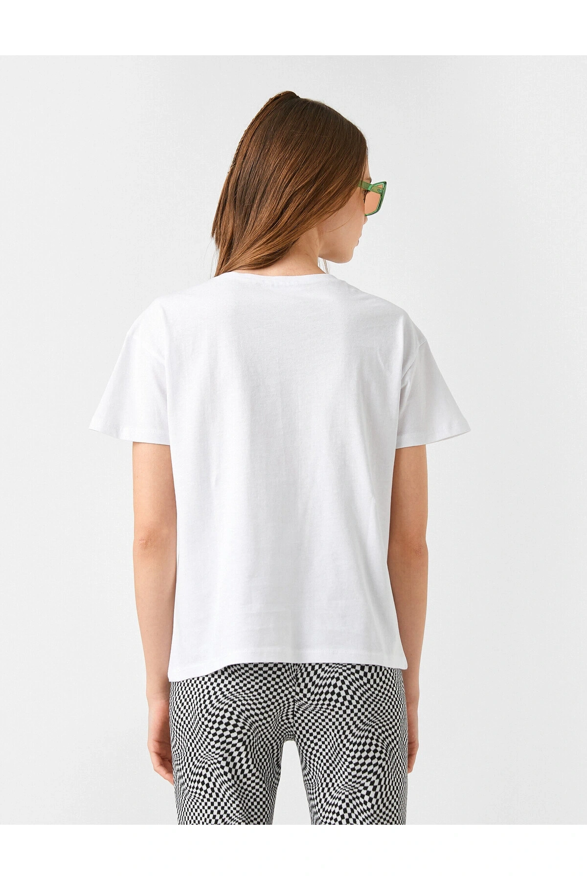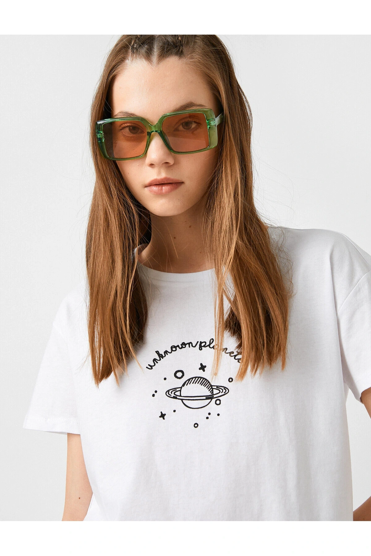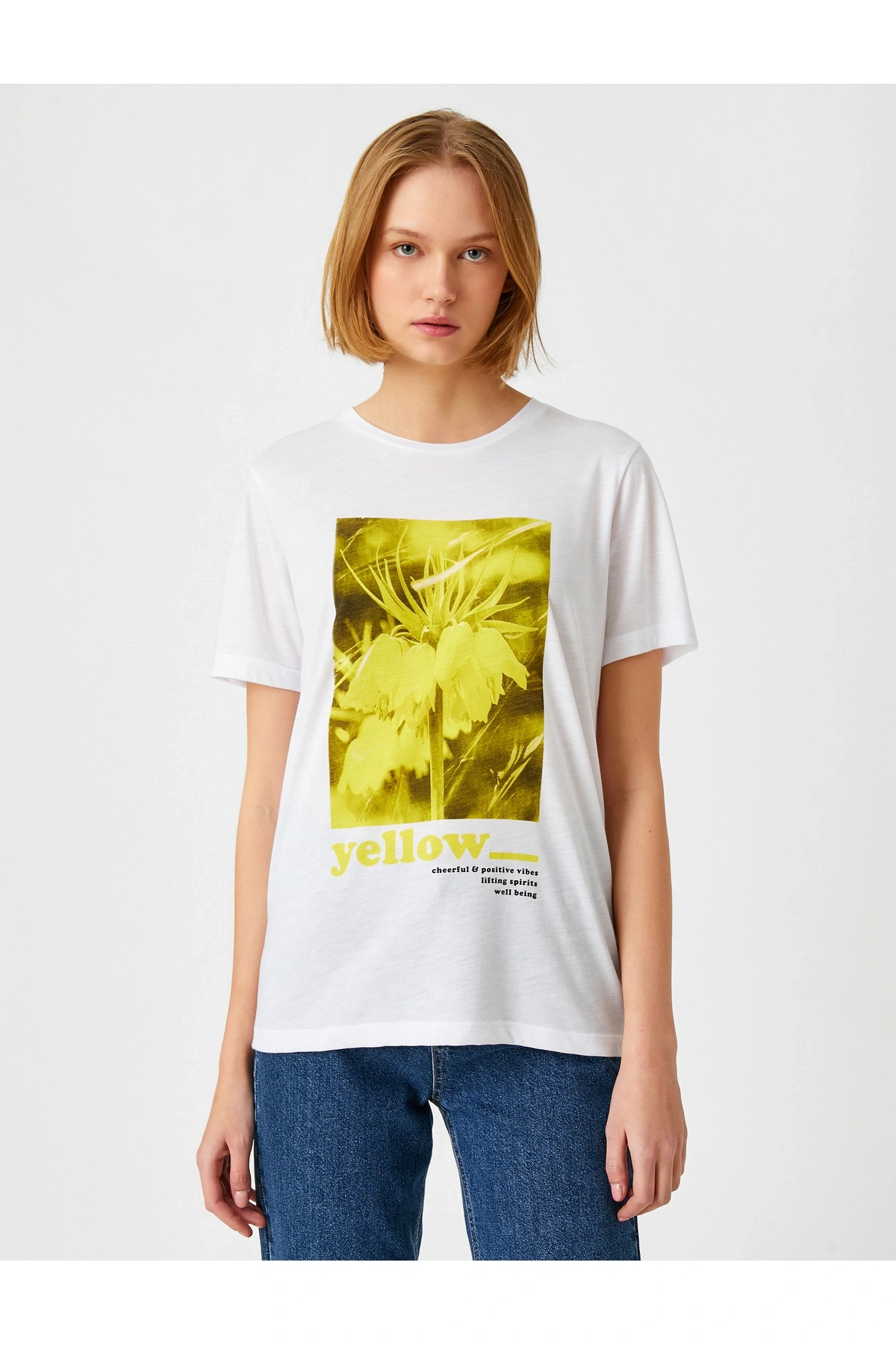 Slogan Baskılı Kısa Kollu Tişört Pamuklu