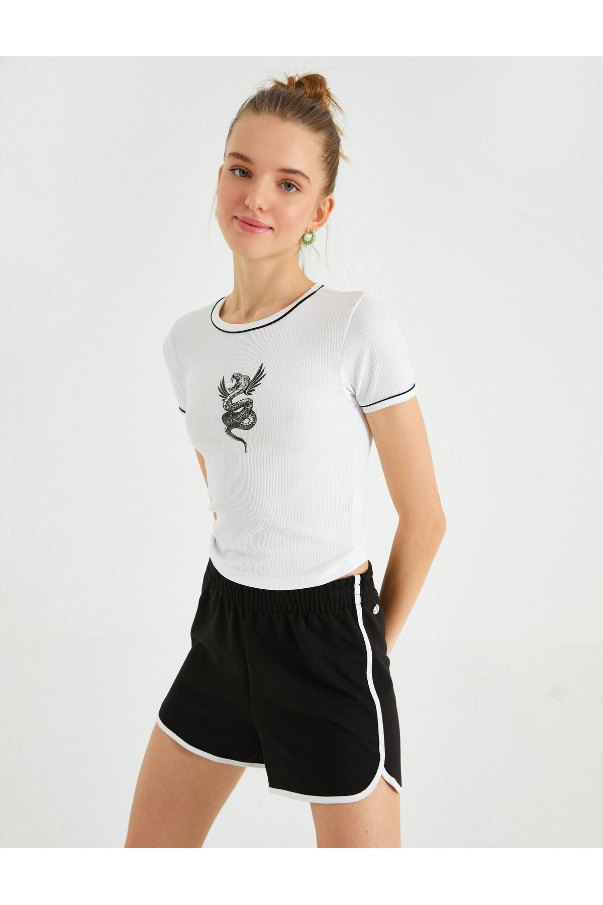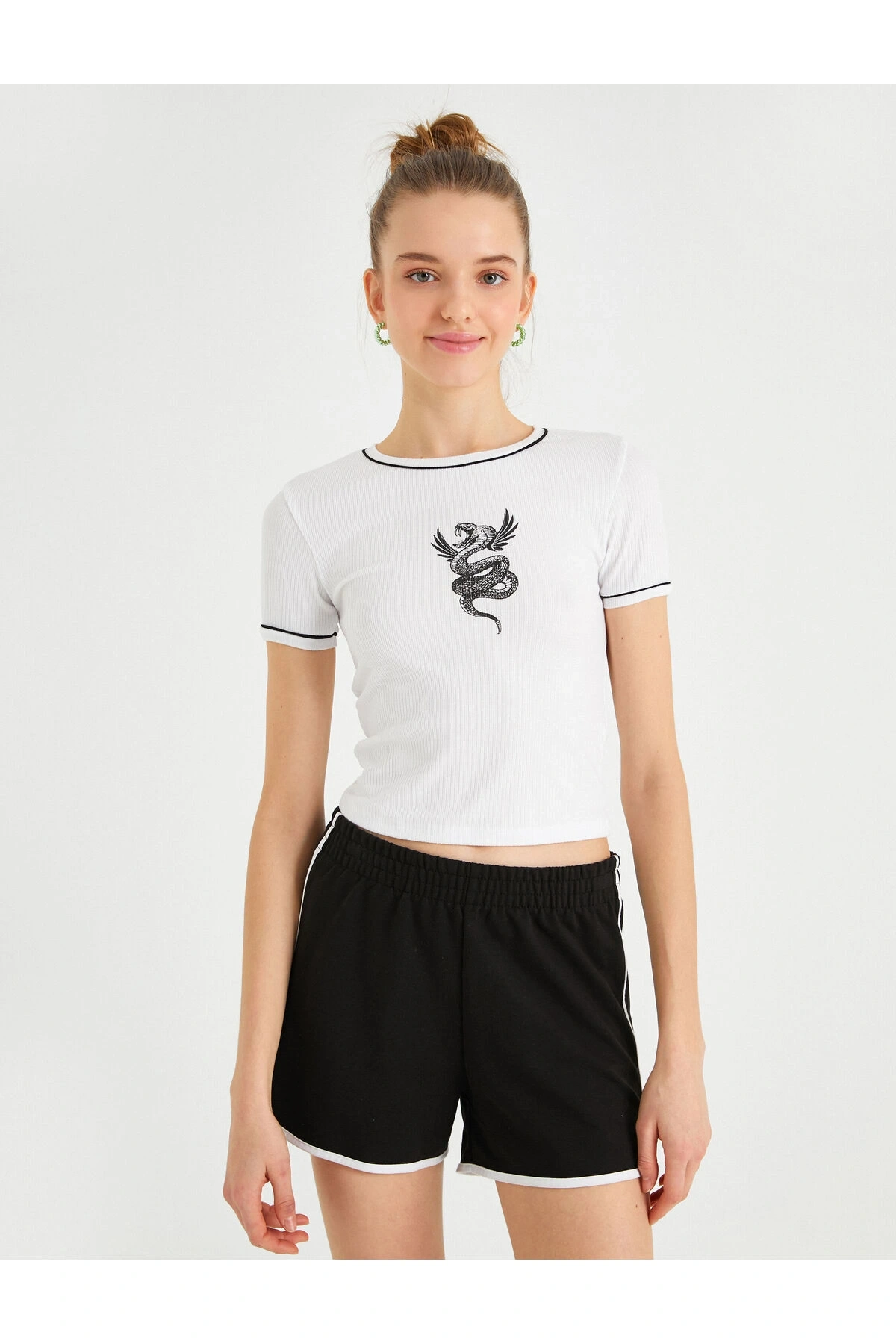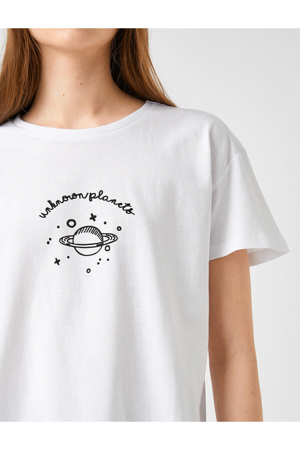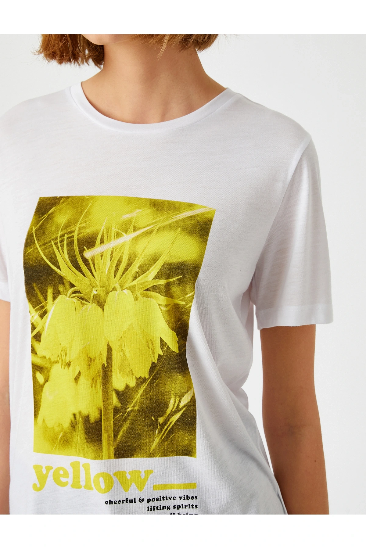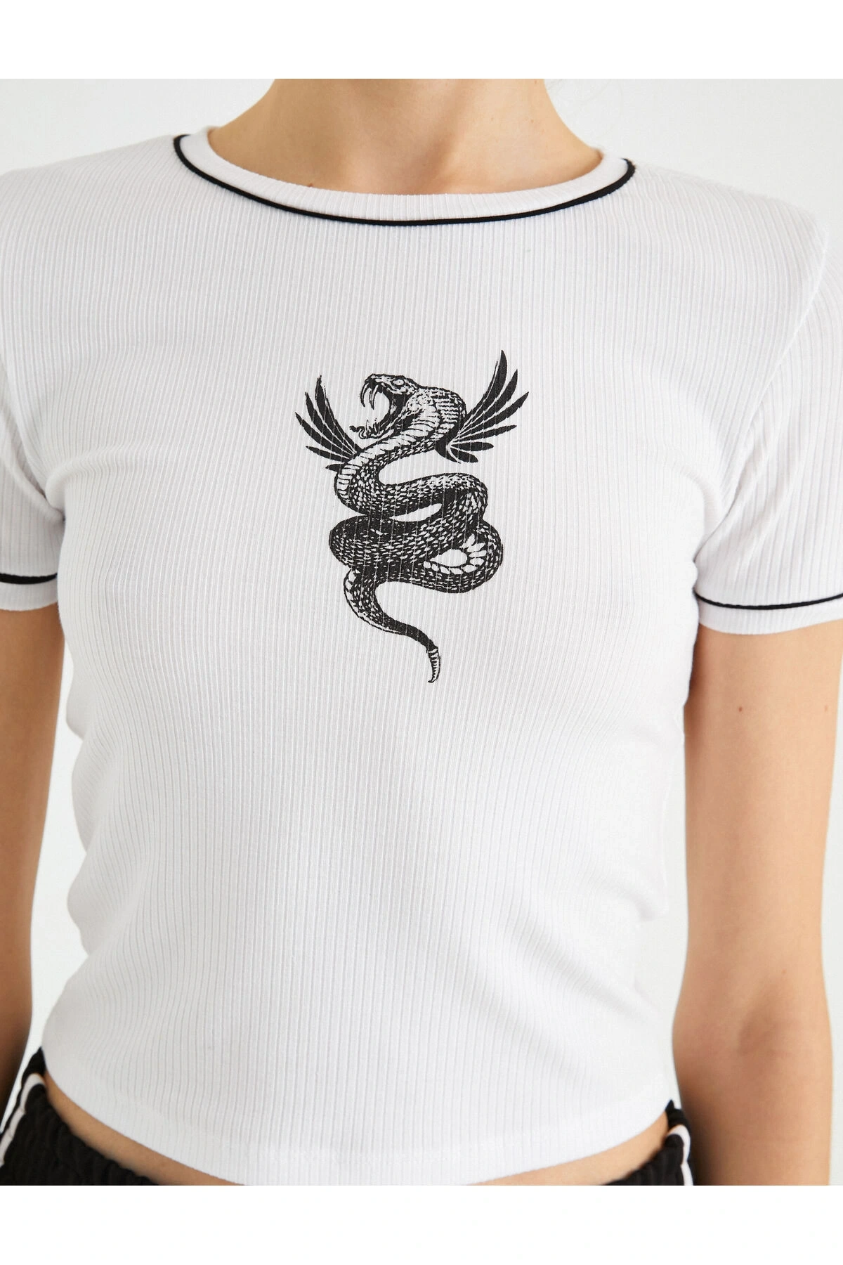 Bisiklet Yaka Kısa Kollu Baskılı Tişört