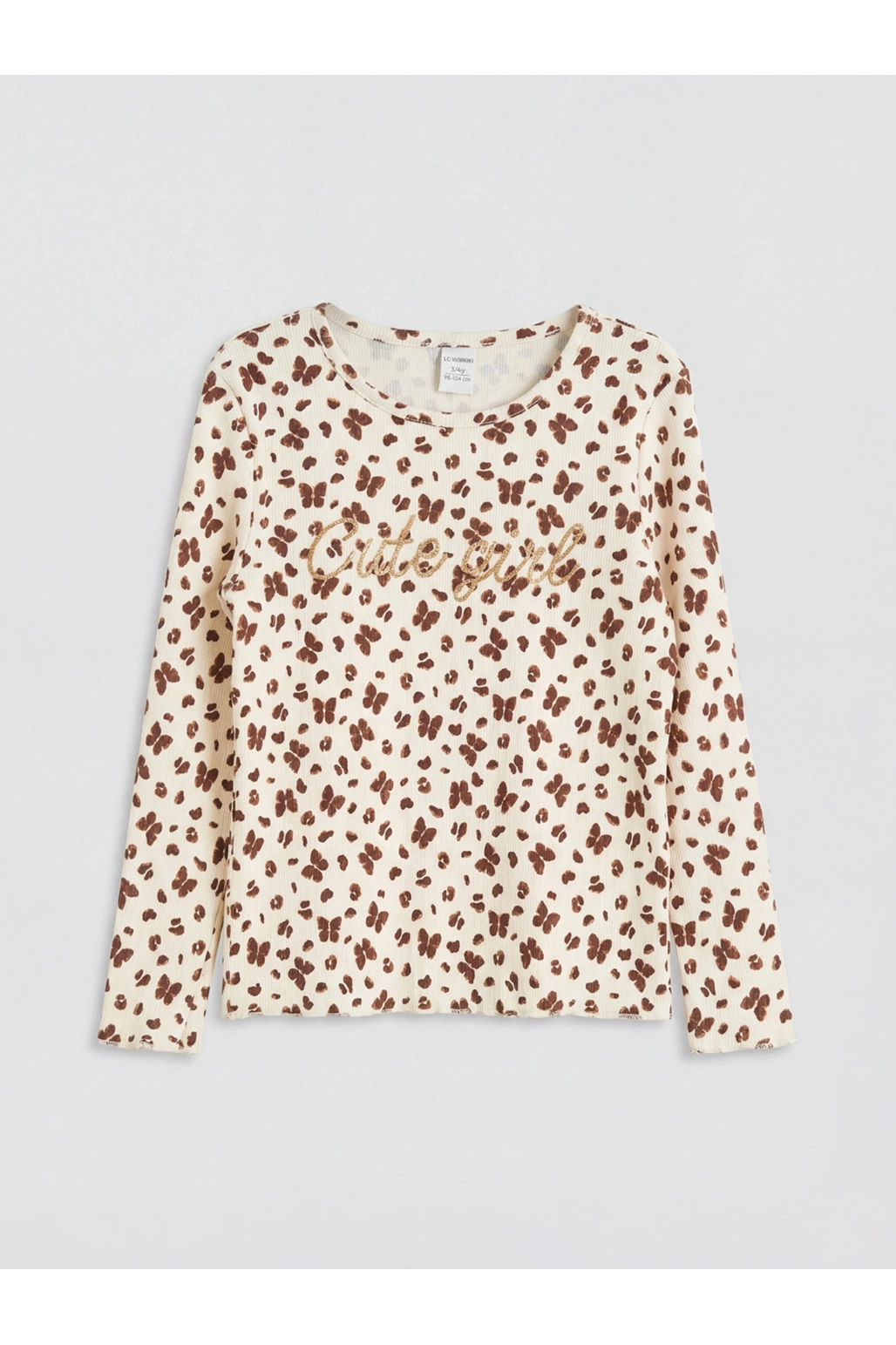 LCW Kids Ekru Bisiklet Yaka Baskılı Kız Çocuk Tişört