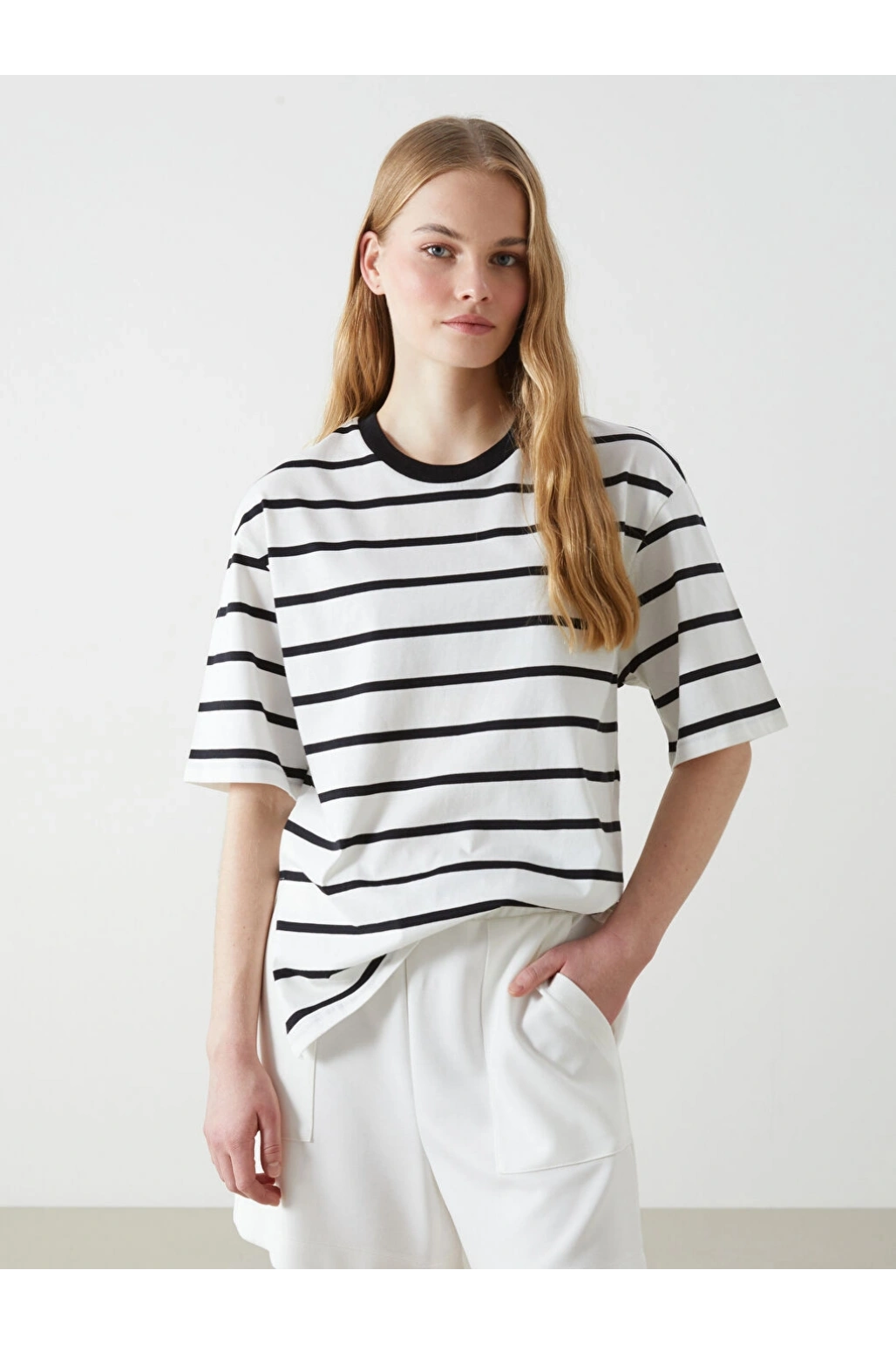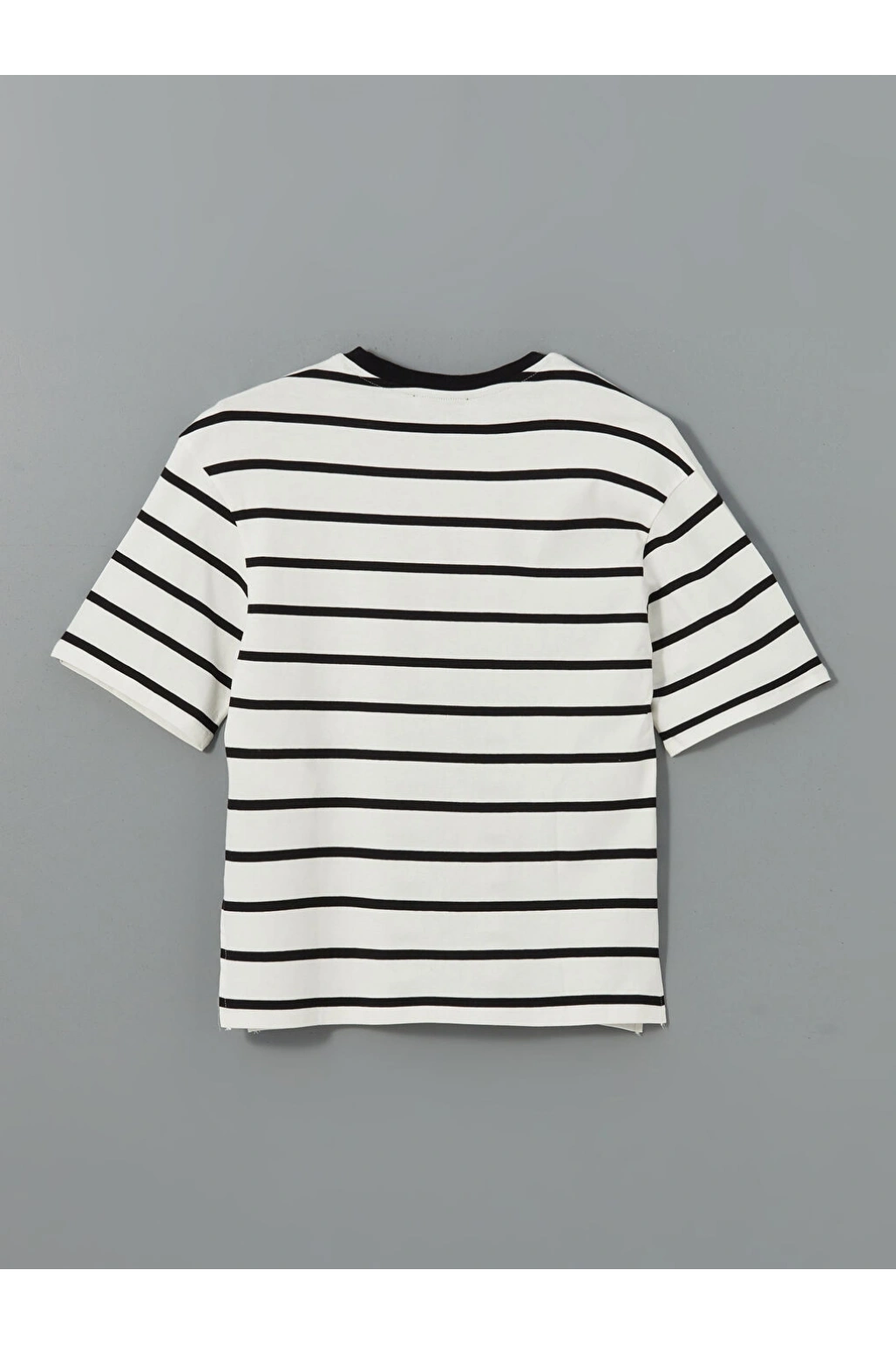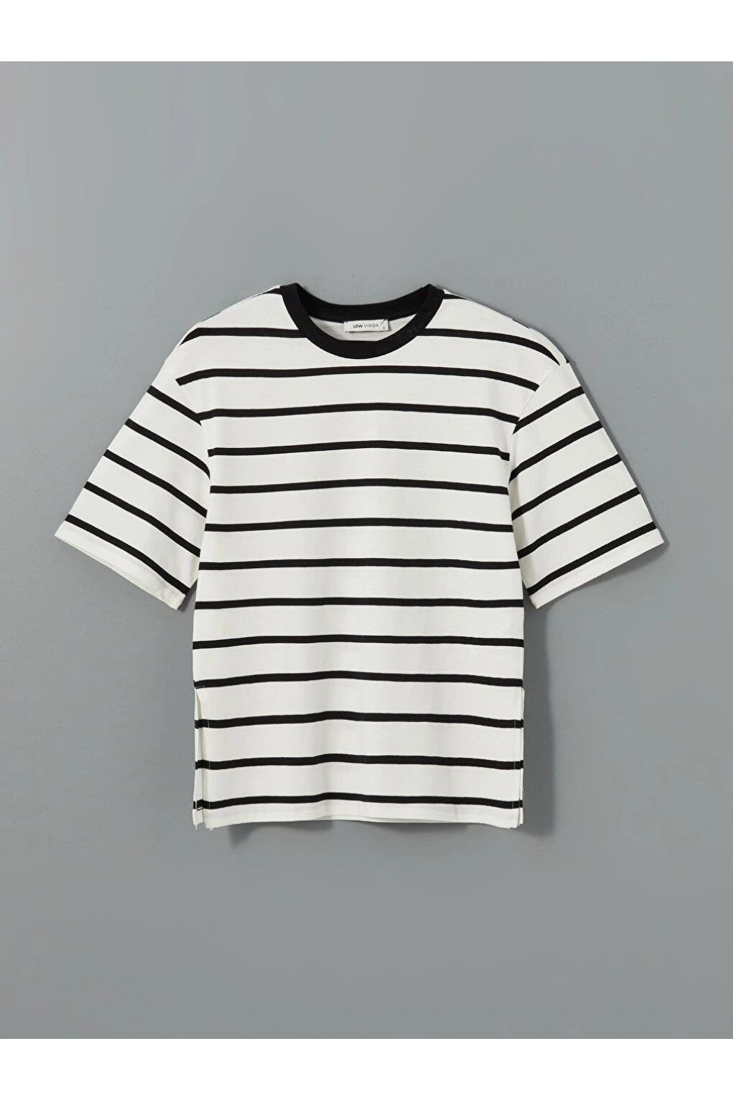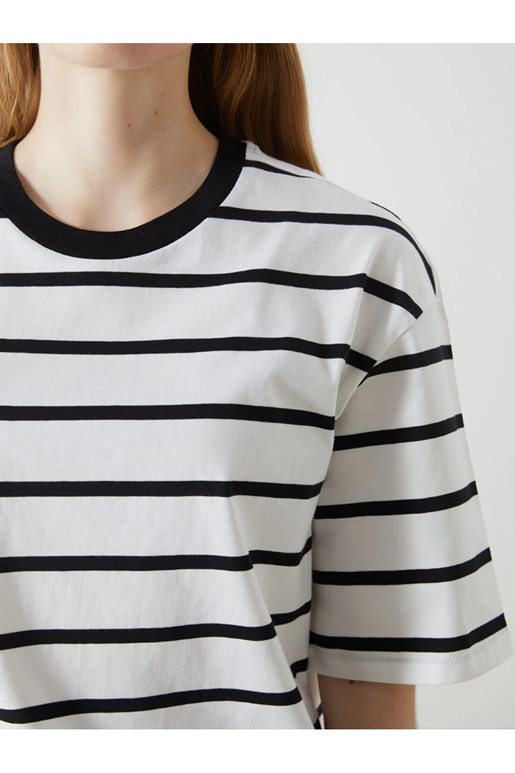 LCW Vision Siyah Bisiklet Yaka Çizgili Kadın Tişört