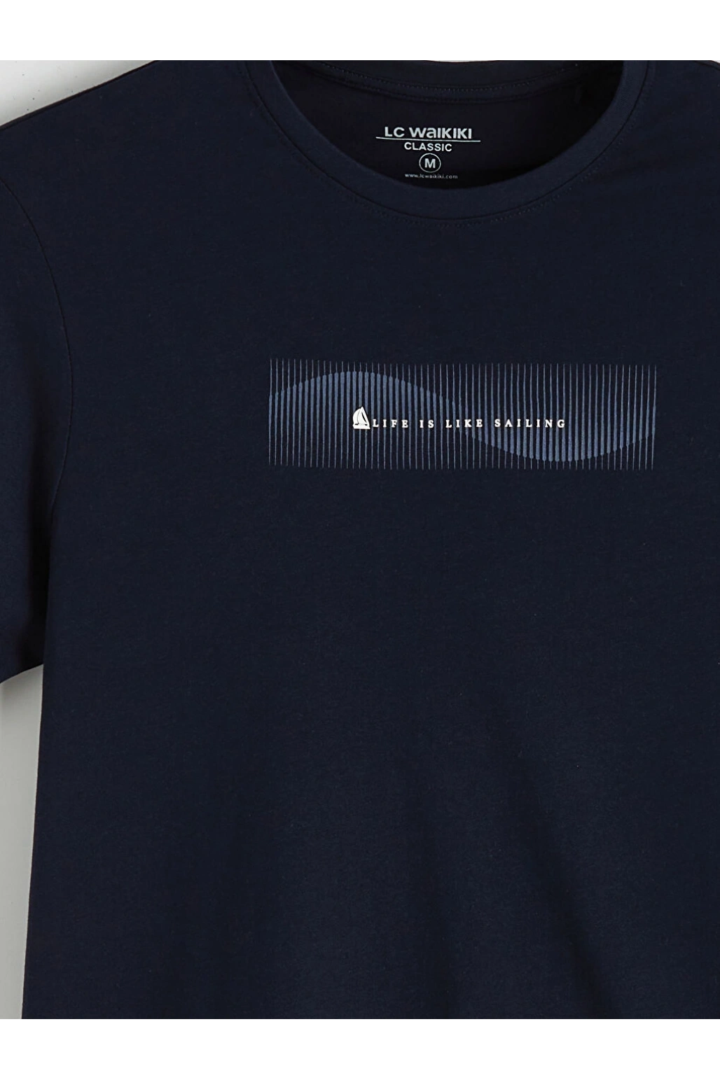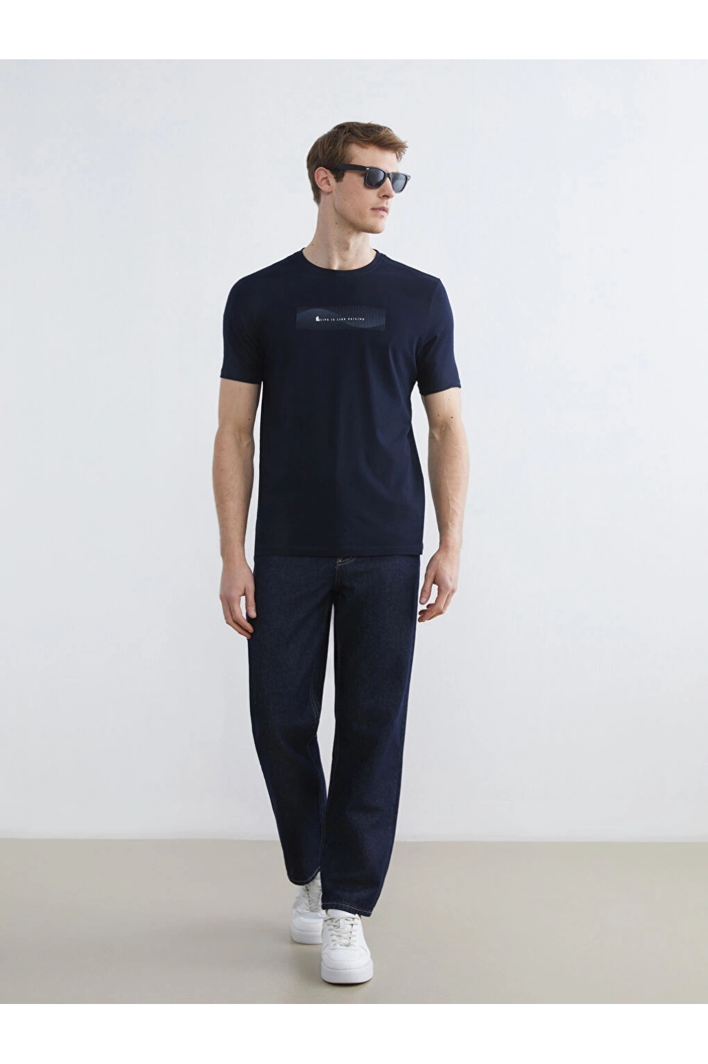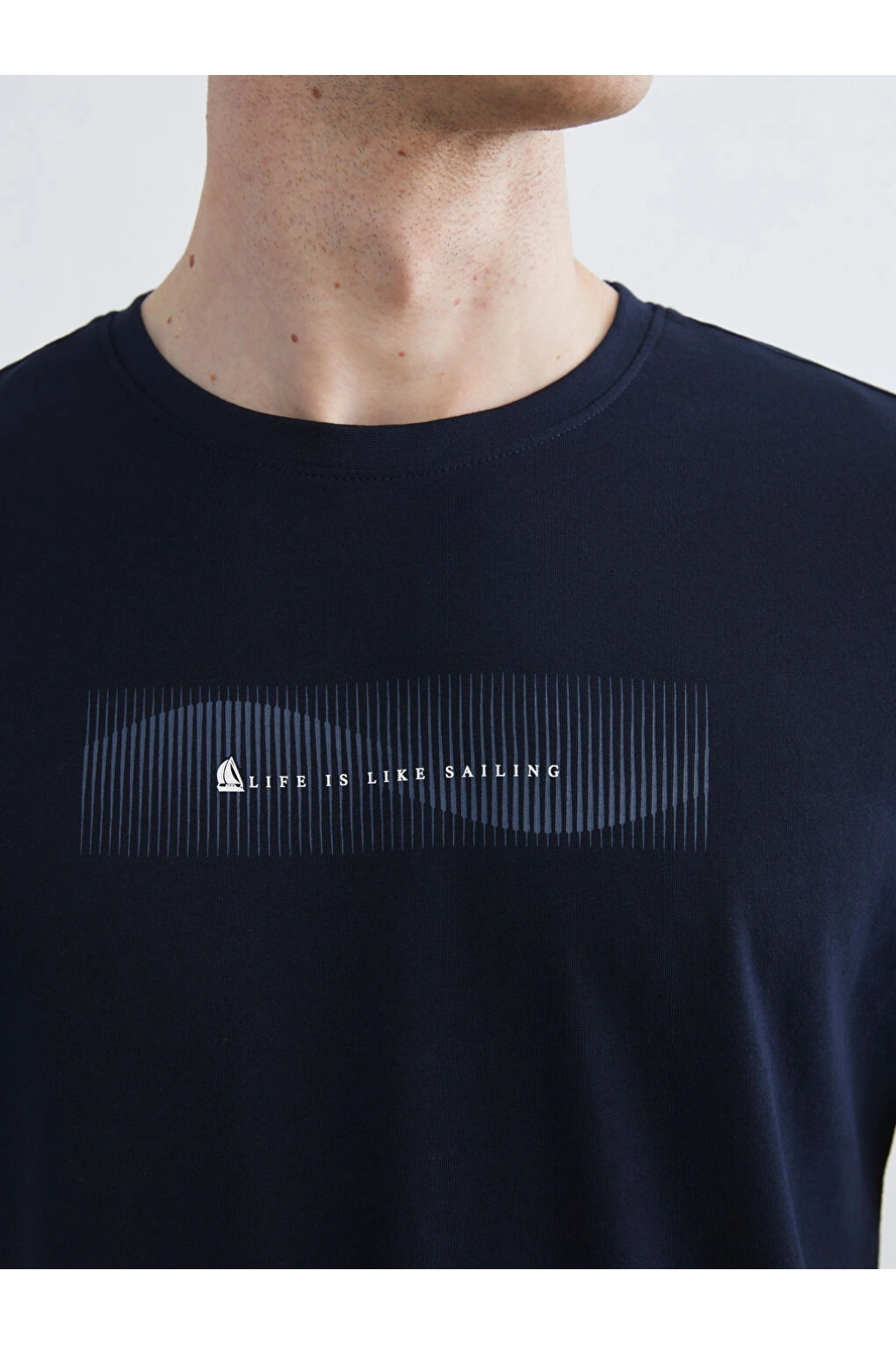 CWAIKIKI Classic Lacivert Bisiklet Yaka Baskılı Penye Erkek Tişör