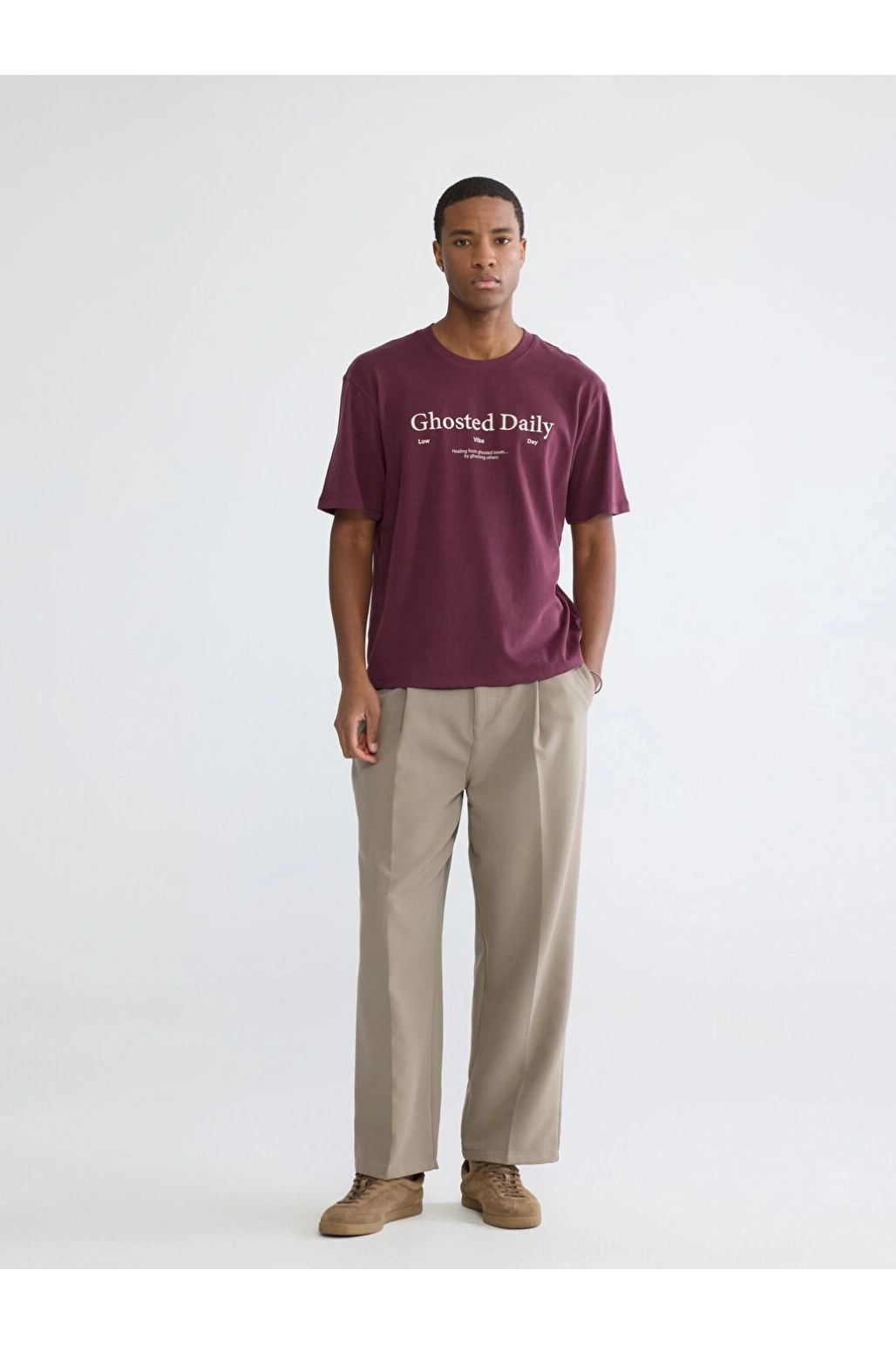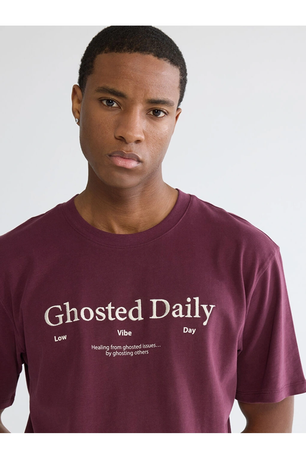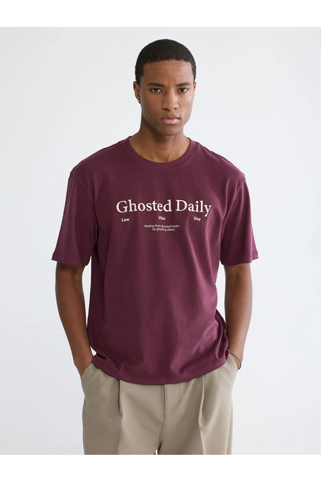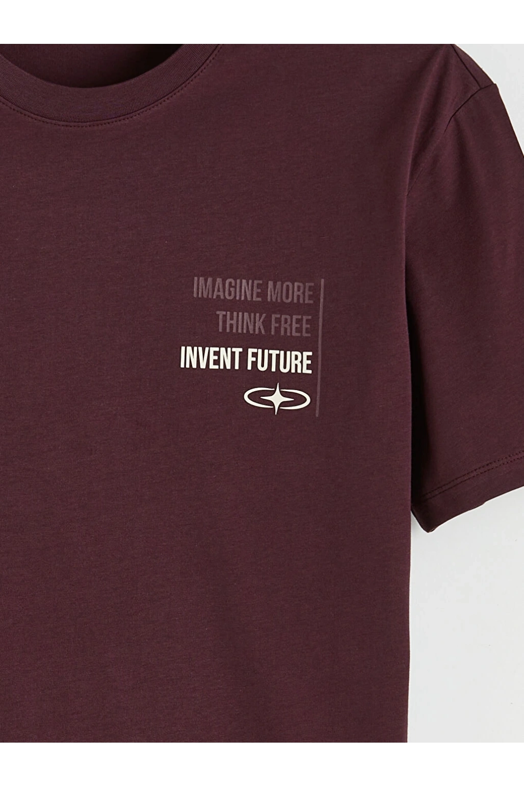 XSIDE Bordo Bisiklet Yaka Baskılı Penye Erkek Tişört