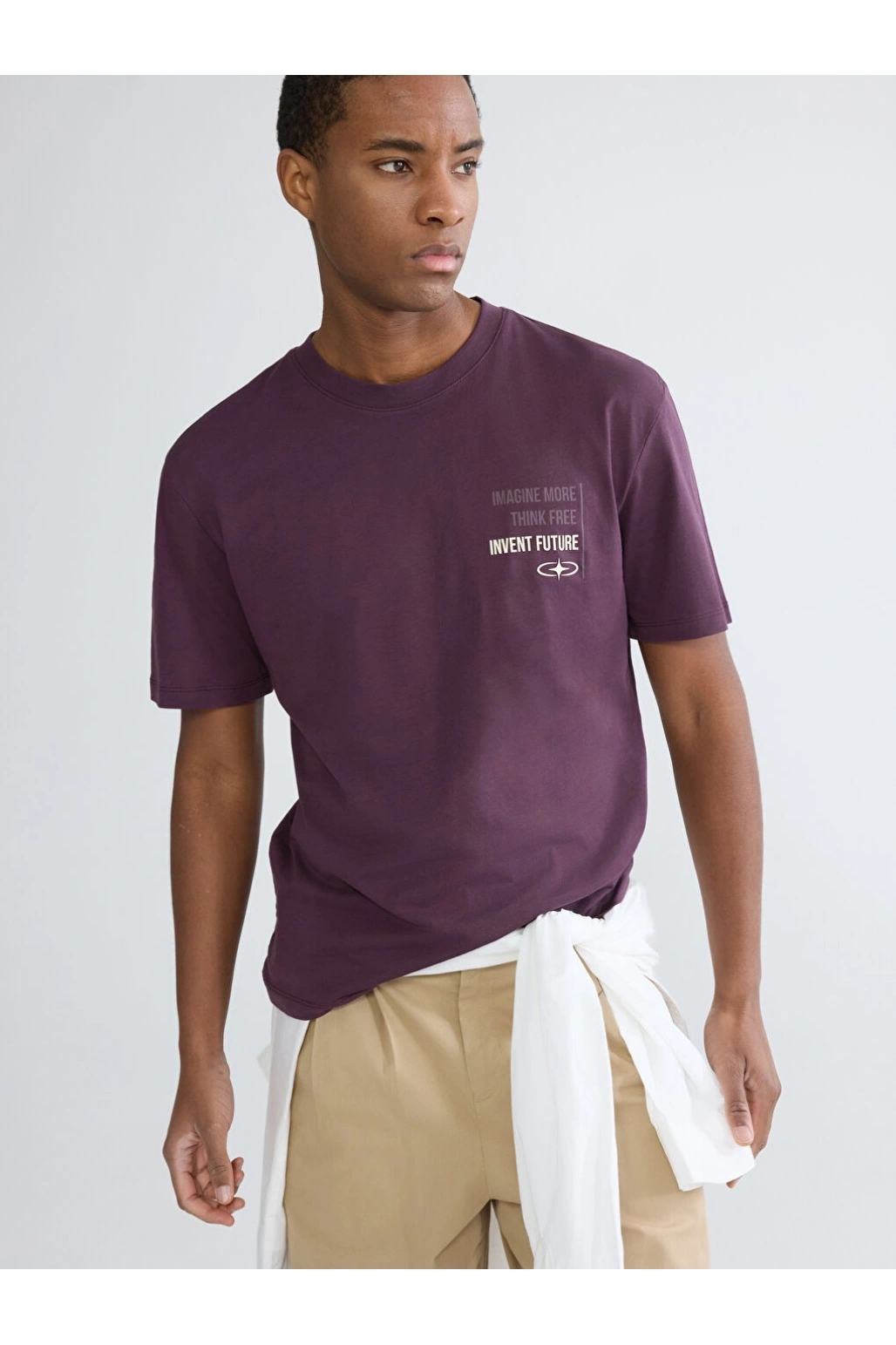 XSIDE Mürdüm Bisiklet Yaka Baskılı Penye Erkek Tişört