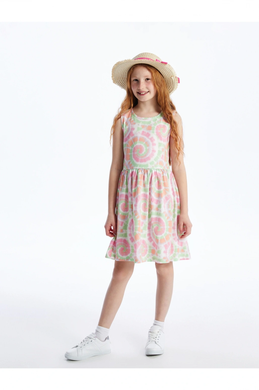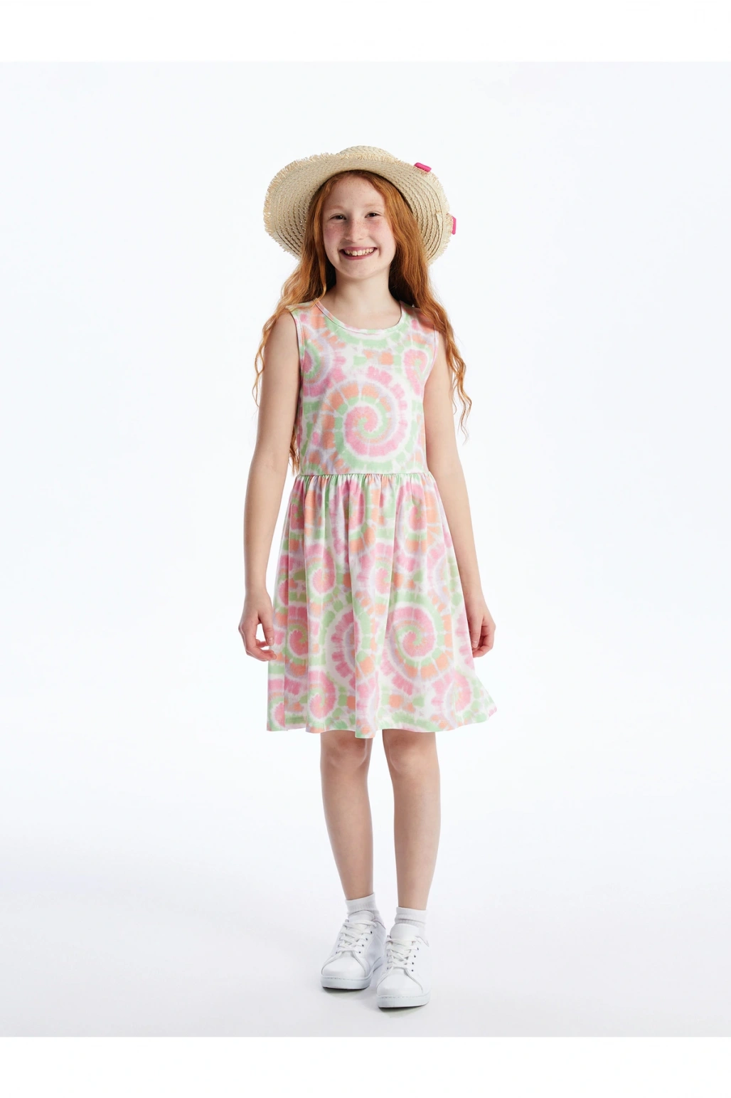 Bisiklet Yaka Batik Desenli Kız Çocuk Elbise