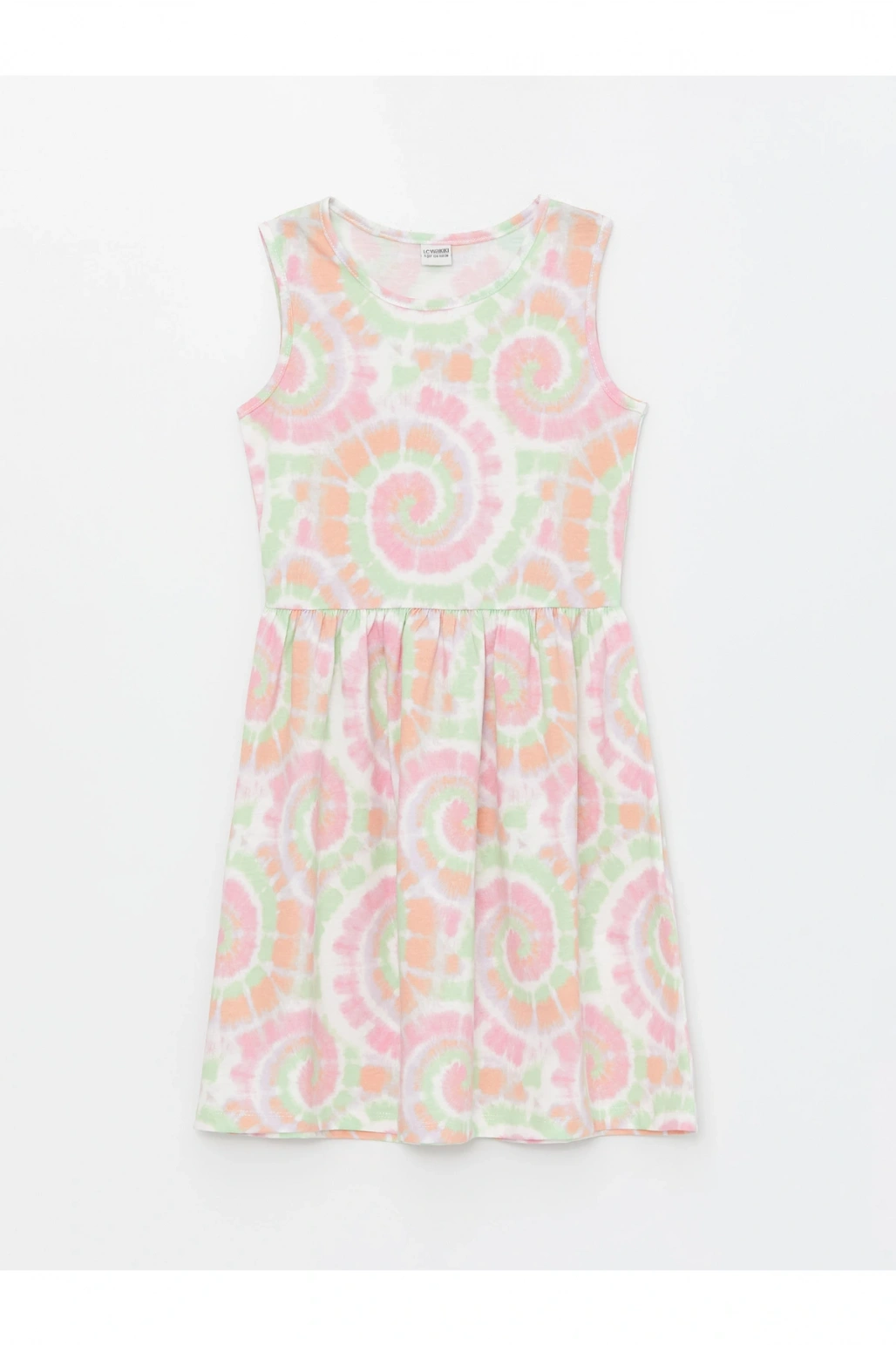 LCW Kids Bisiklet Yaka Desenli Kız Çocuk Elbise 2'li