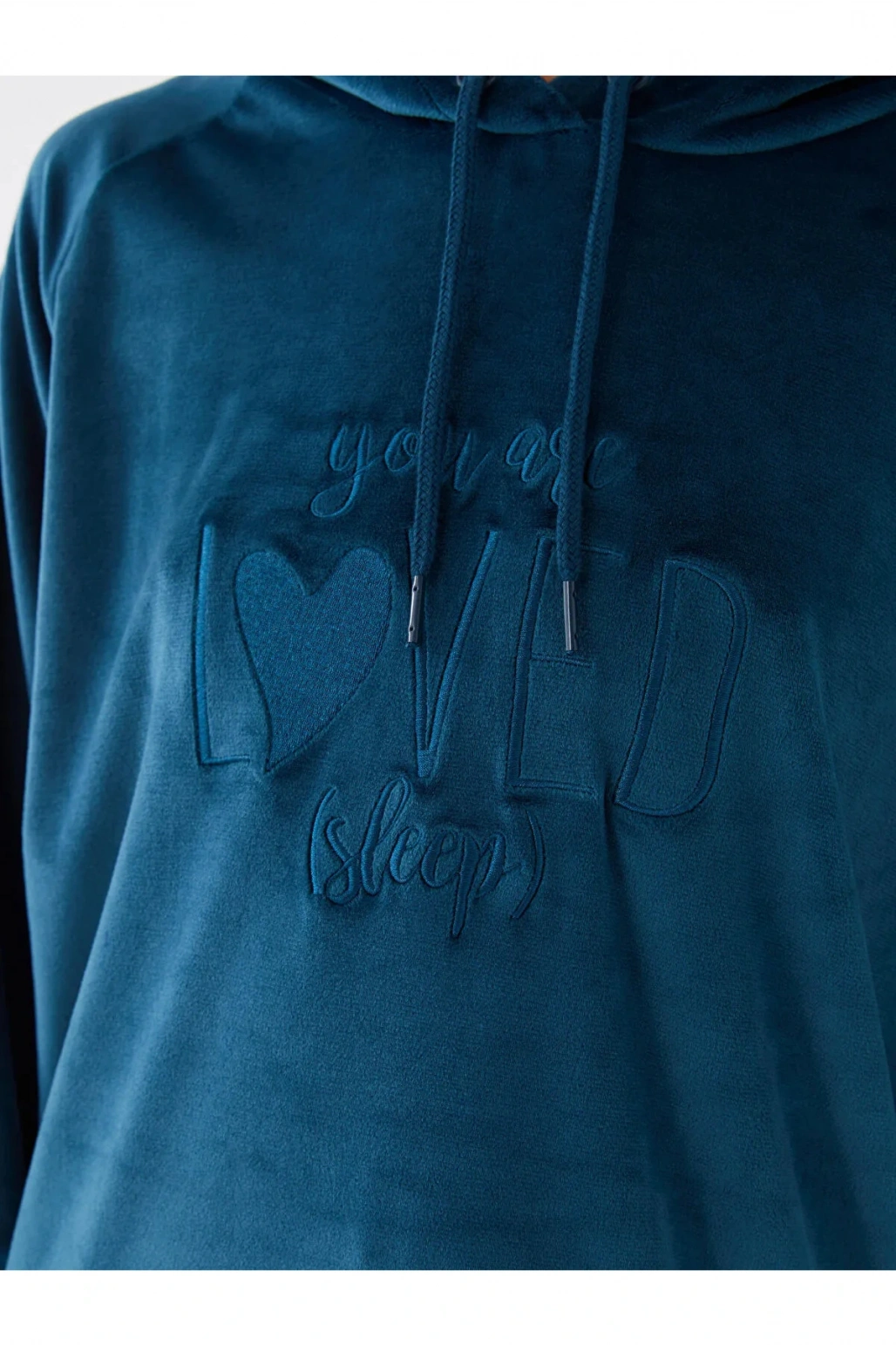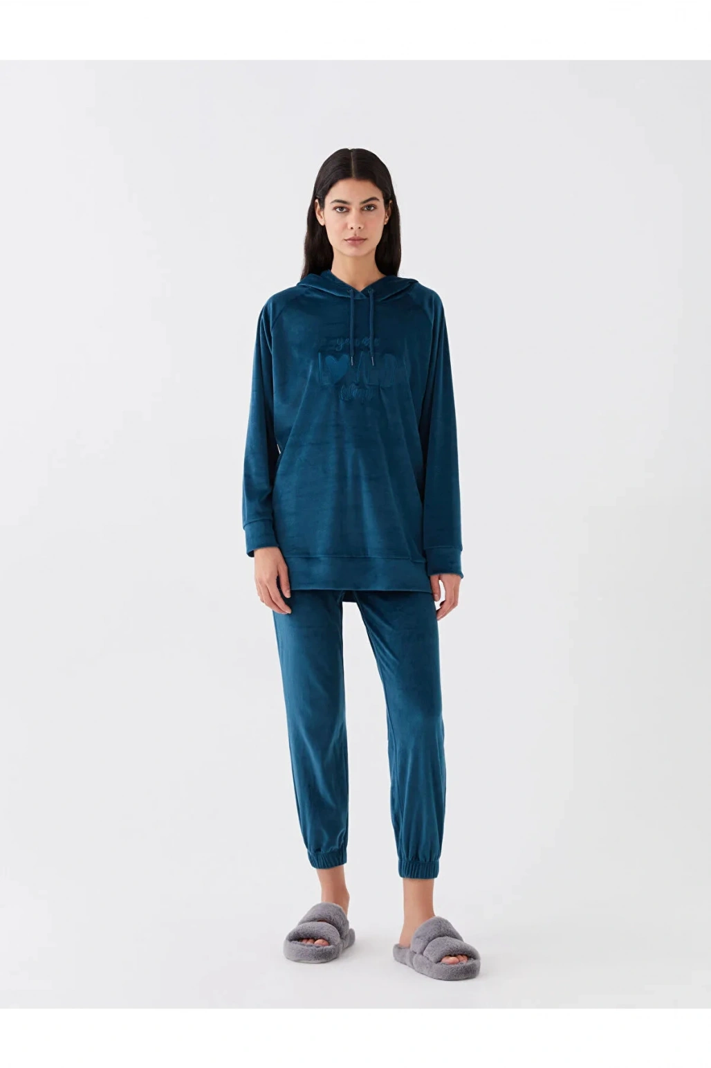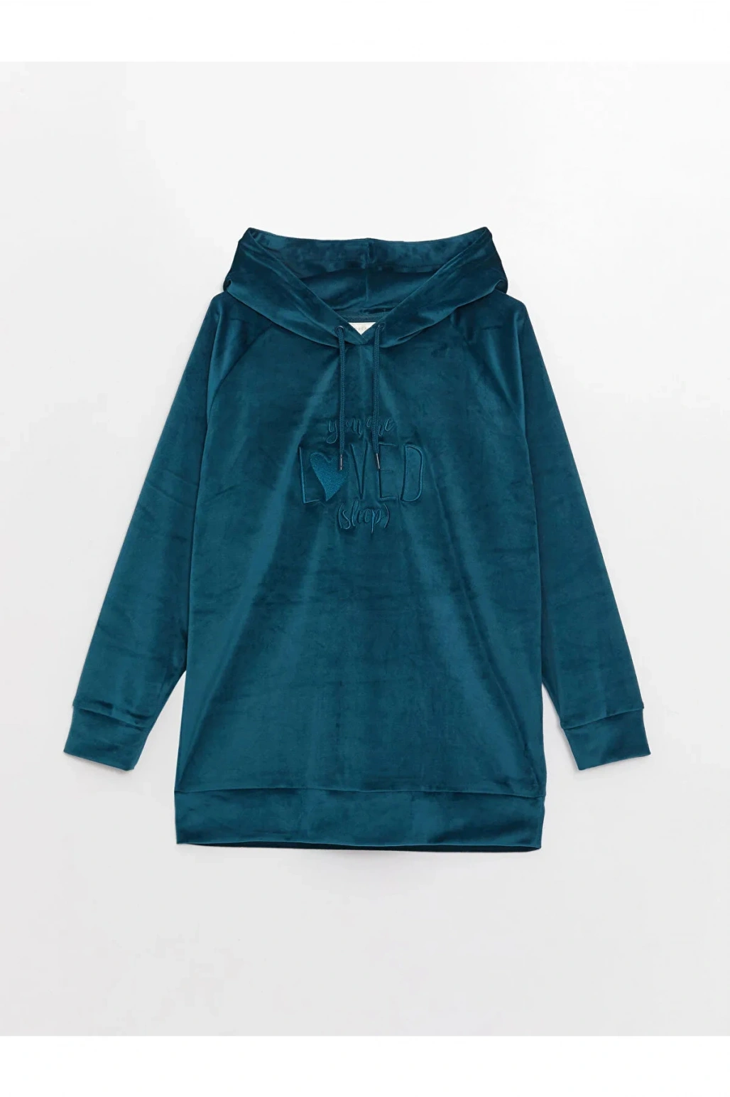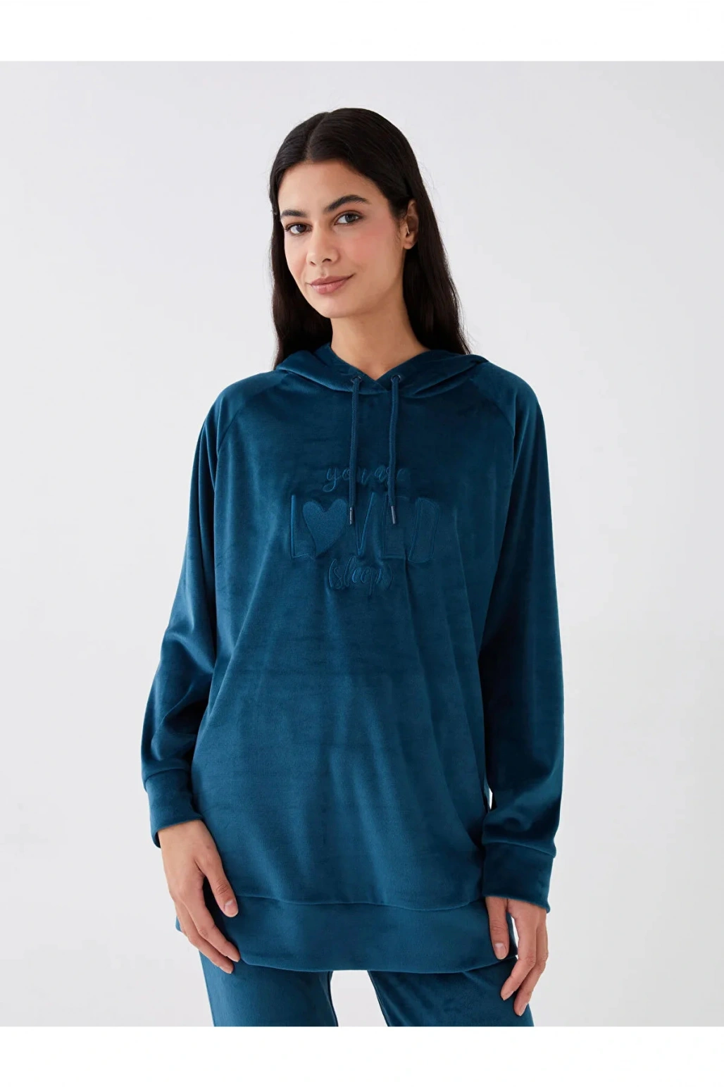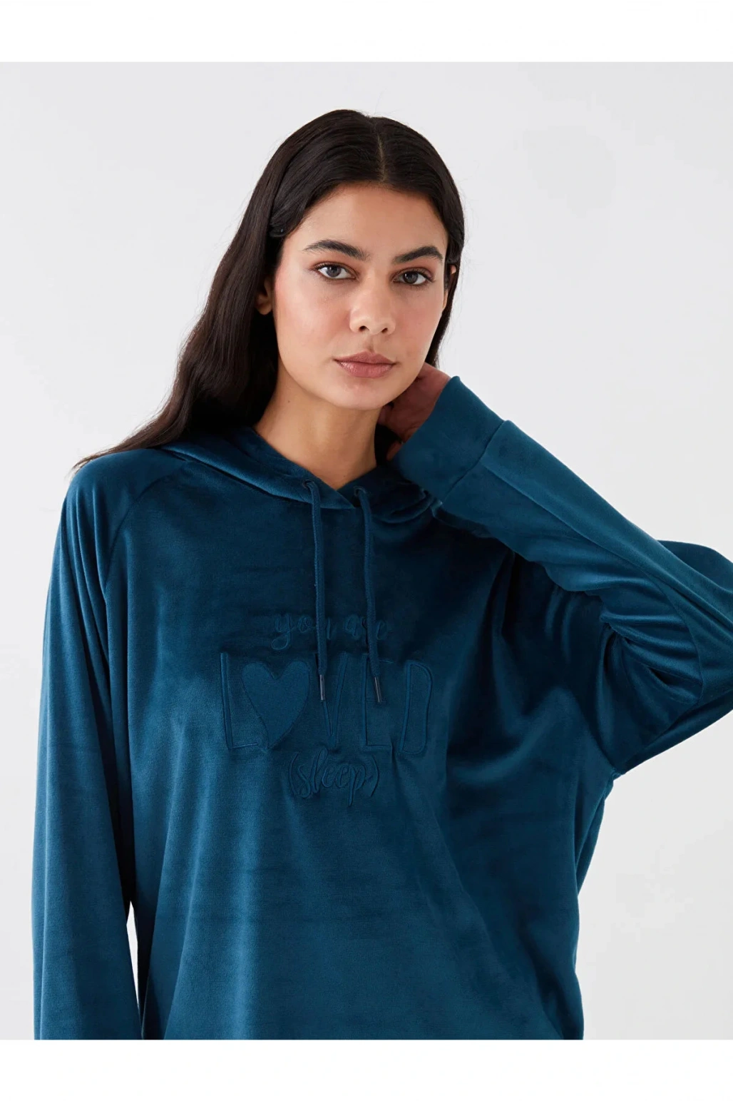 DREAM Kapüşonlu Nakışlı Uzun Kollu Kadife Kadın Pijama Üst Sweatshirt