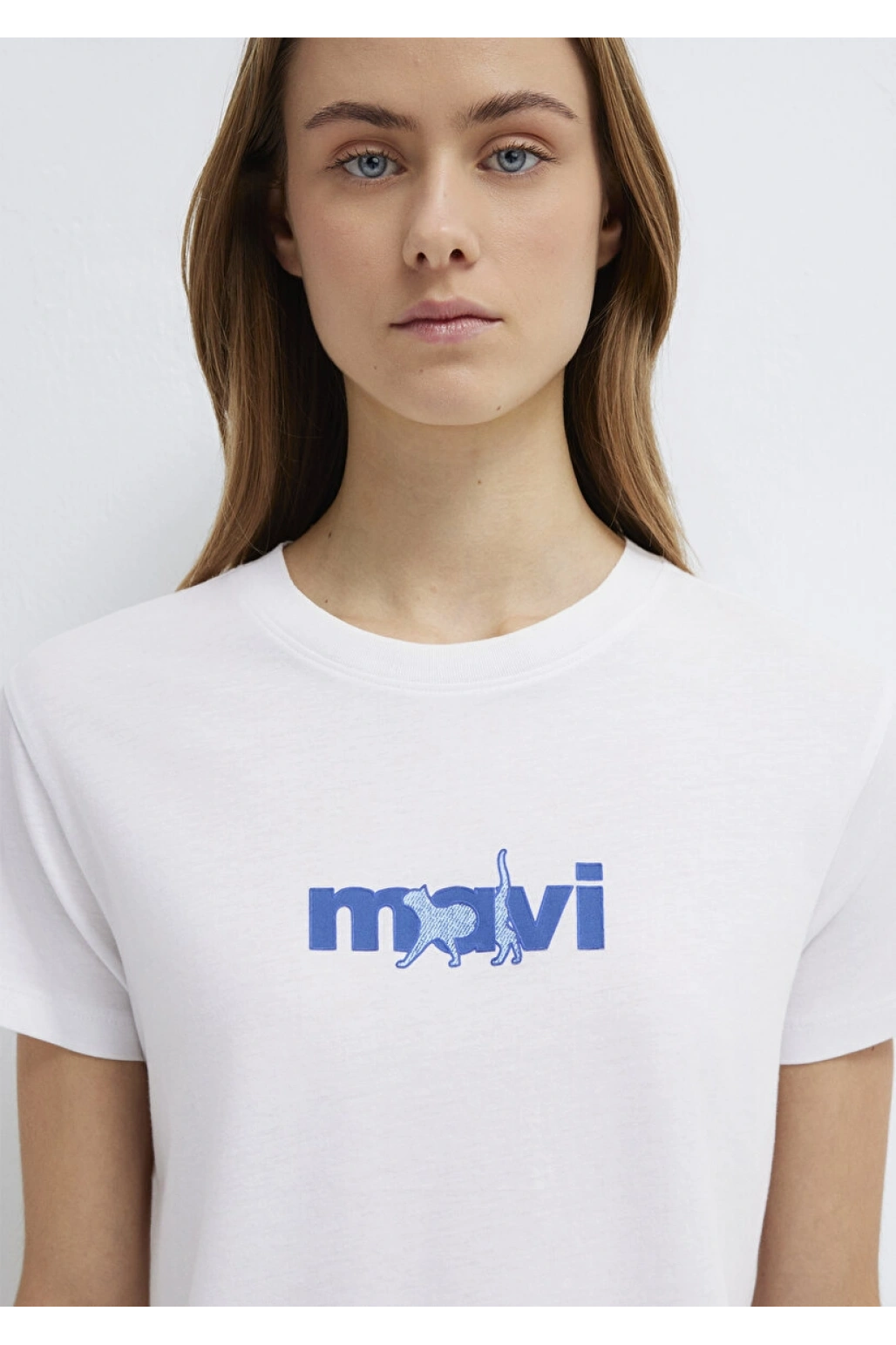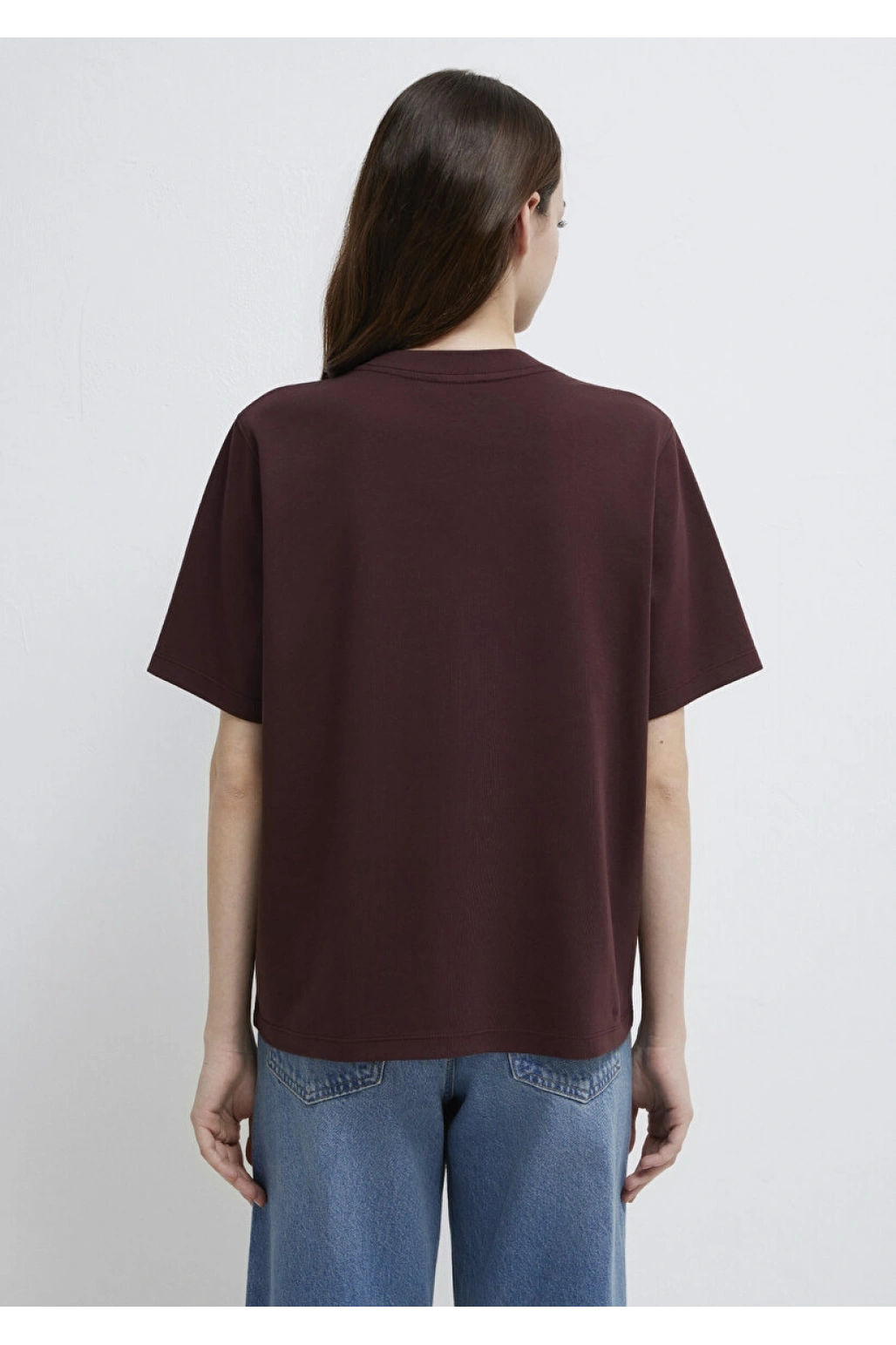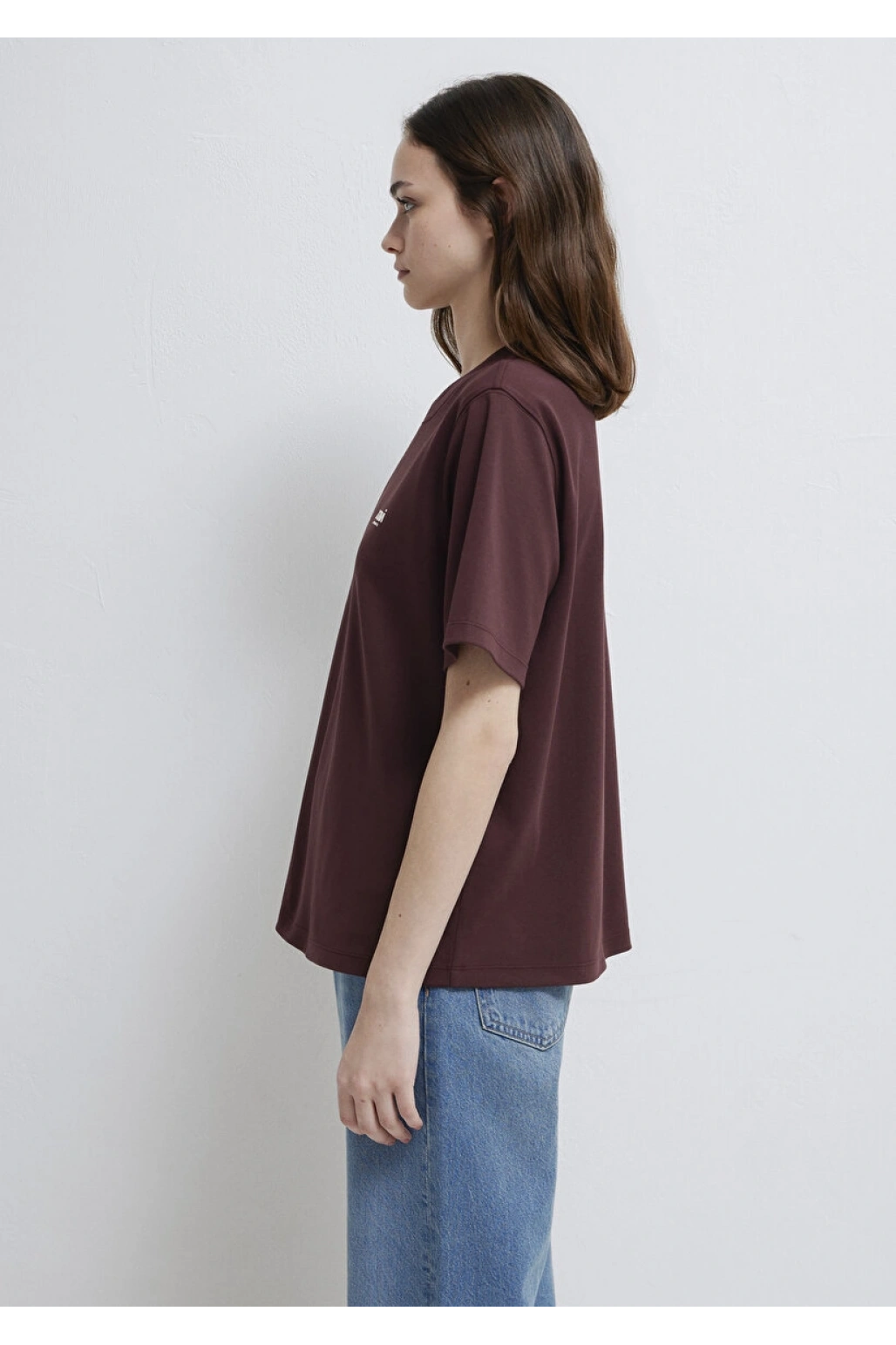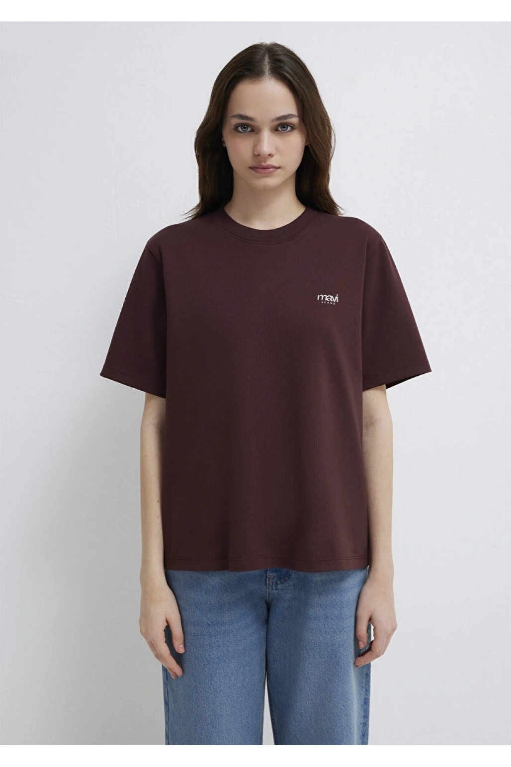 Mavi Jeans Nakışlı Kahverengi Basic Tişört