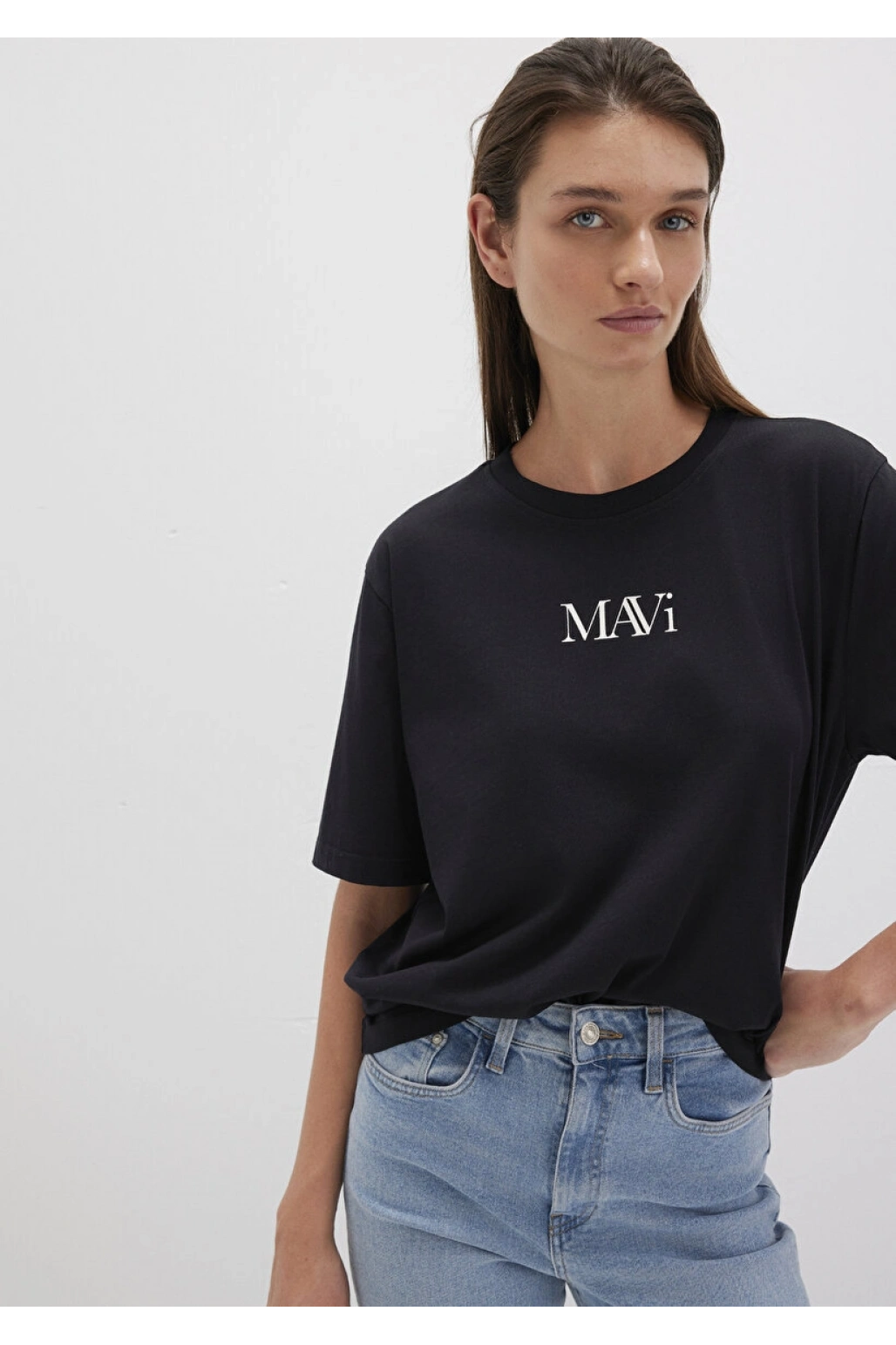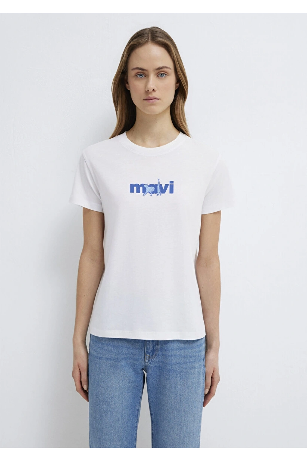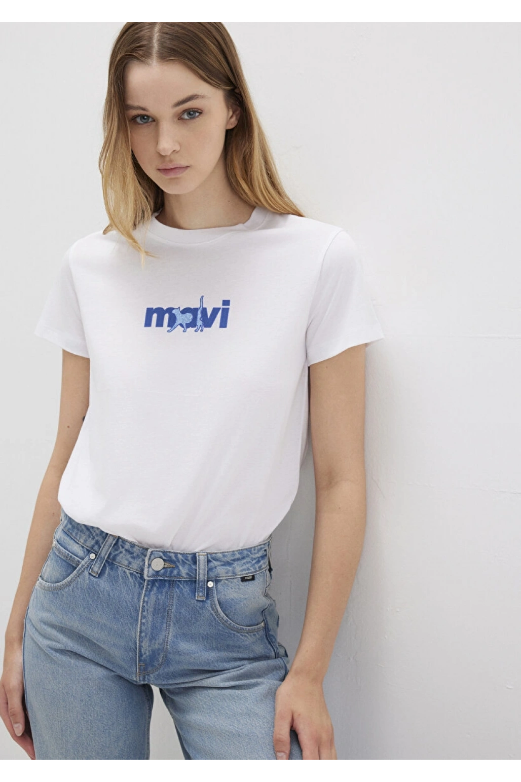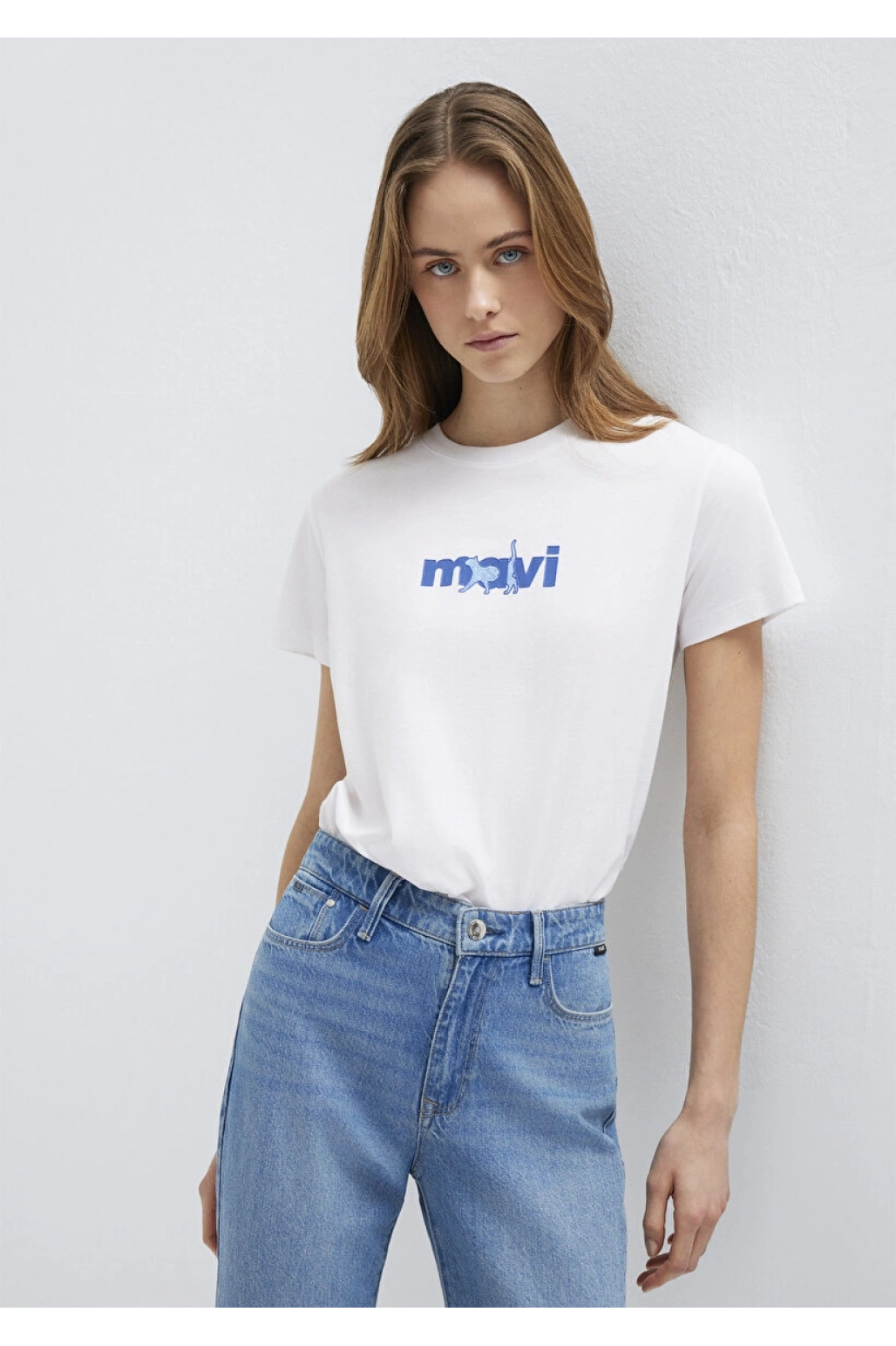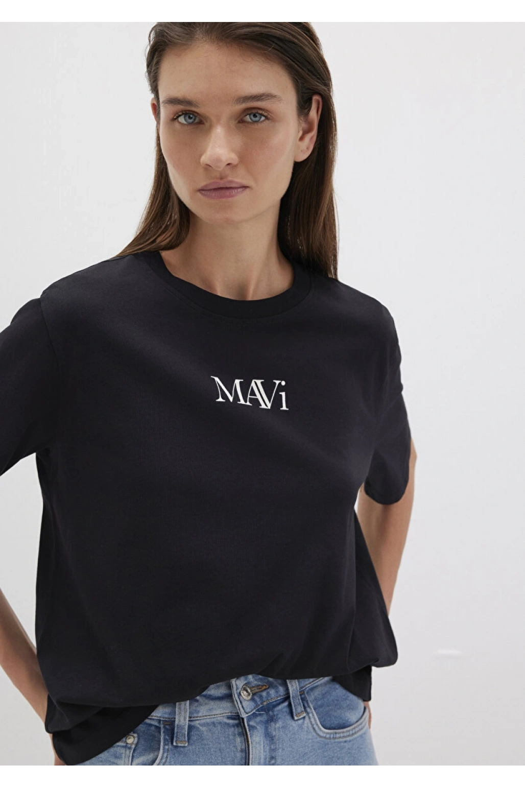 Mavi Jeans Nakışlı Kahverengi Basic Tişört