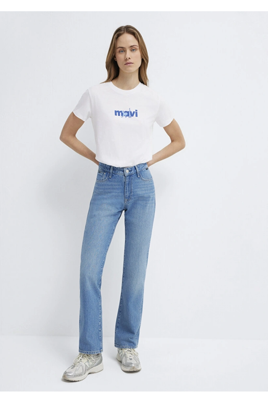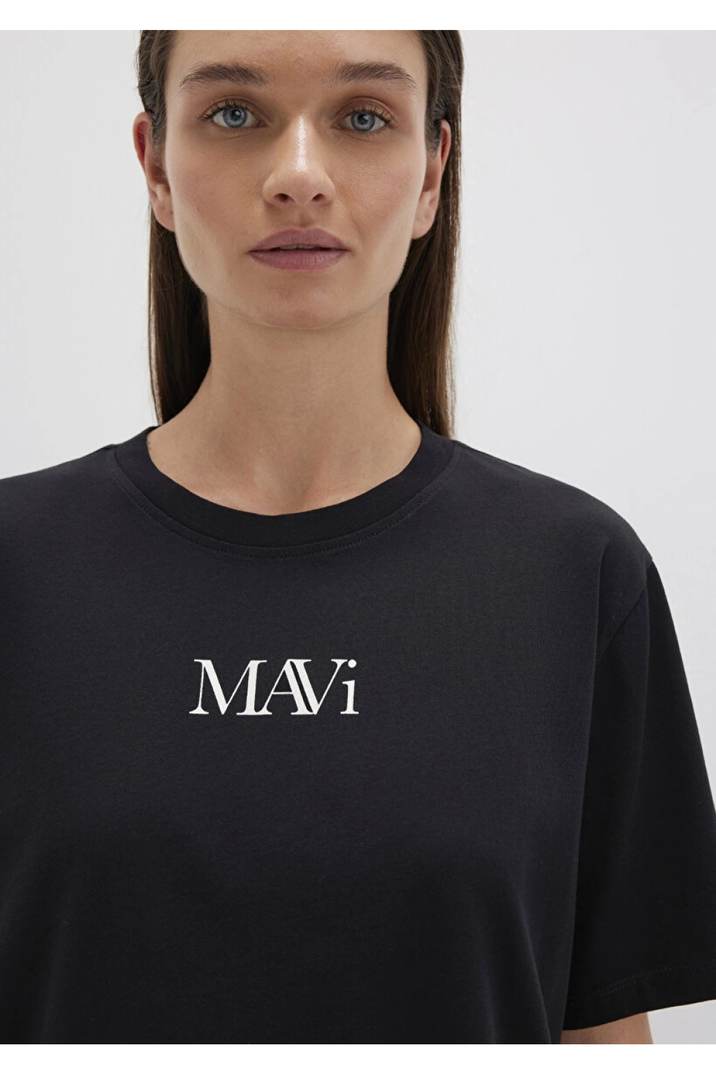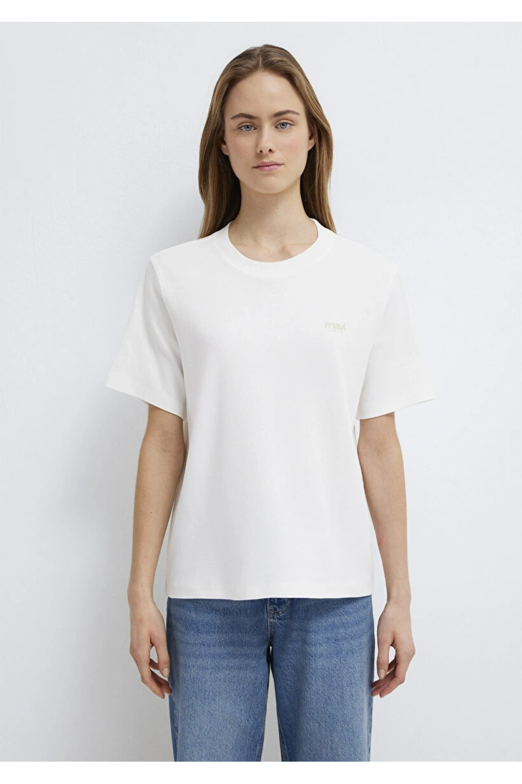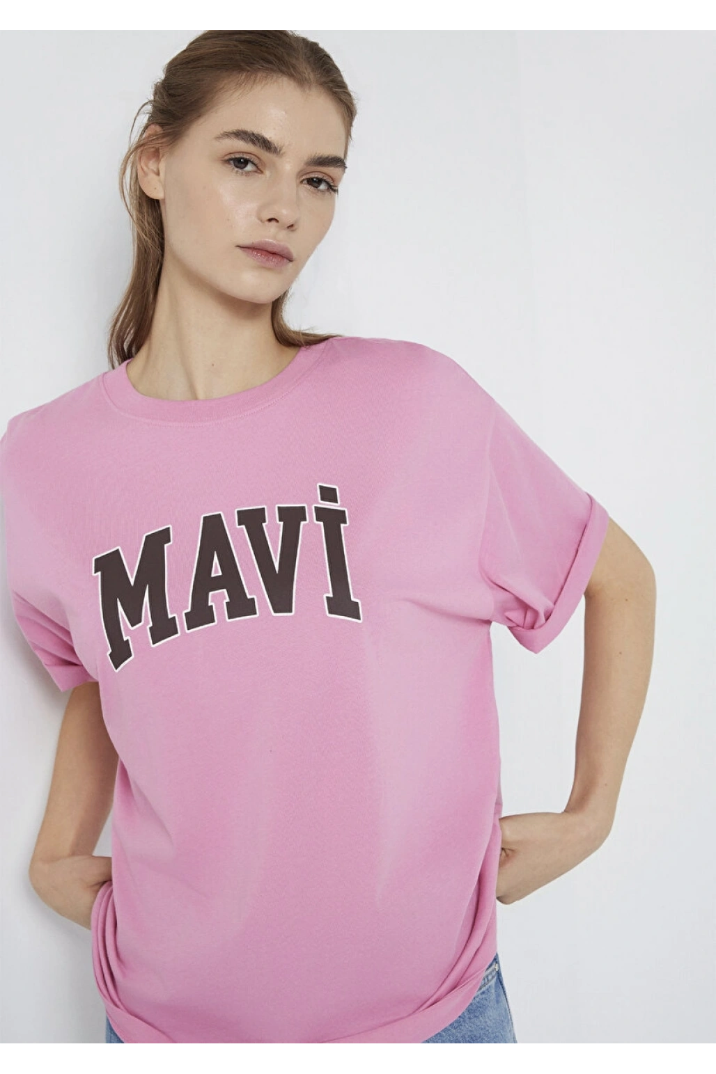 Mavi Jeans Nakışlı Kahverengi Basic Tişört