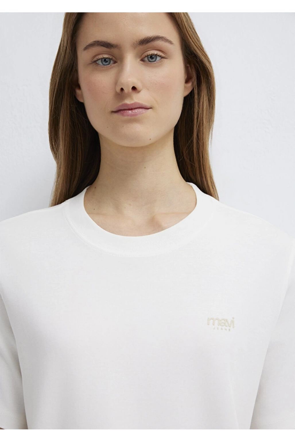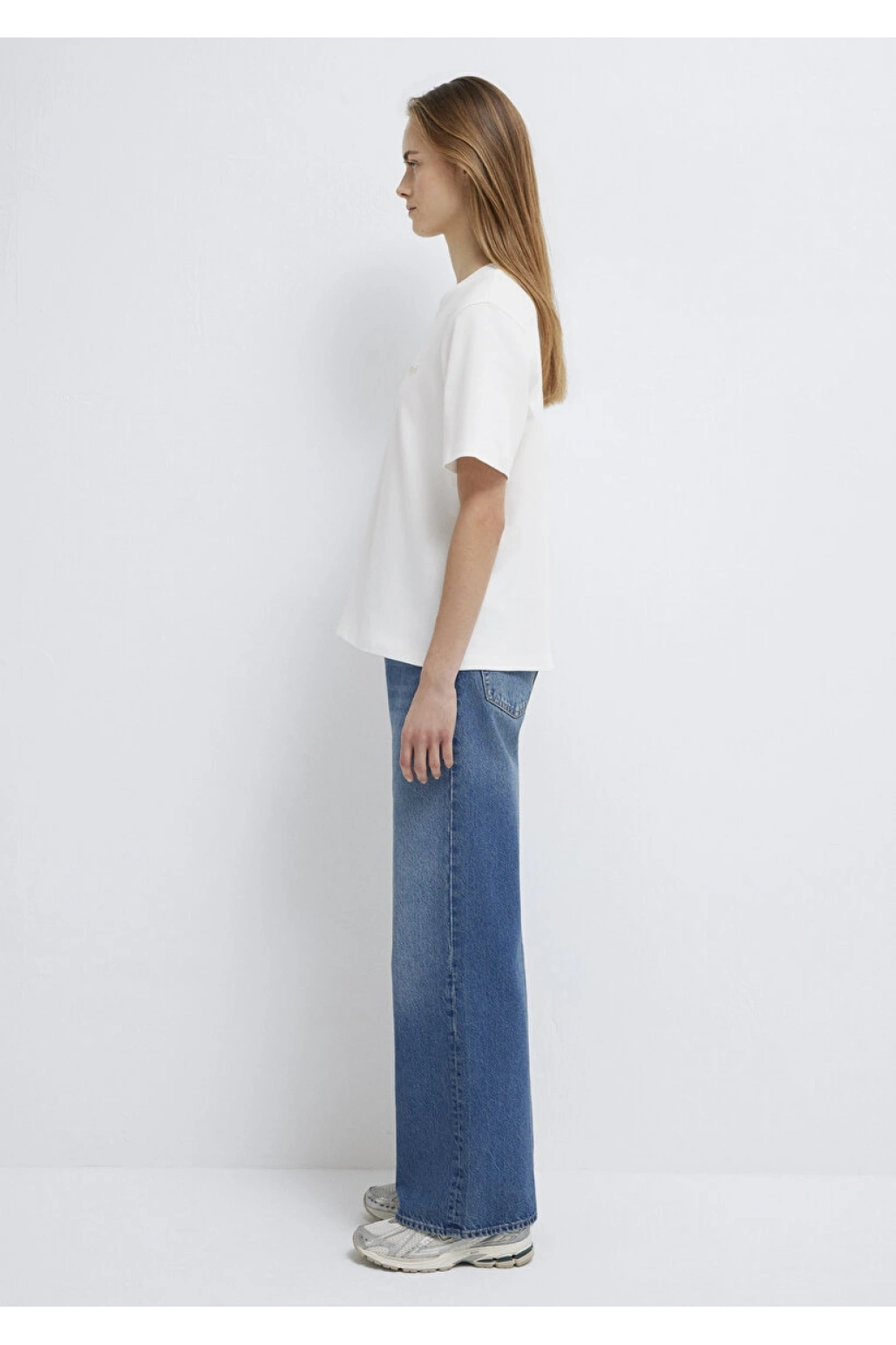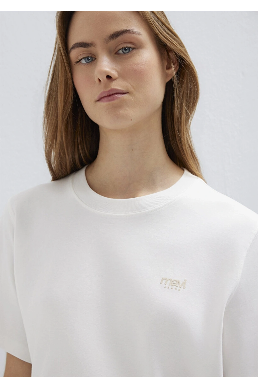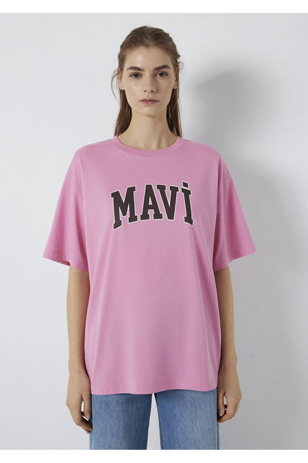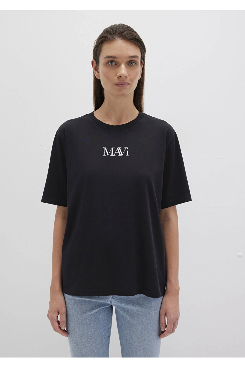 Mavi Jeans Nakışlı Kahverengi Basic Tişört