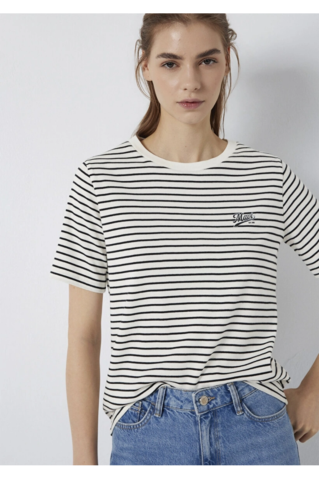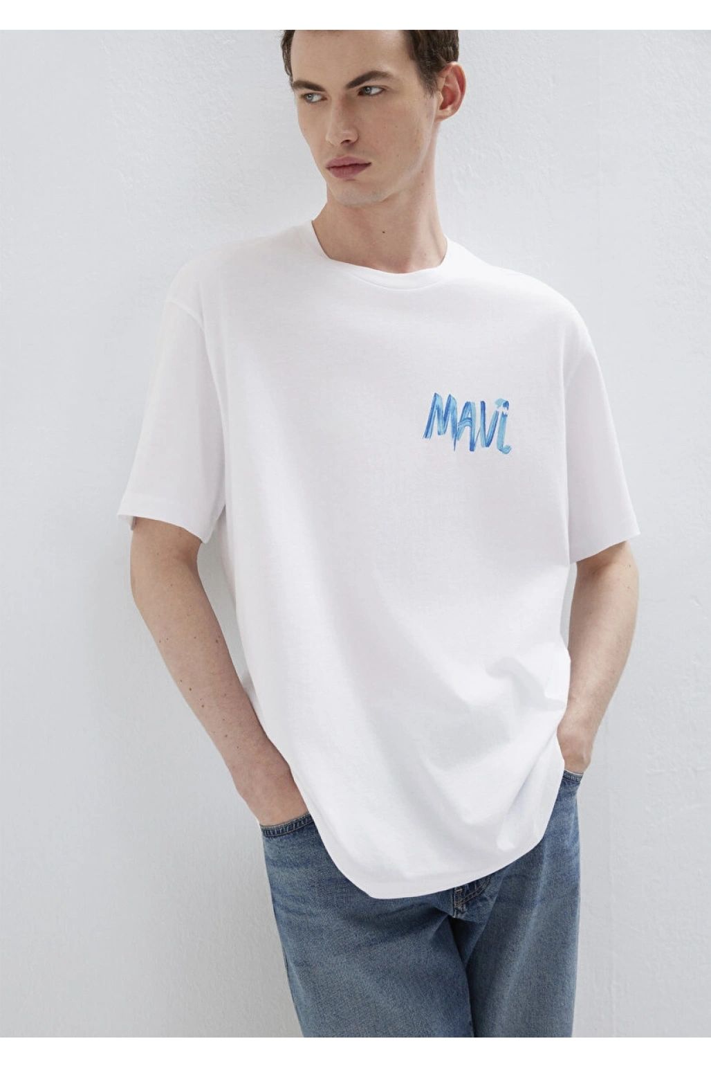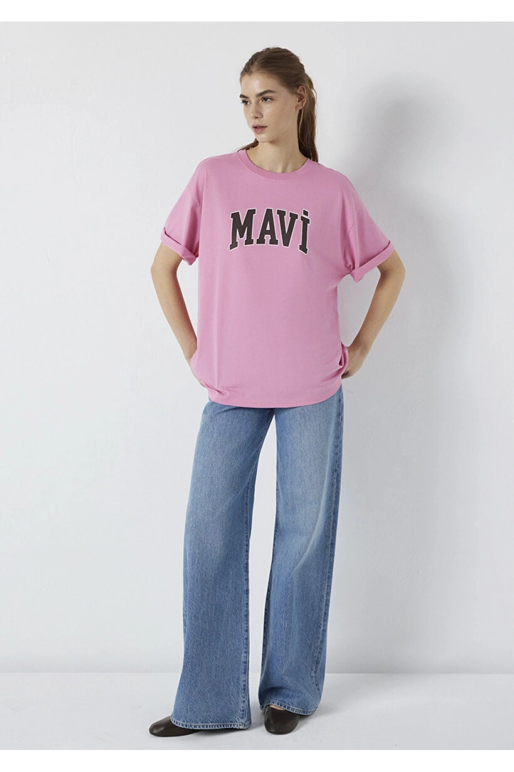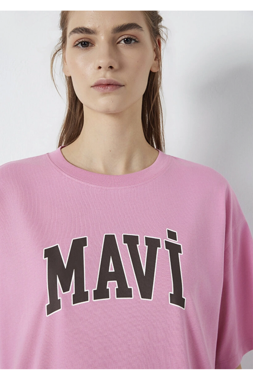 Mavi Jeans Nakışlı Kahverengi Basic Tişört