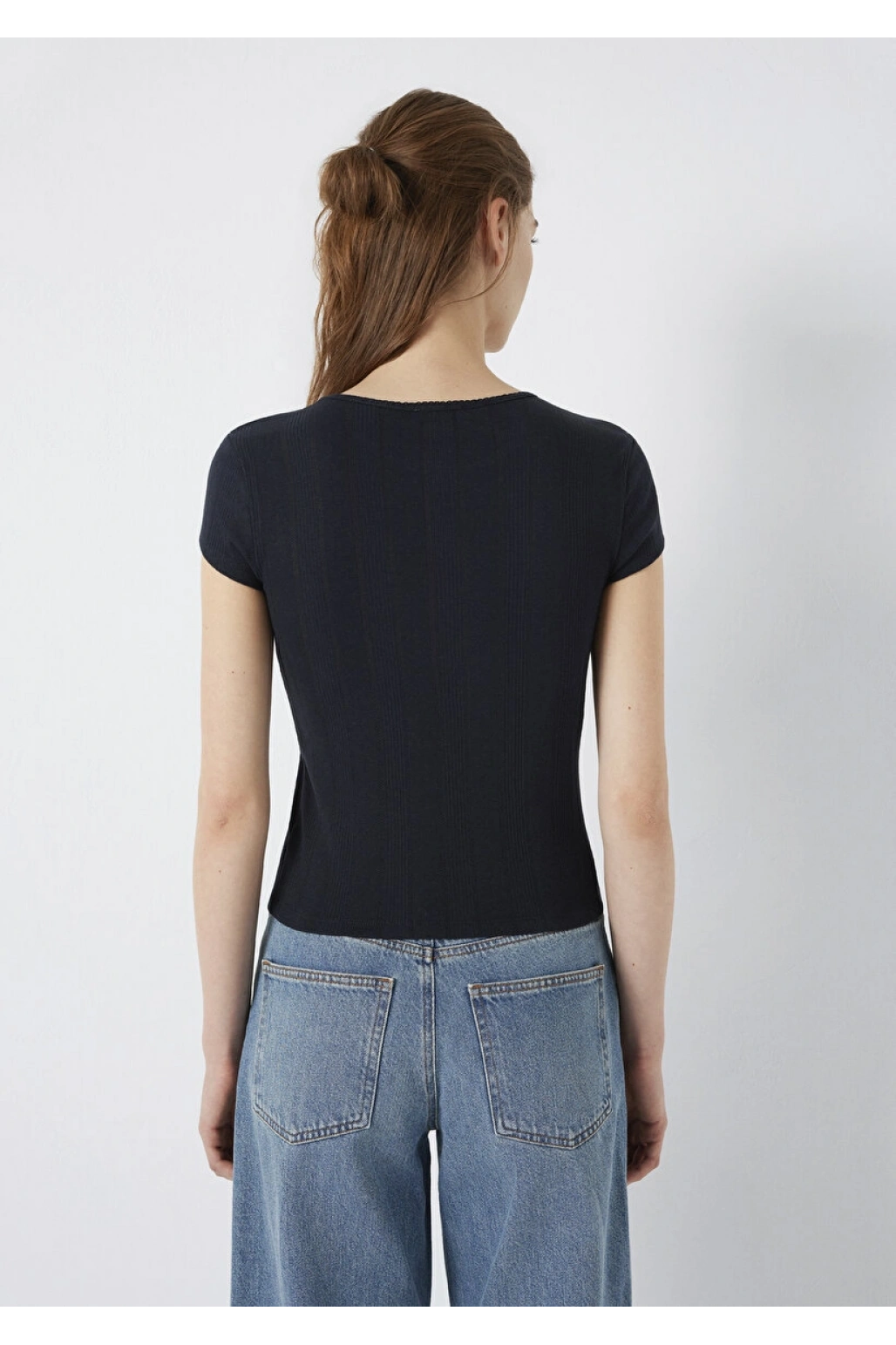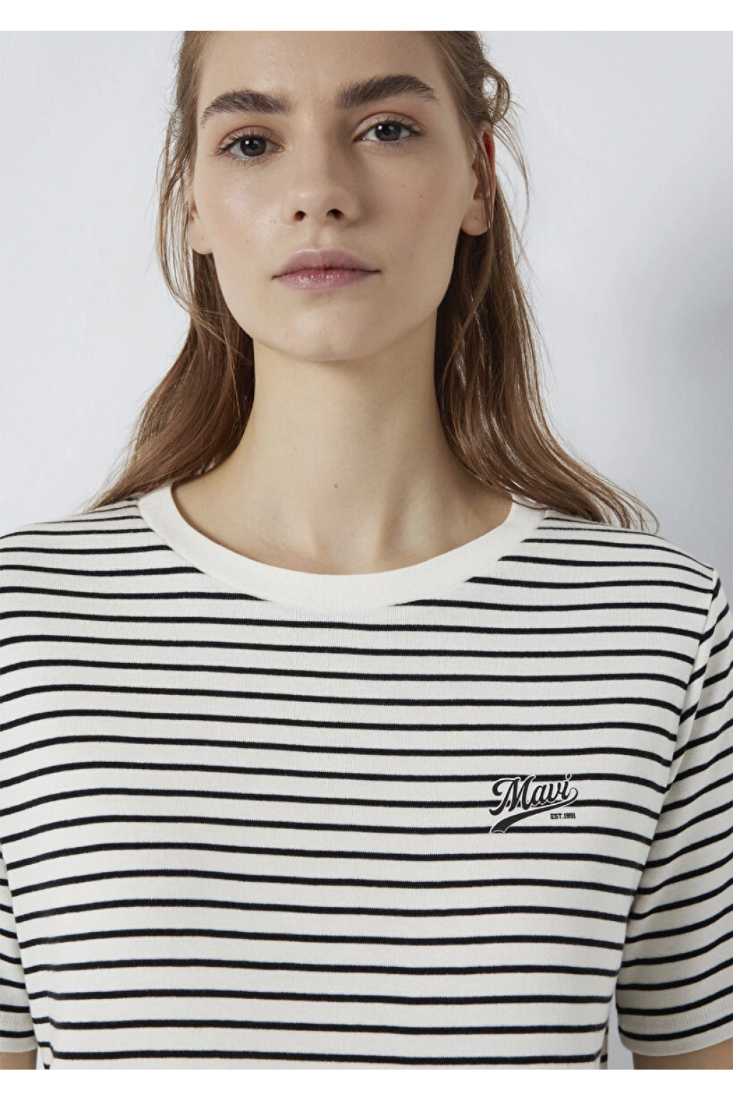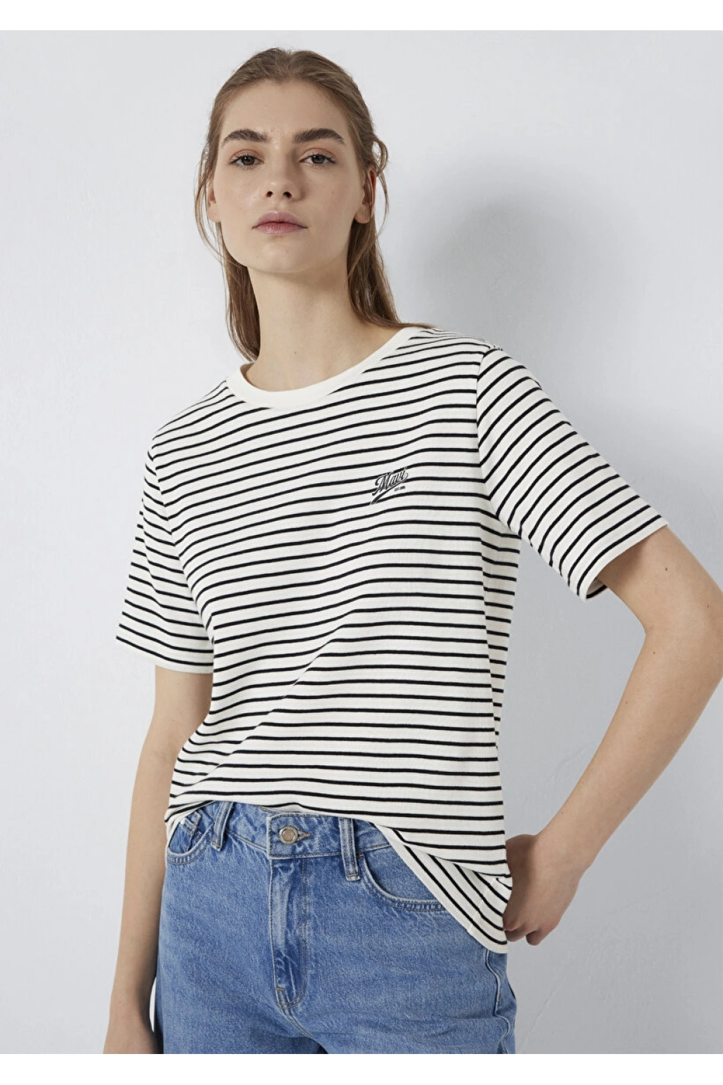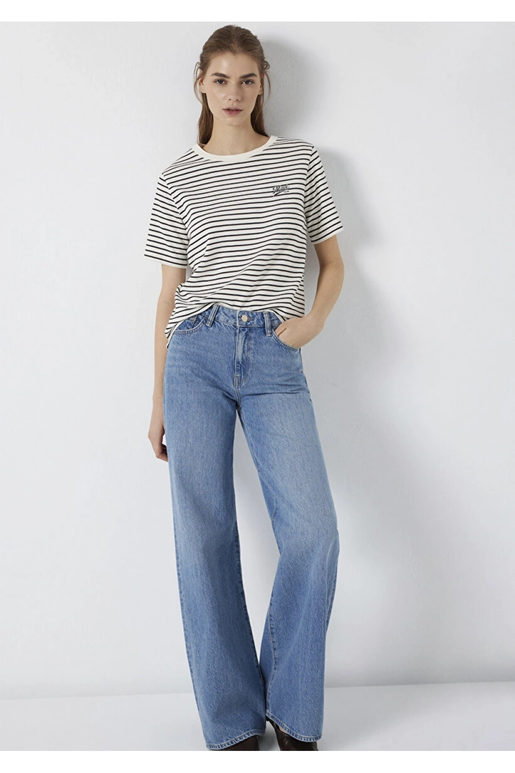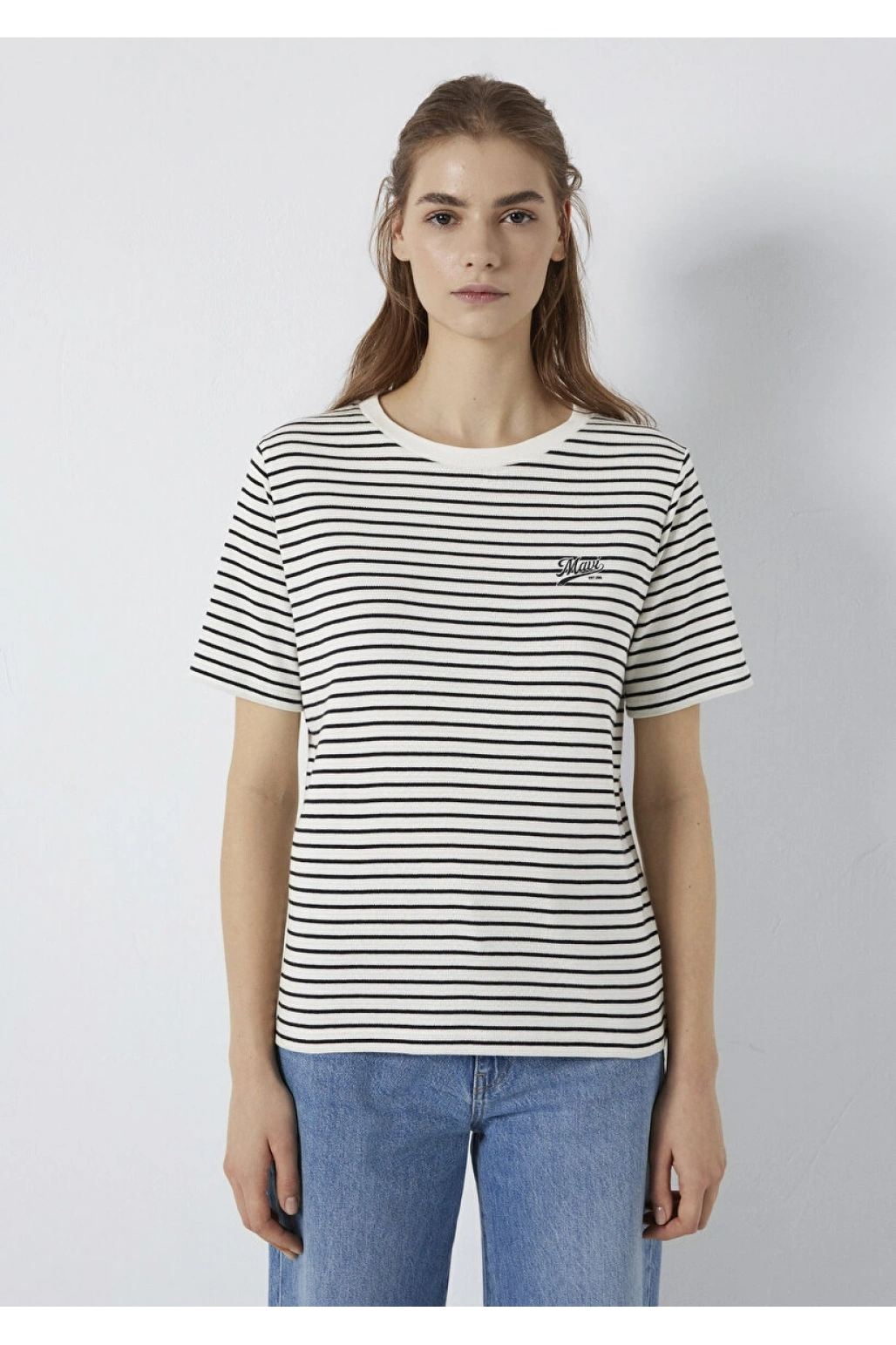Mavi Jeans Nakışlı Kahverengi Basic Tişört